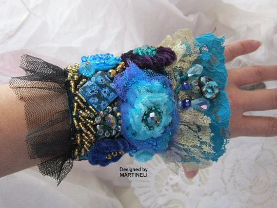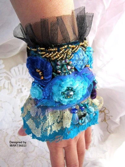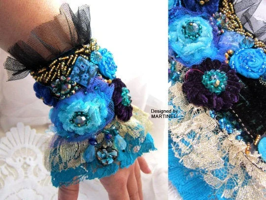 Blue Lace Bracelet Cuff Bracelet,Statement Beaded Bracelet