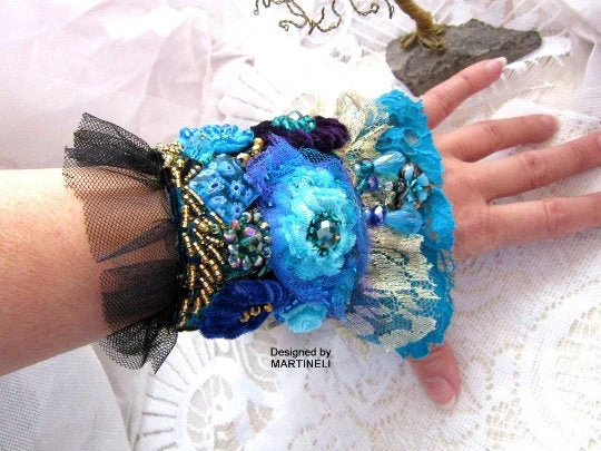 Blue Lace Bracelet Cuff Bracelet,Statement Beaded Bracelet.