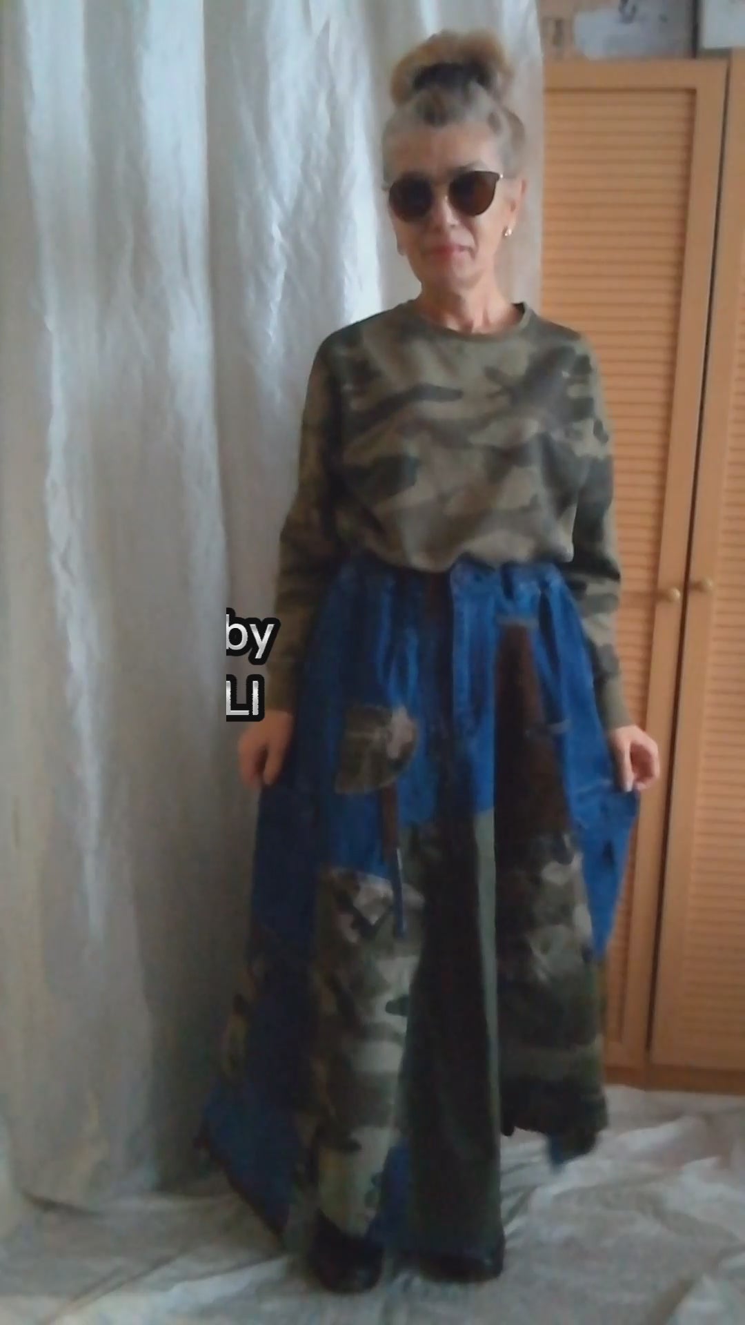 This long denim skirt is exclusive,one of a kind,because I don`t make more than one item.I offer special,unique items-only one is available for one special person!