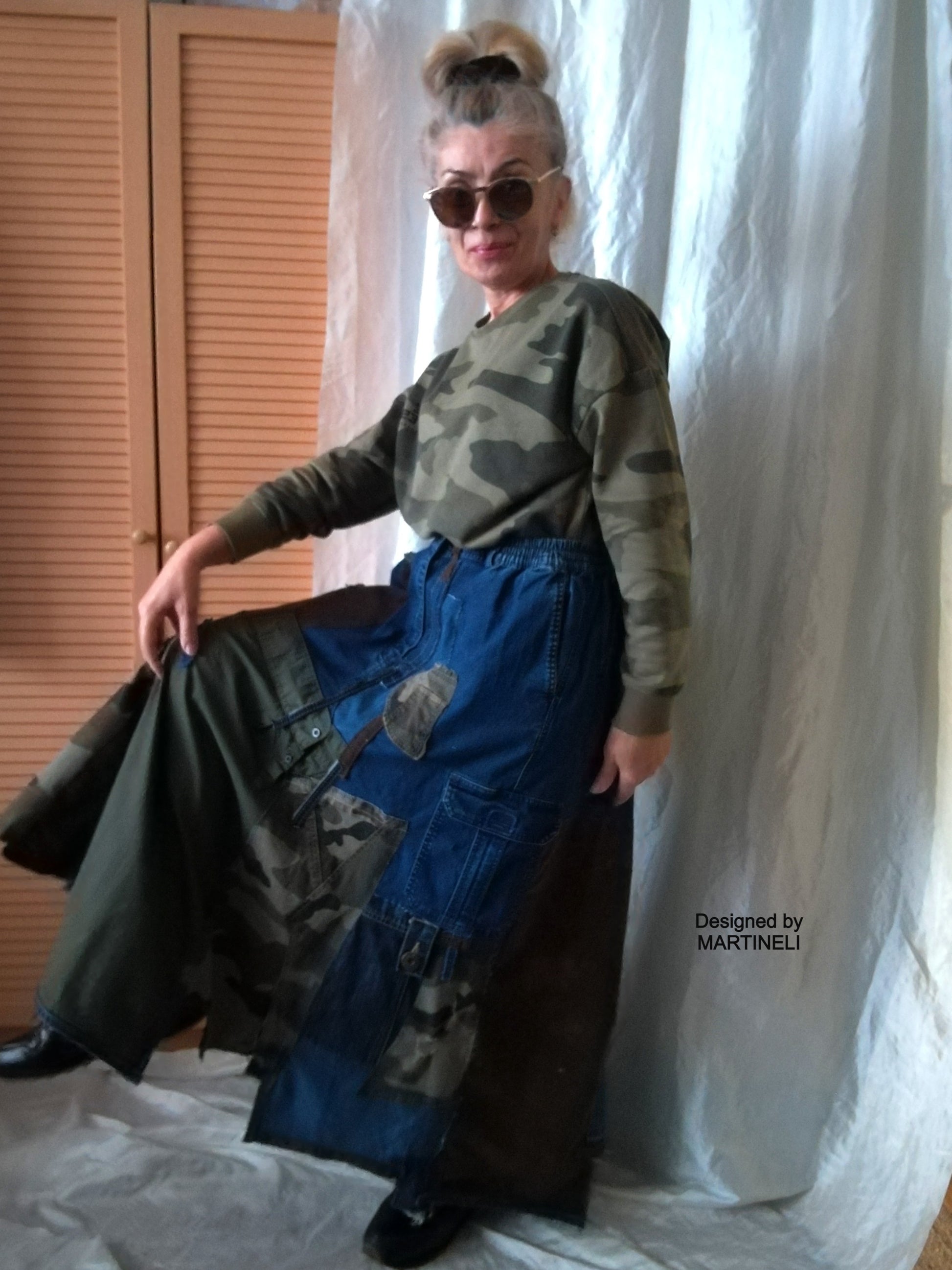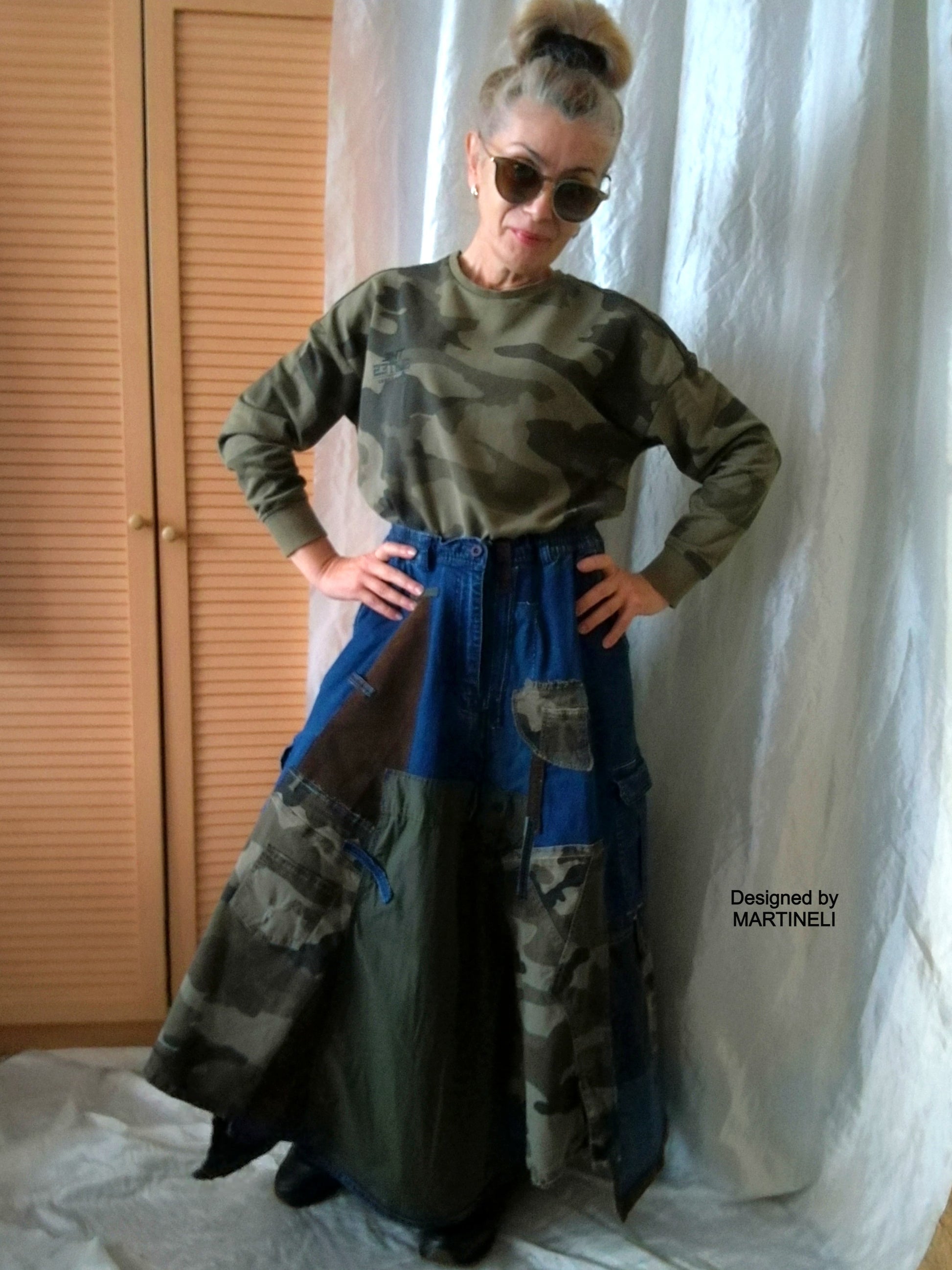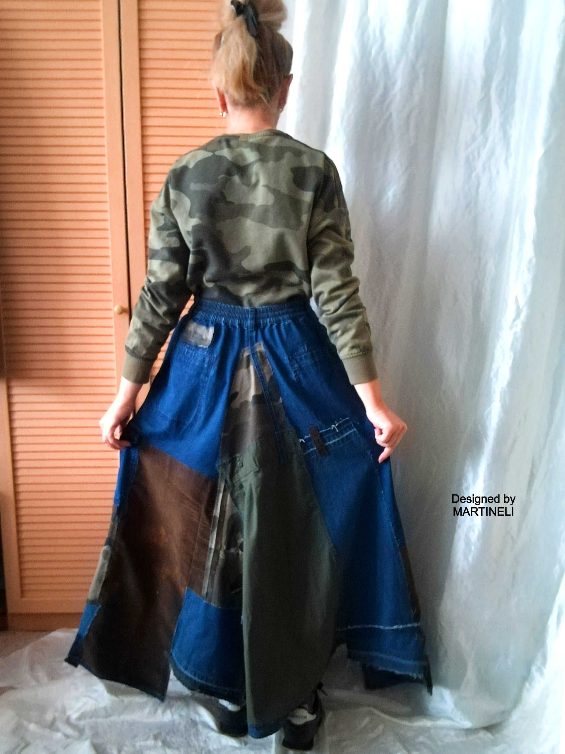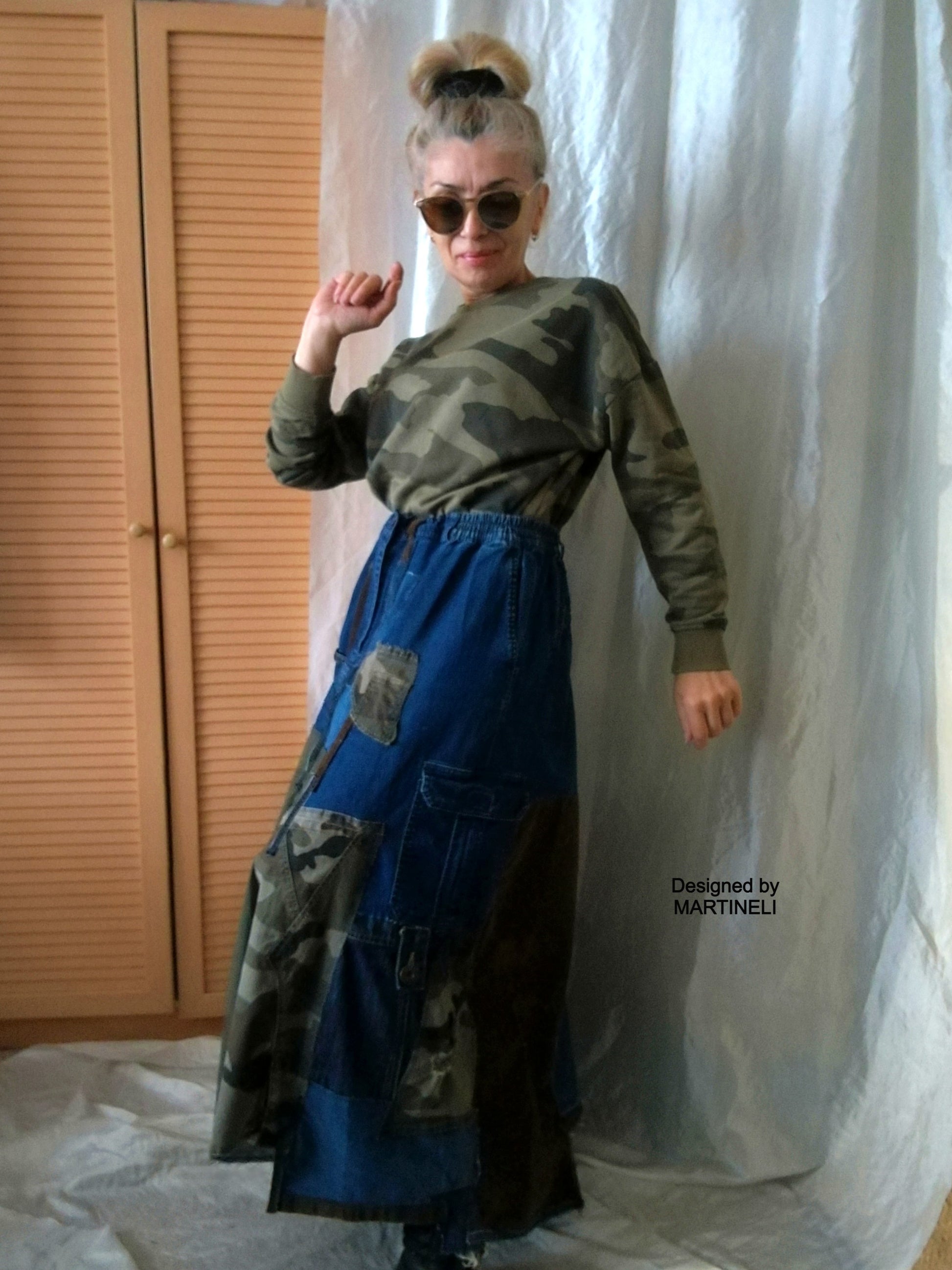 Long Denim Skirt,S/XL Maxi Camouflage Skirt.