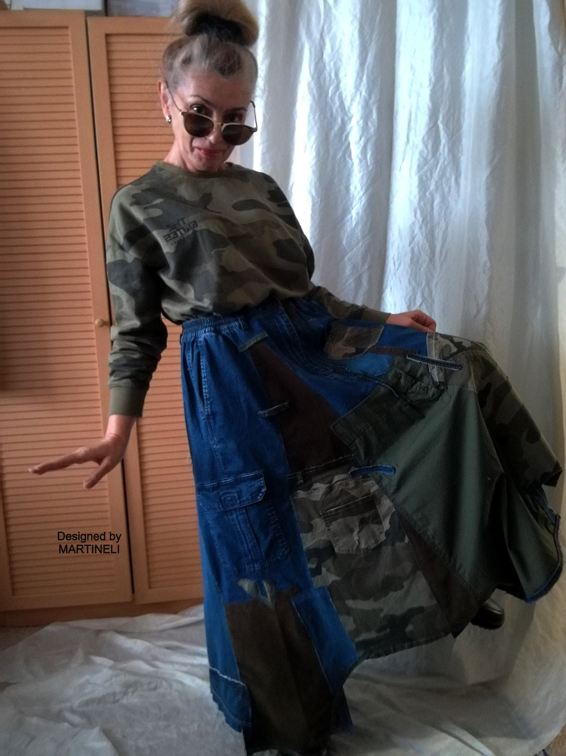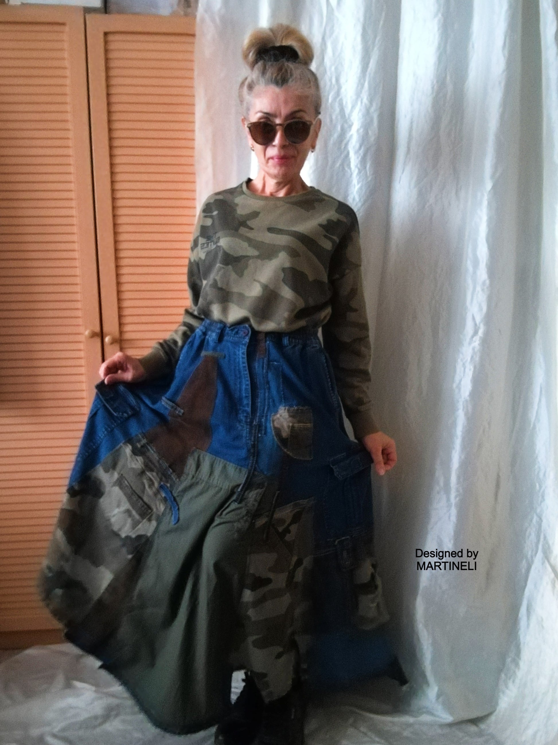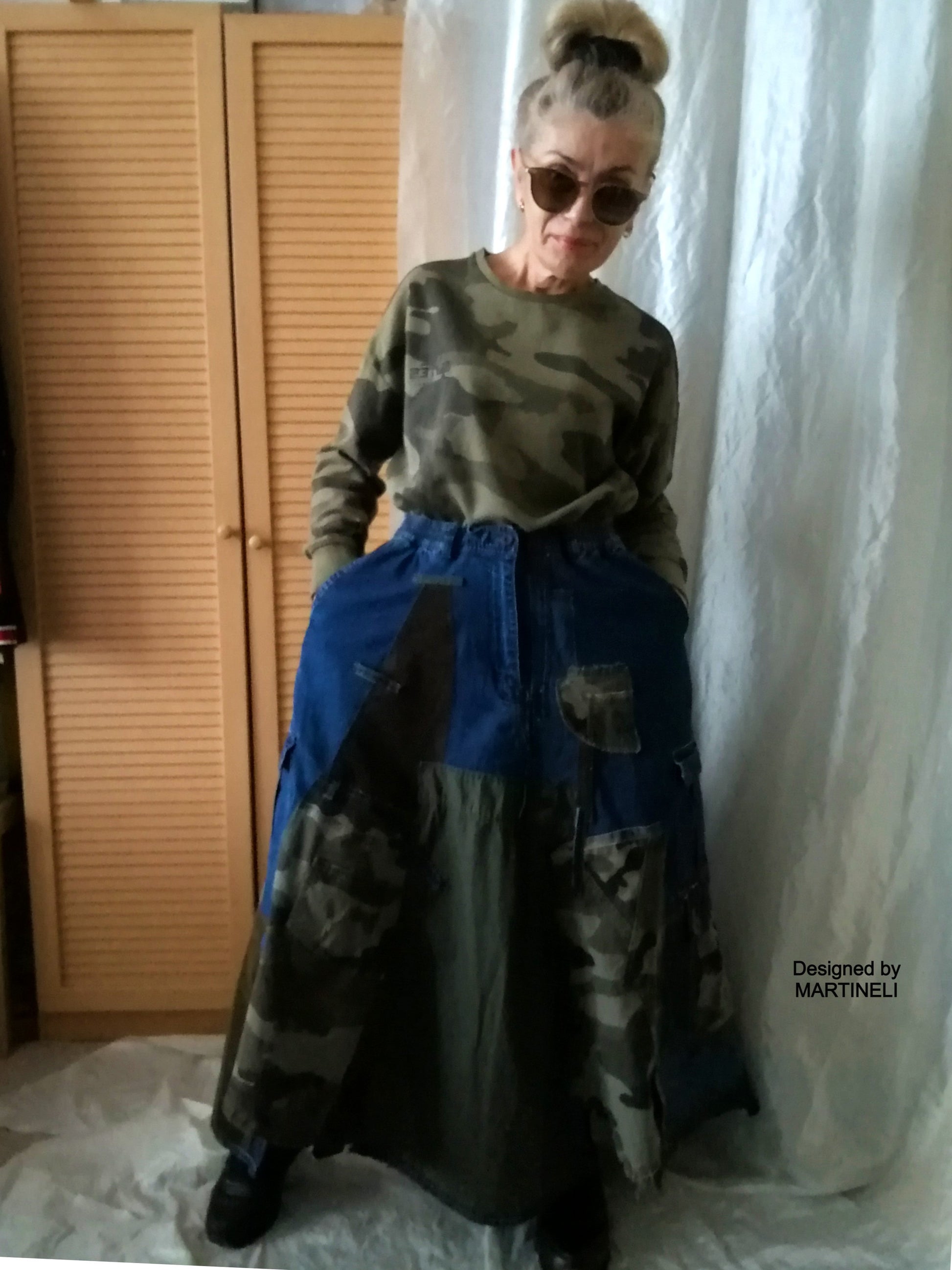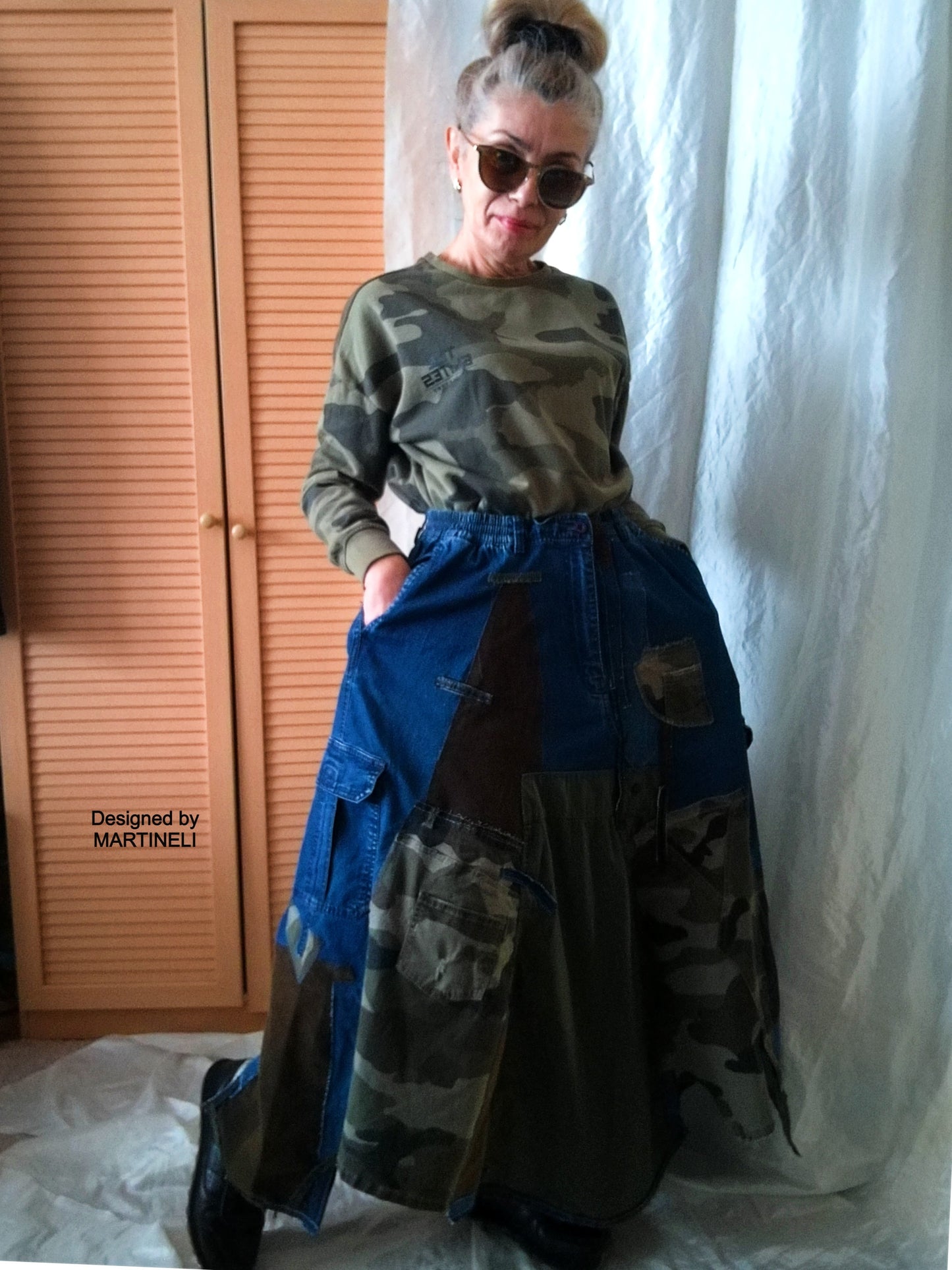 Long Denim Skirt,S/XL Maxi Camouflage Skirt.