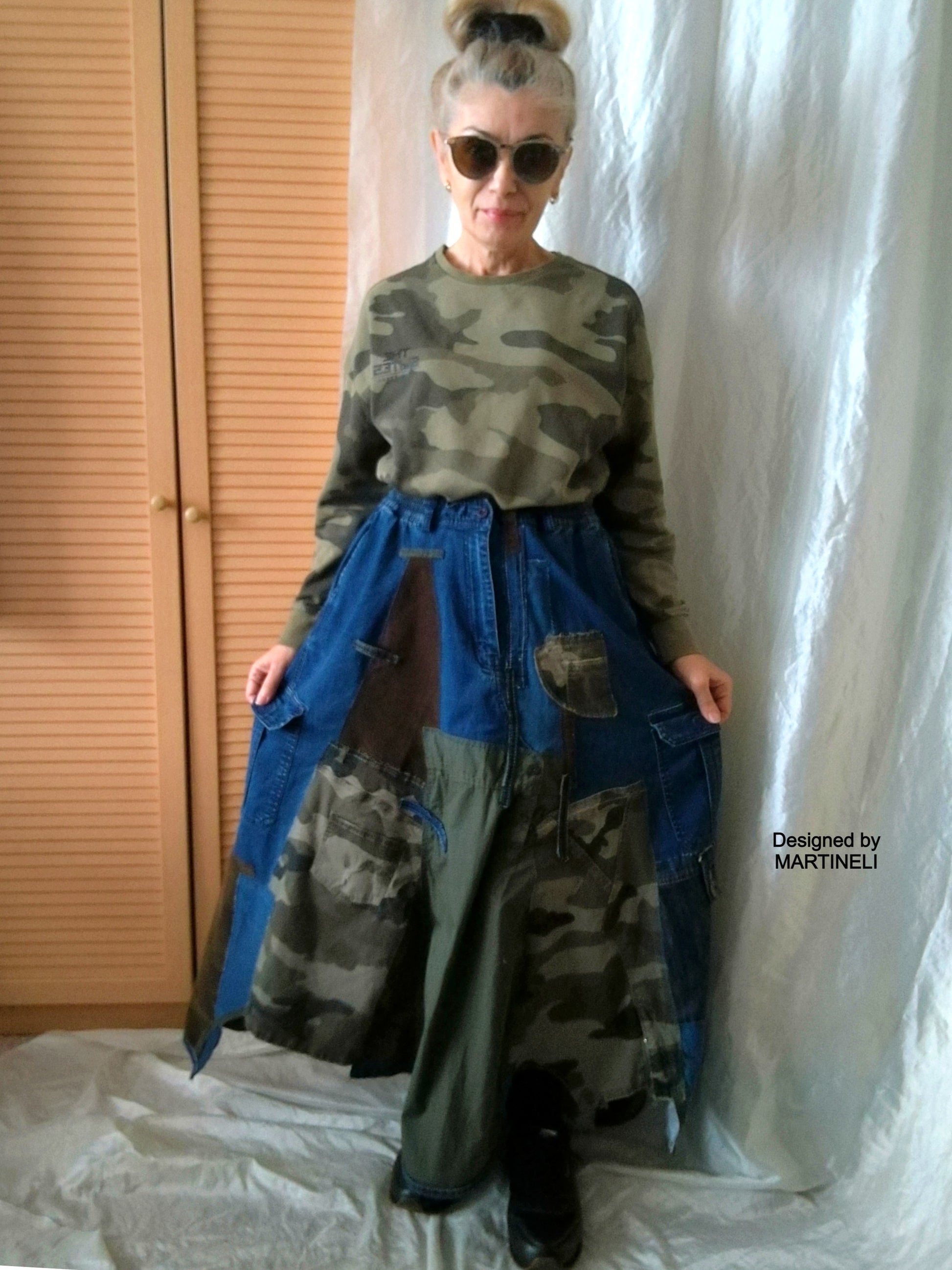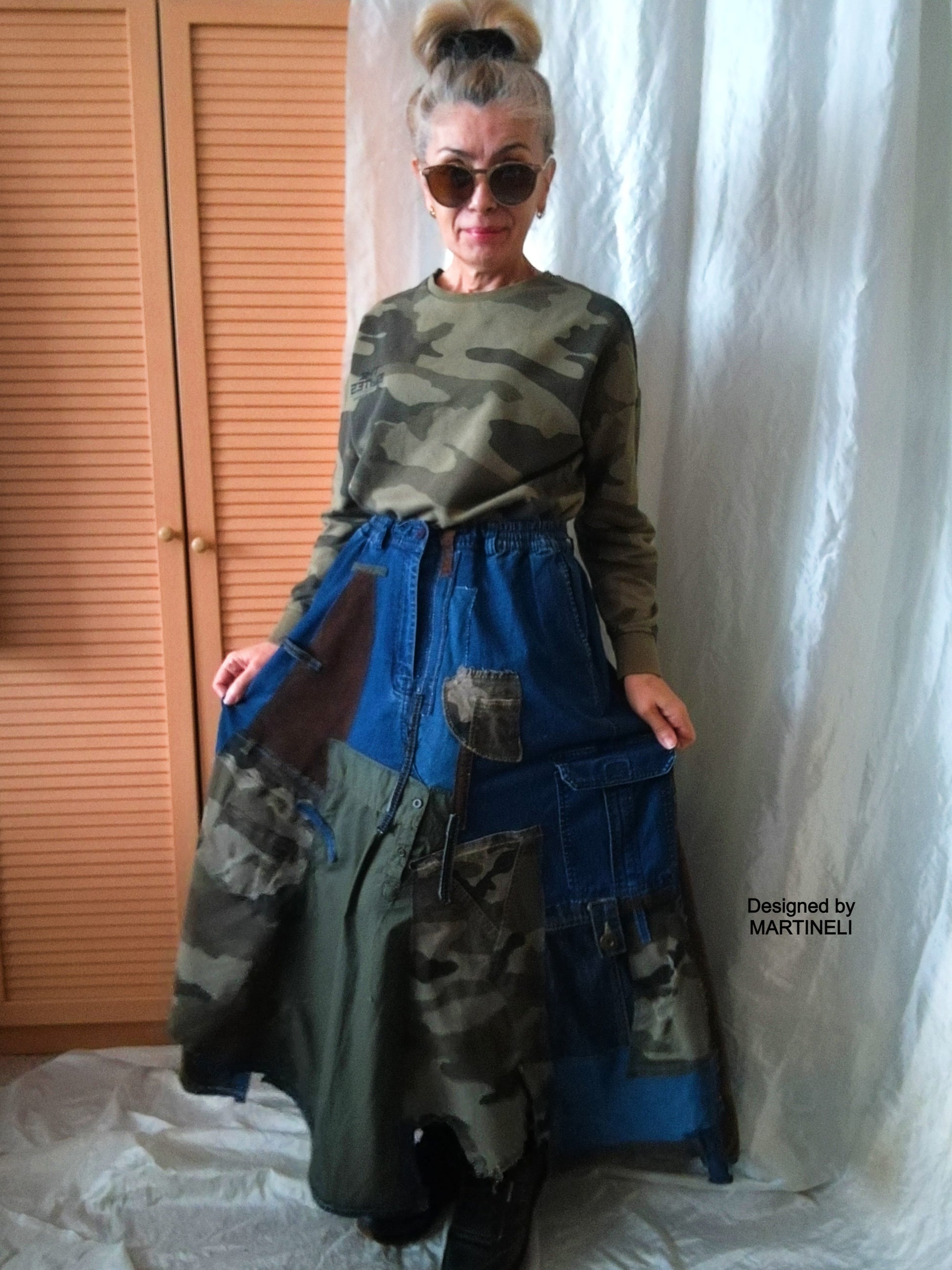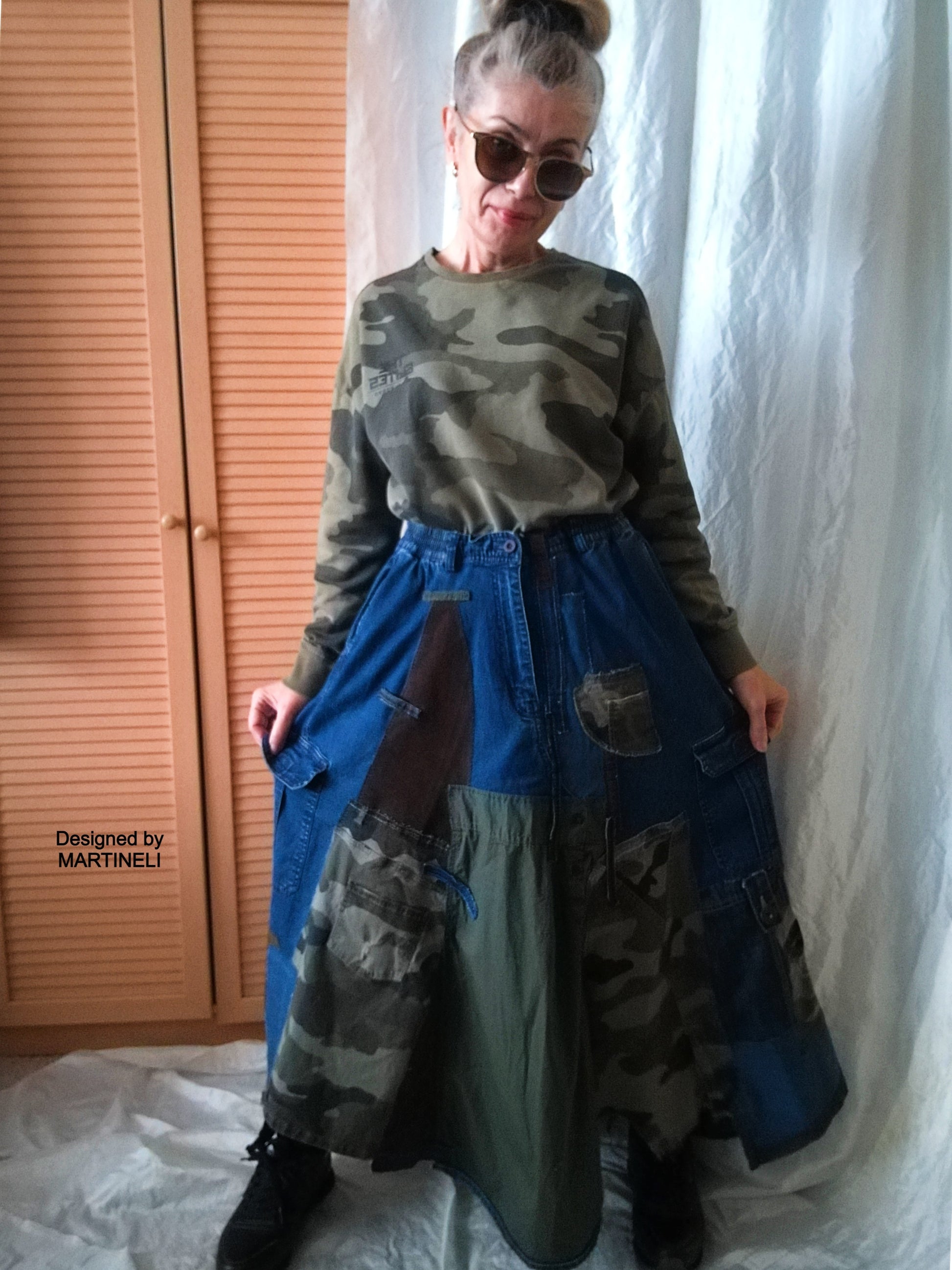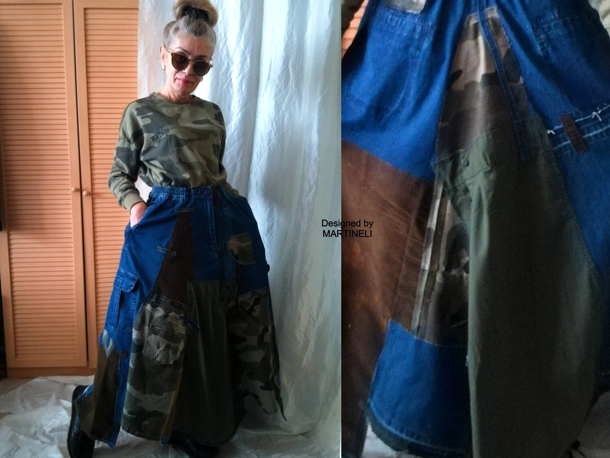 Long Denim Skirt,S/XL Maxi Camouflage Skirt.