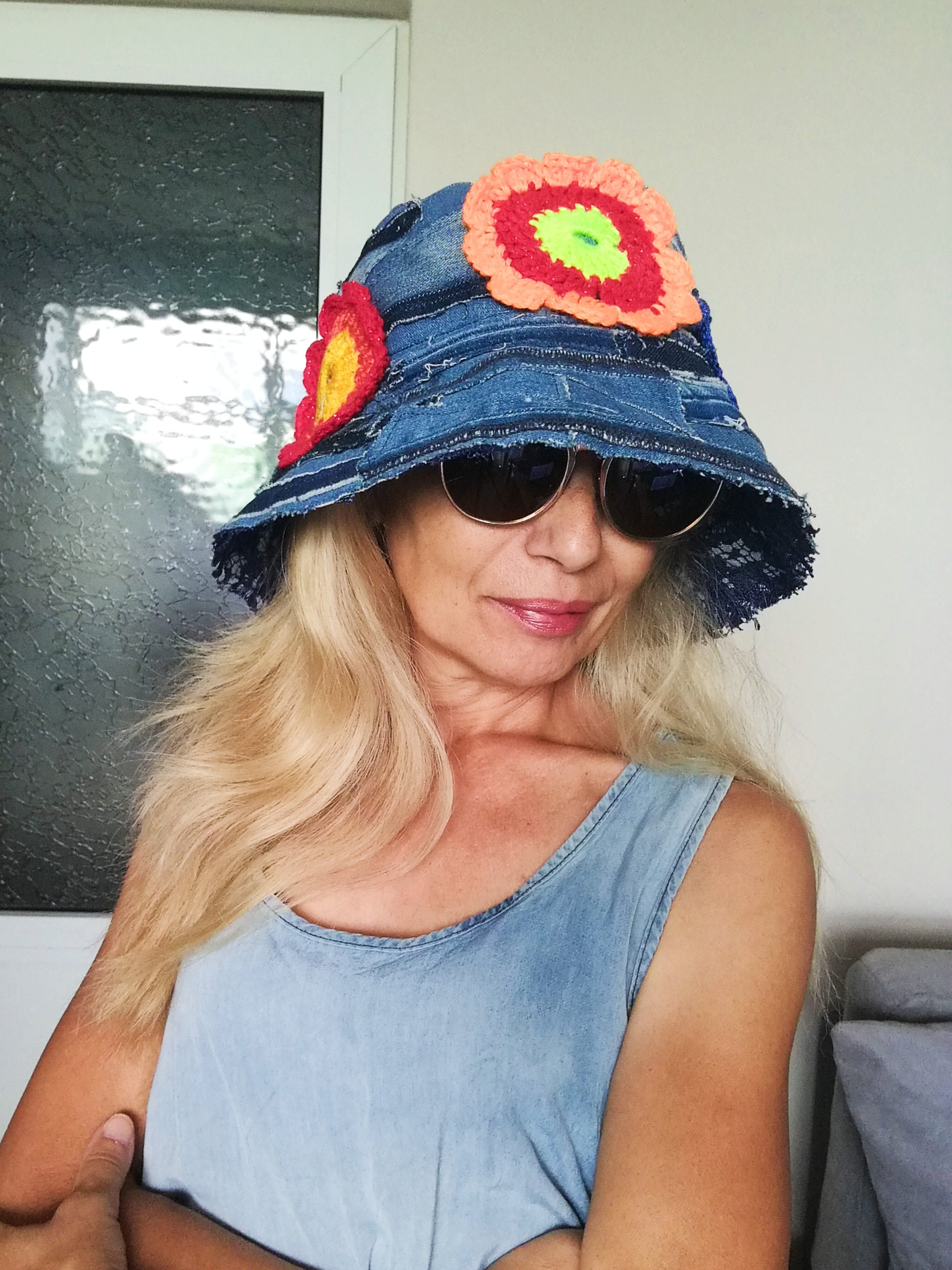 This extravagant patchwork denim summer hat is very soft, lightweight and comfortable !!!!