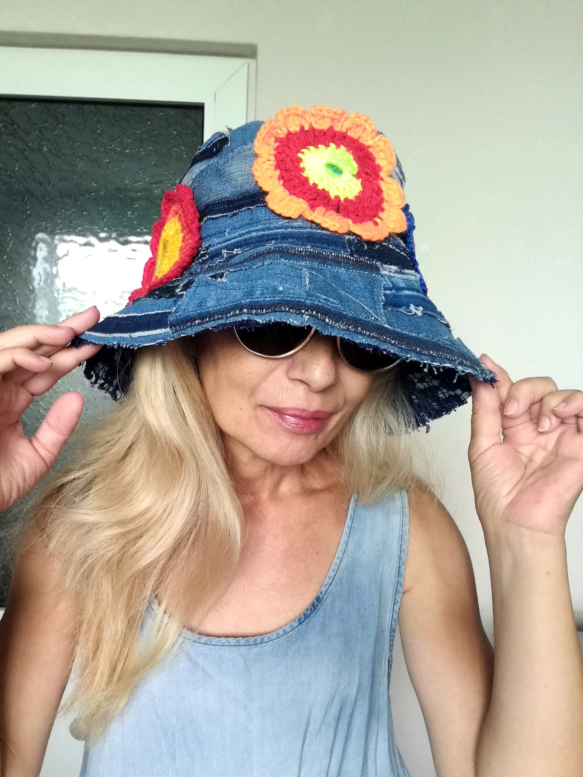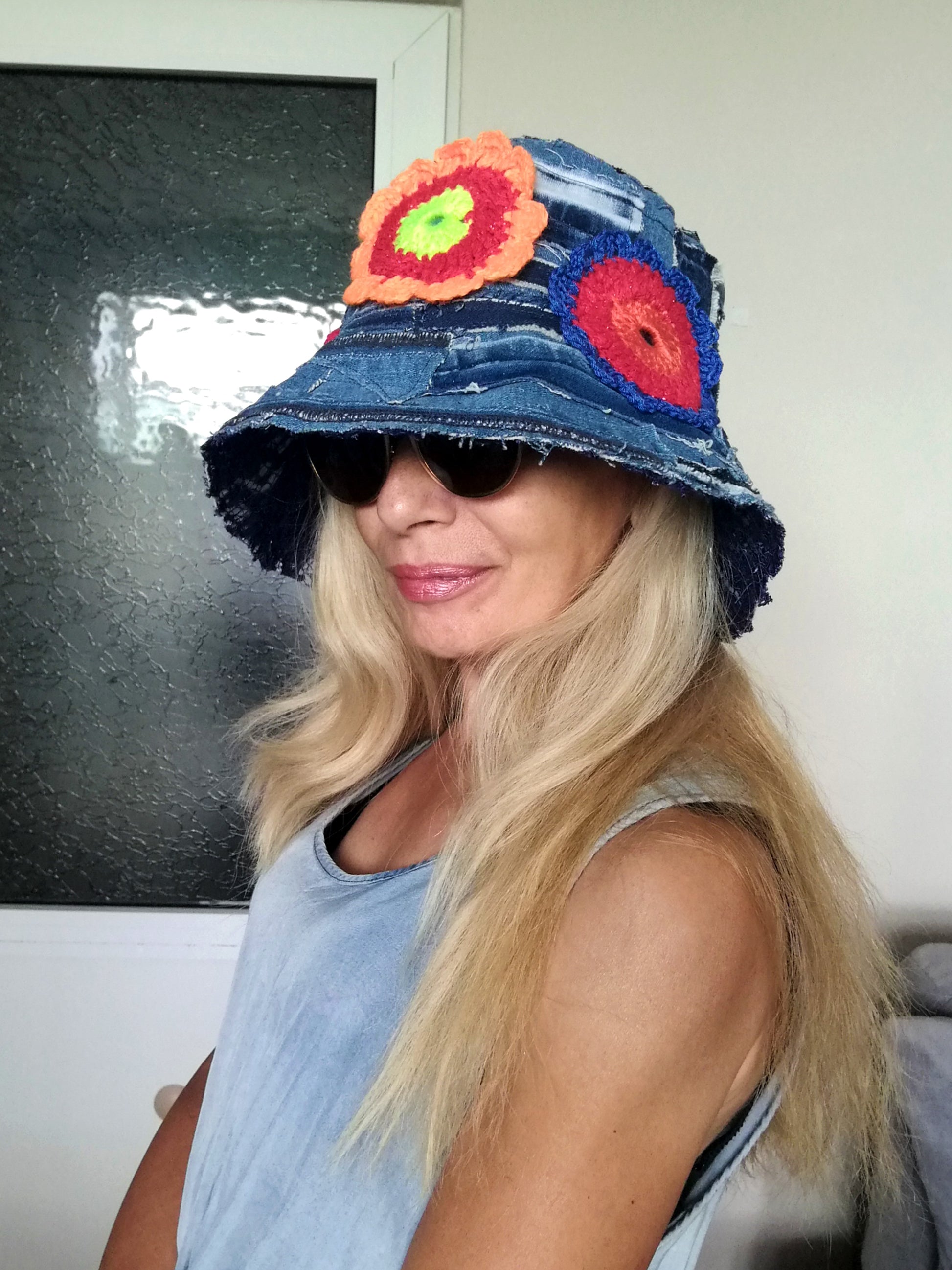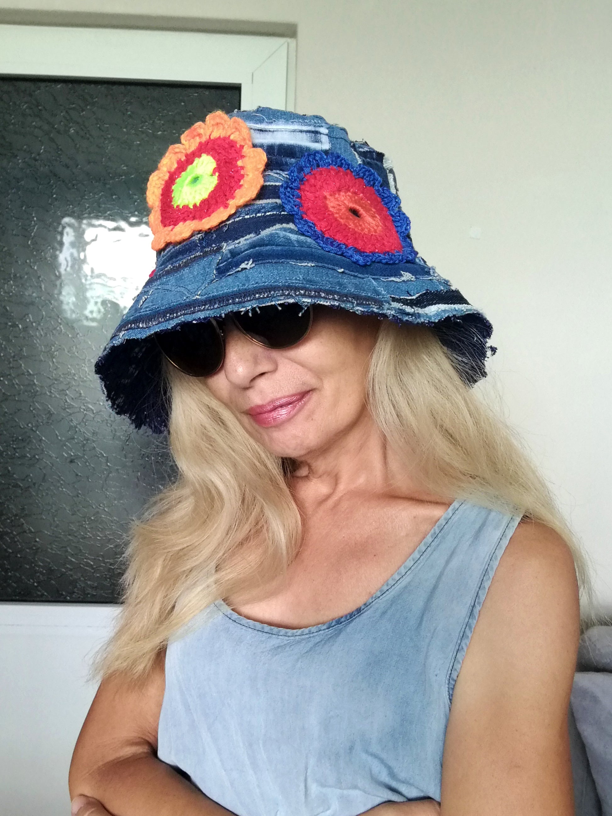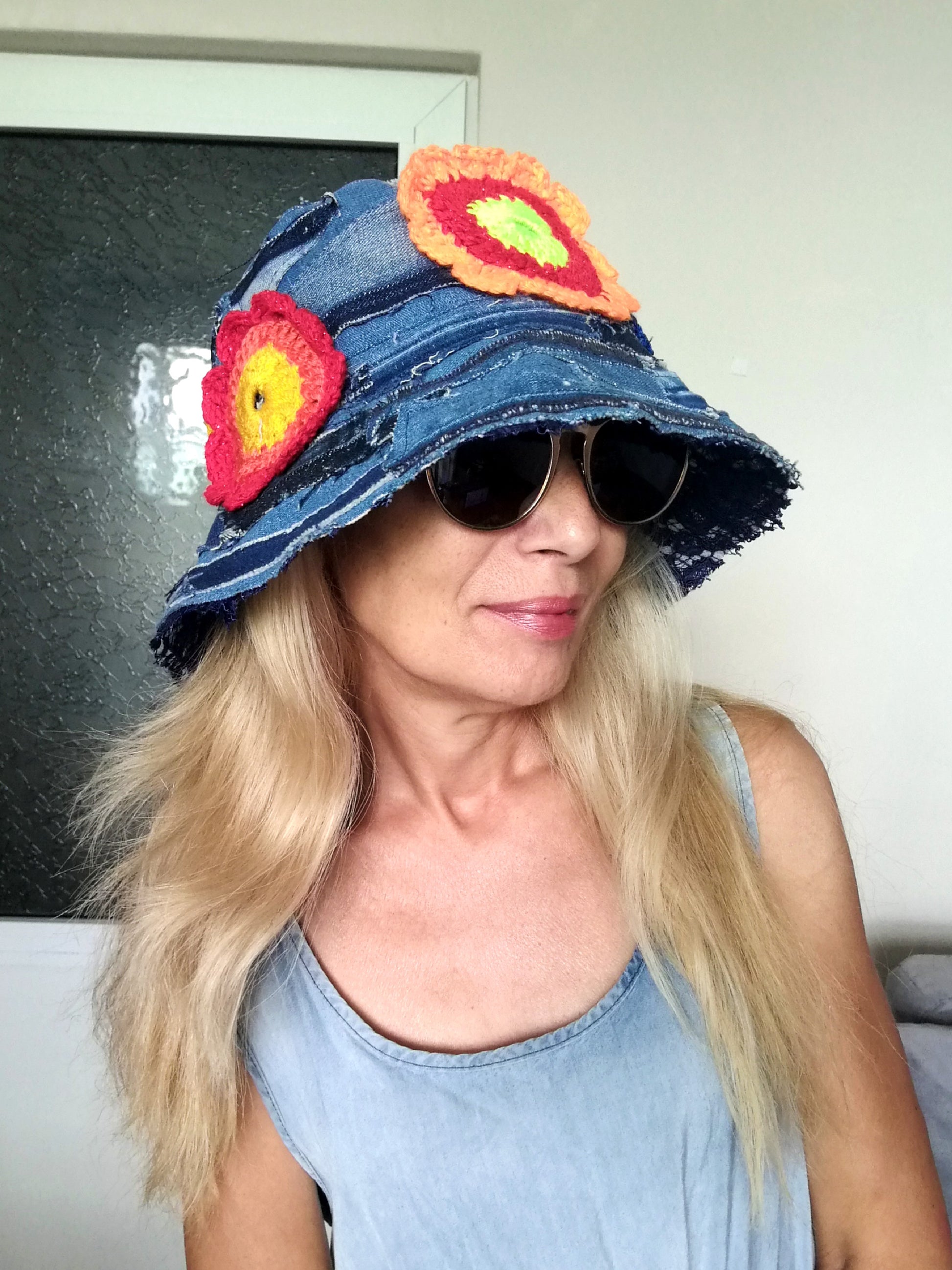 This boho gypsy denim hat is exclusive, one of a kind, because I don`t make more than one item. I offer special, unique items-only one is available for one special person!