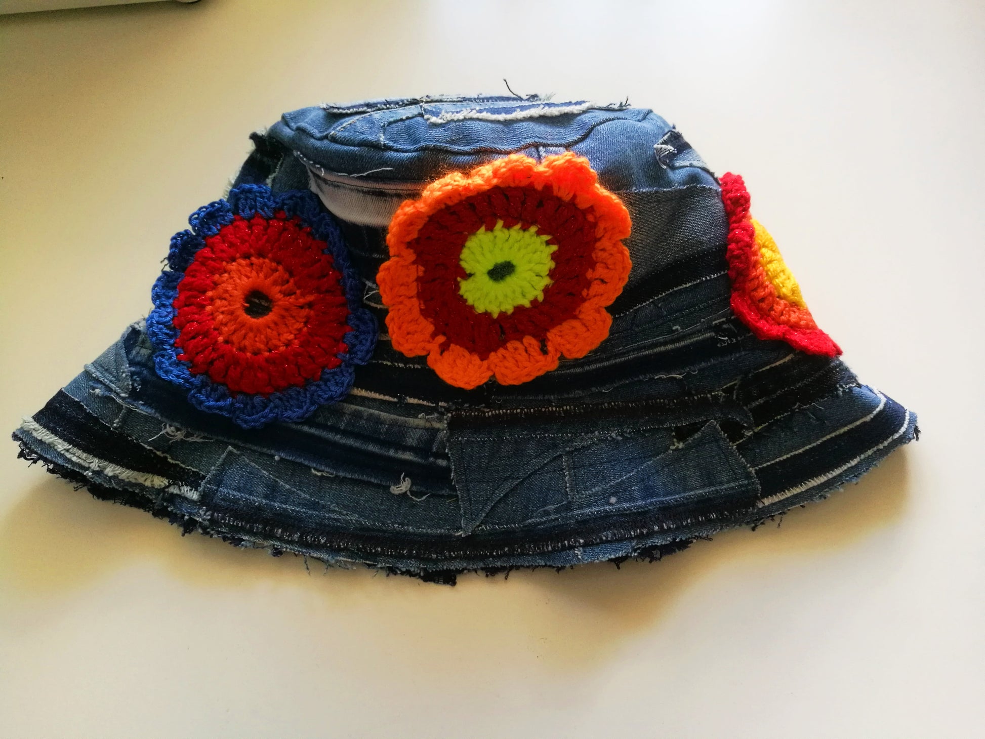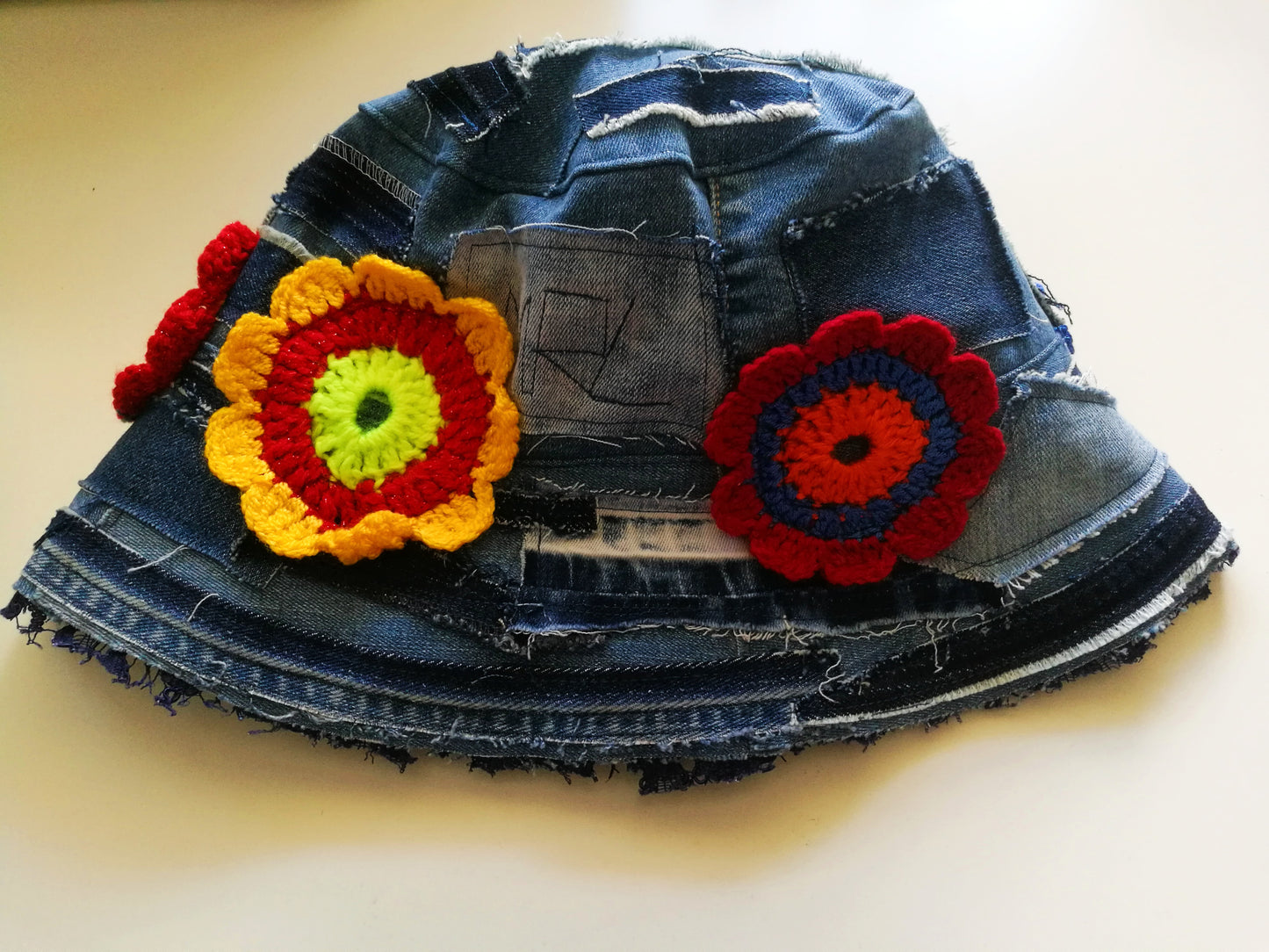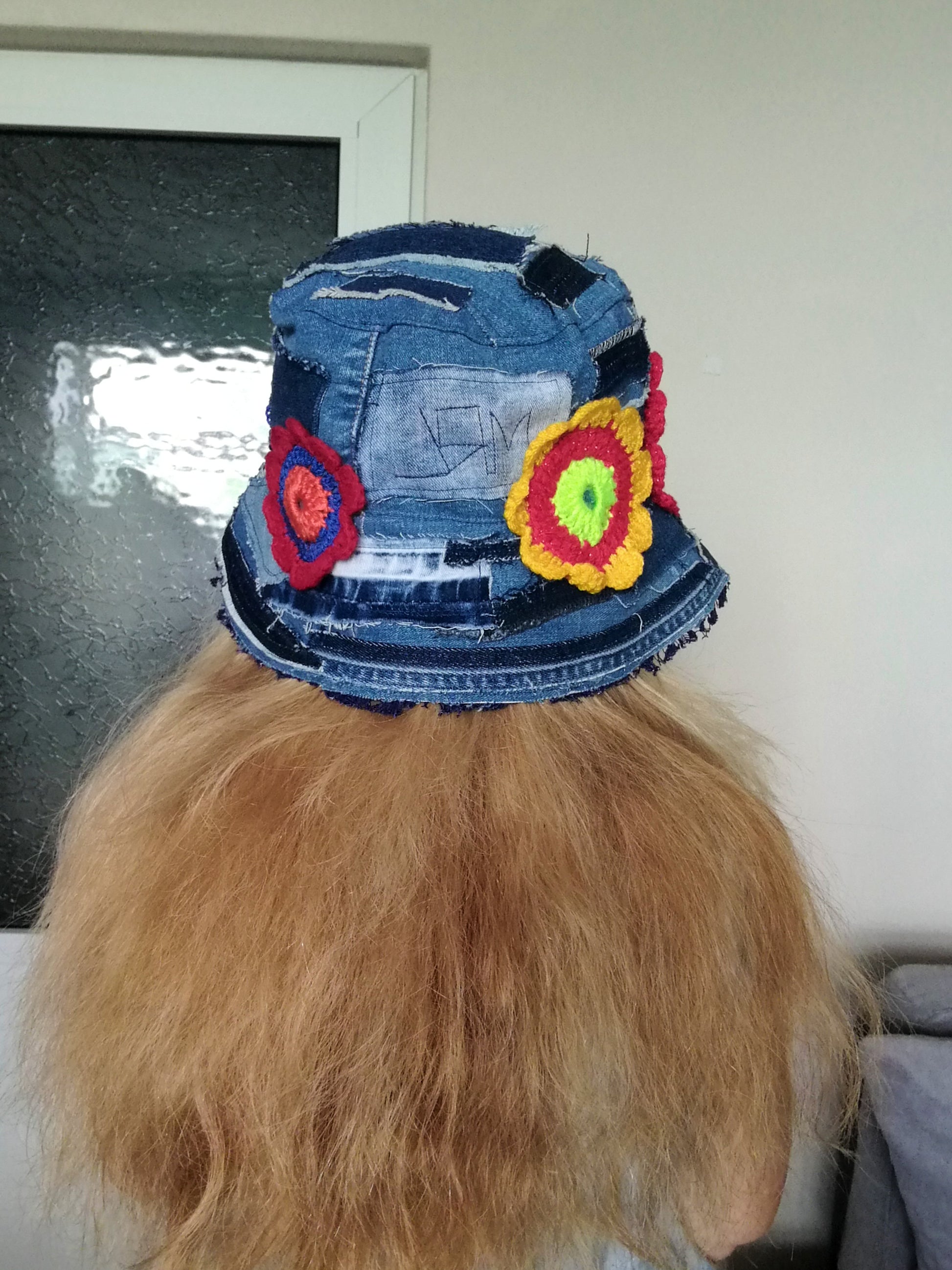 I designed and constructed this 2XL DENIM BUCKET HAT.