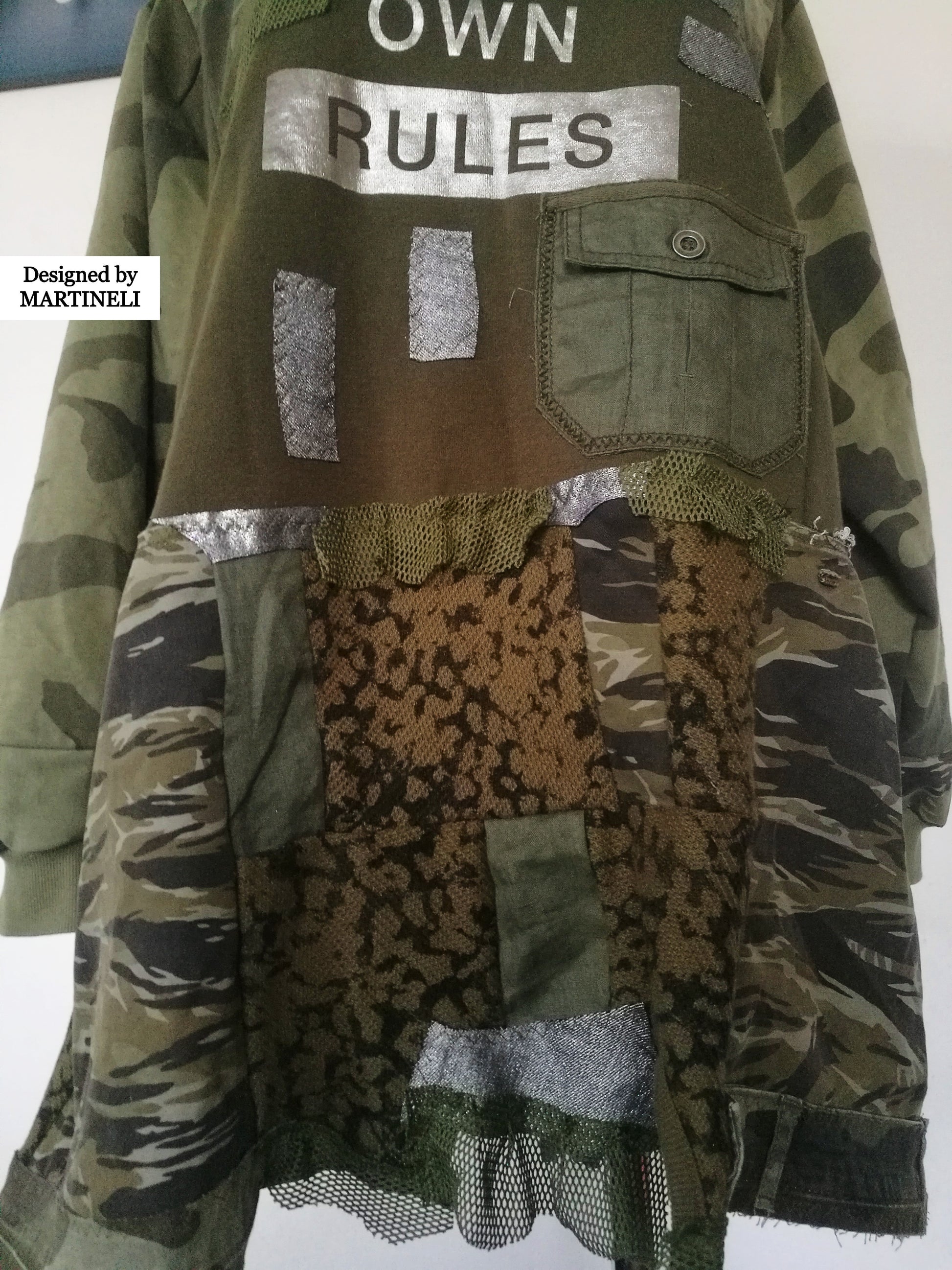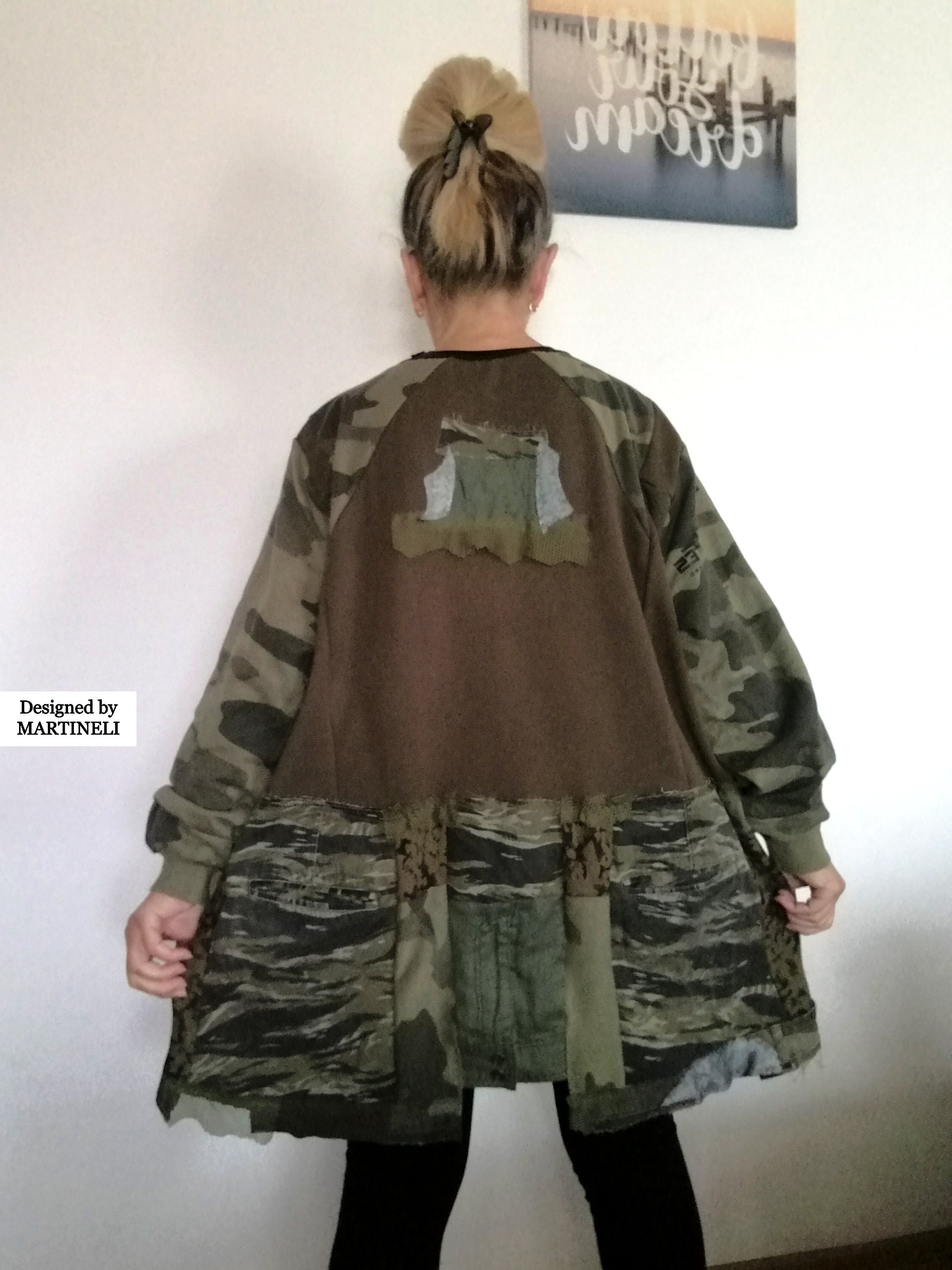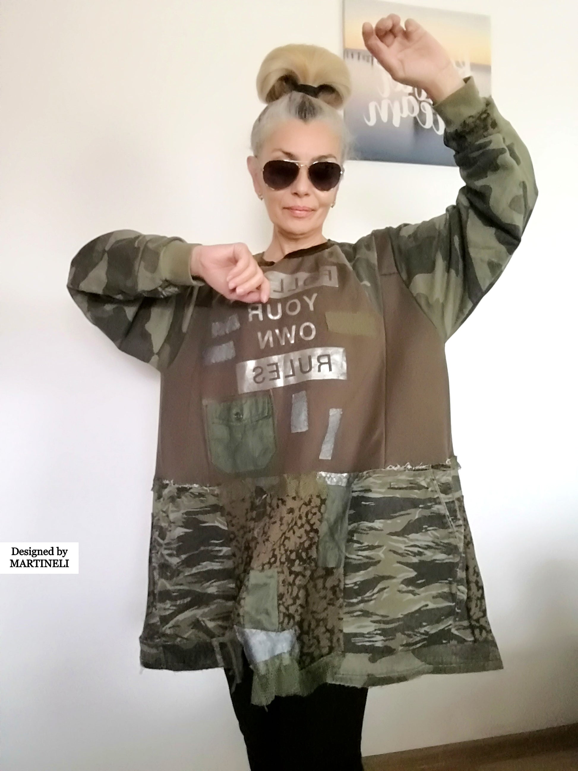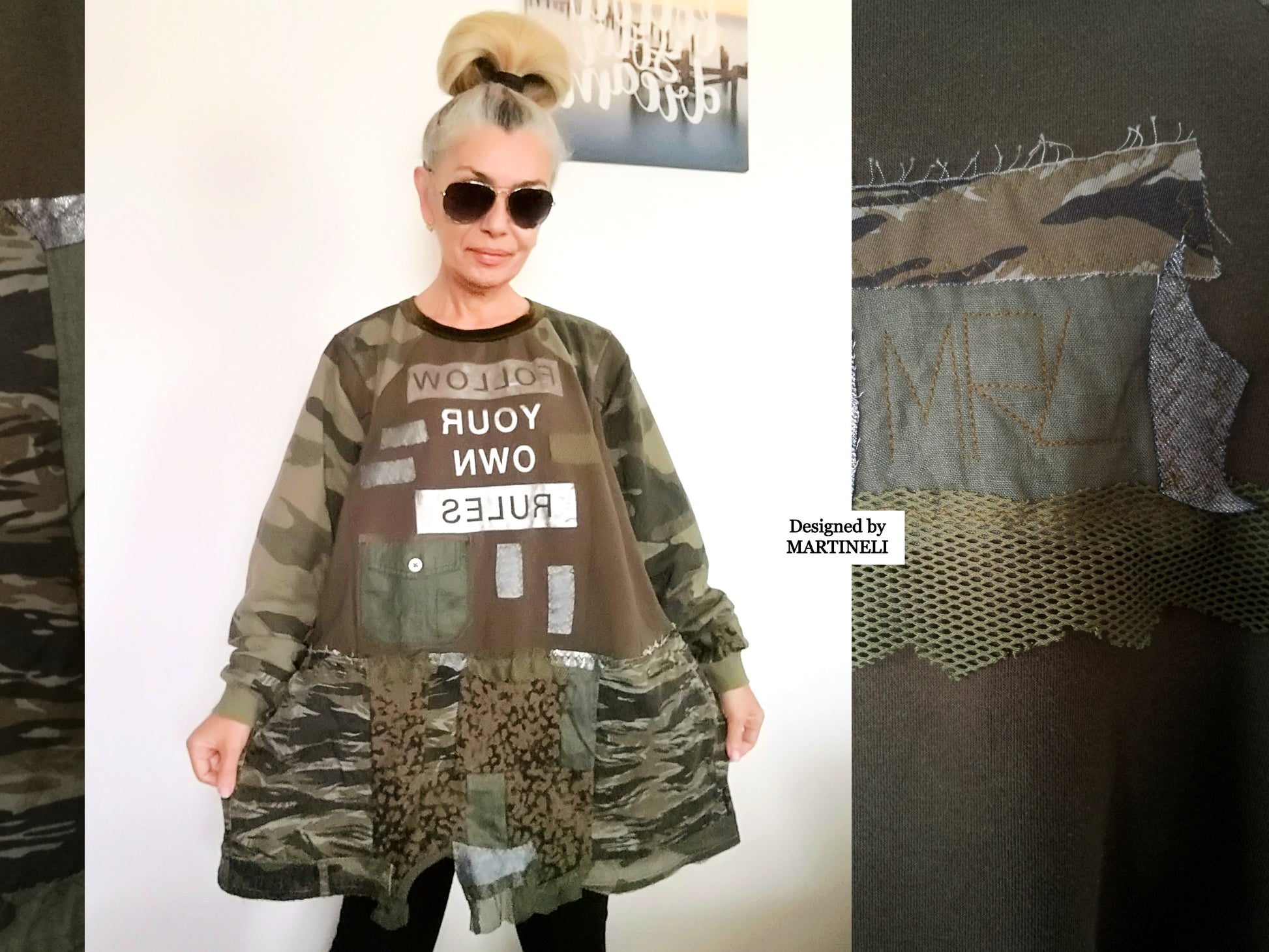 I designed and constructed this plus size 3XL camouflage sweatshirt dress.