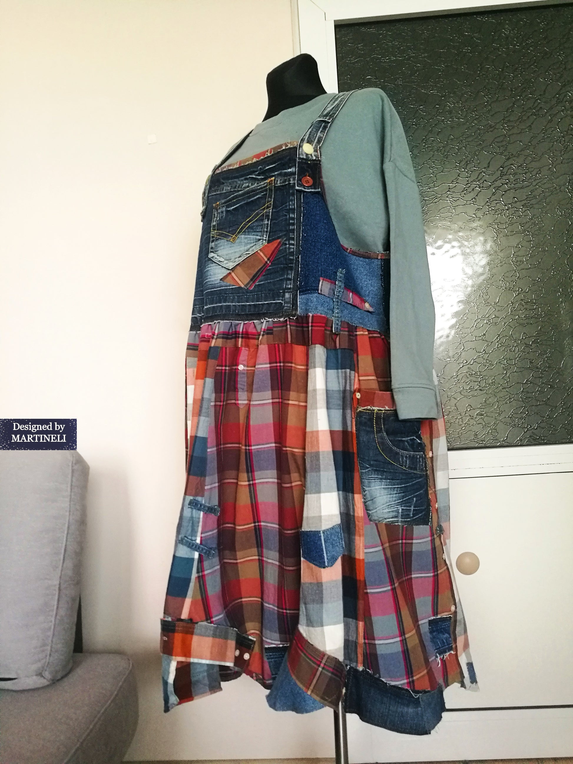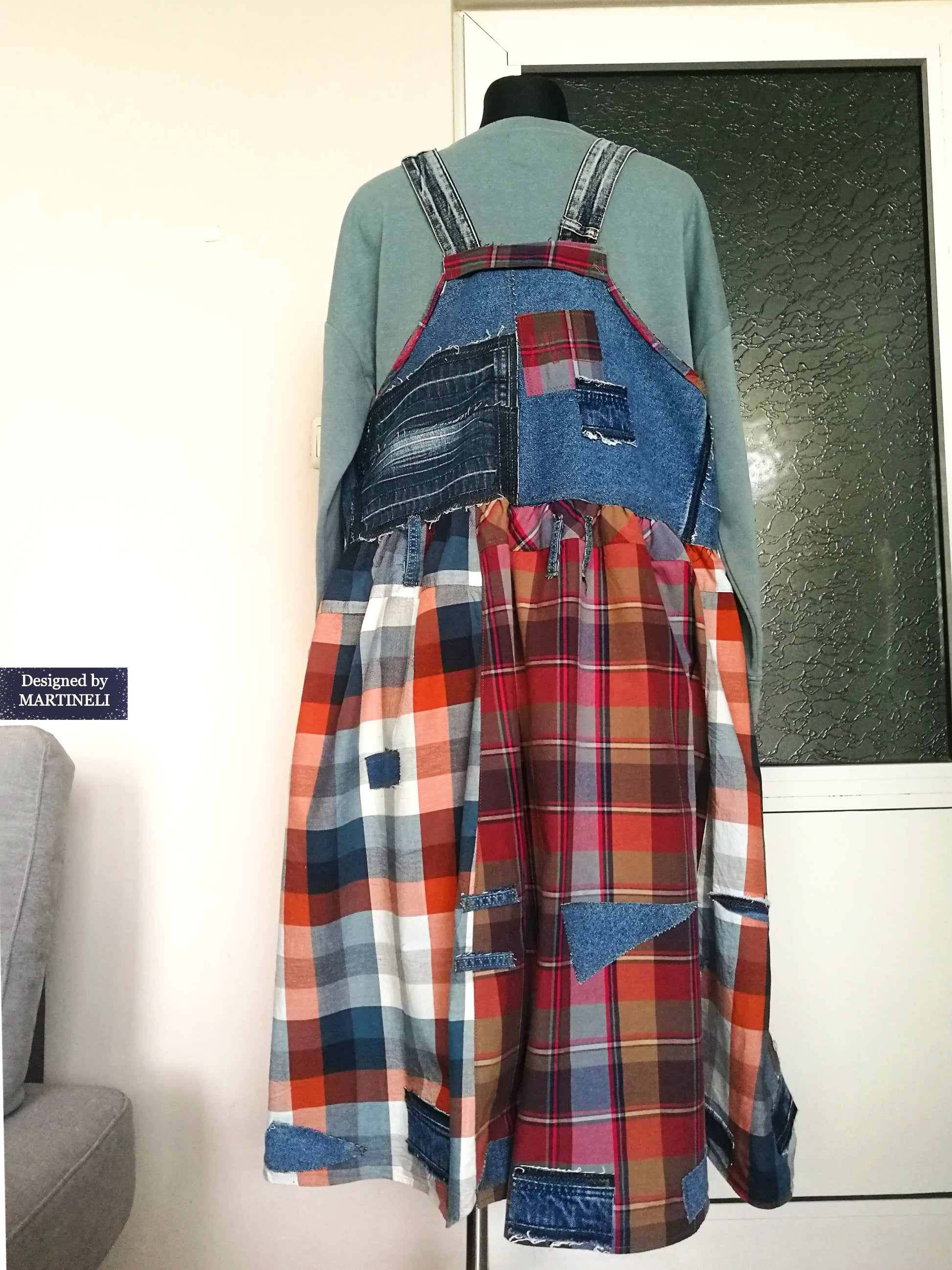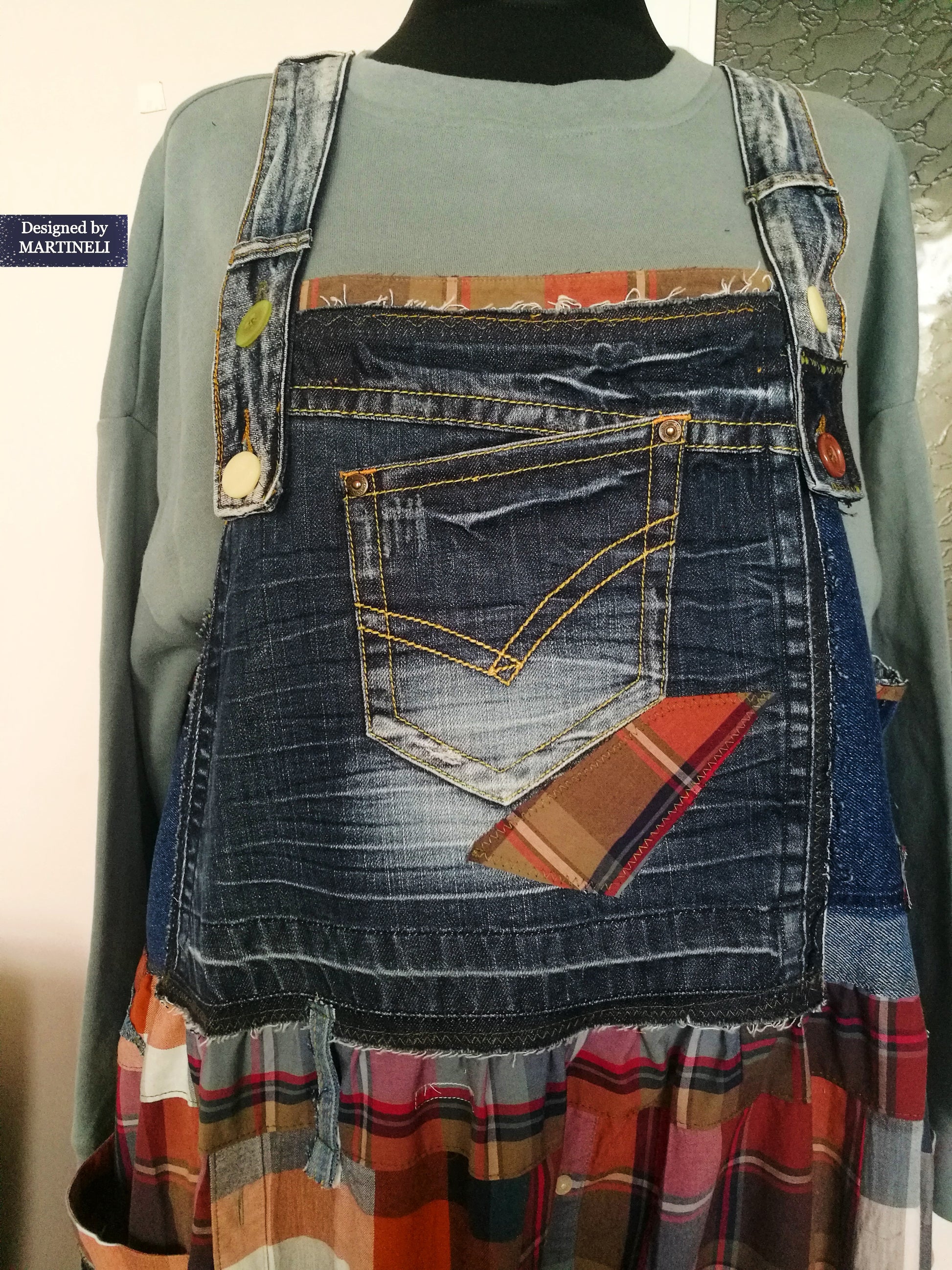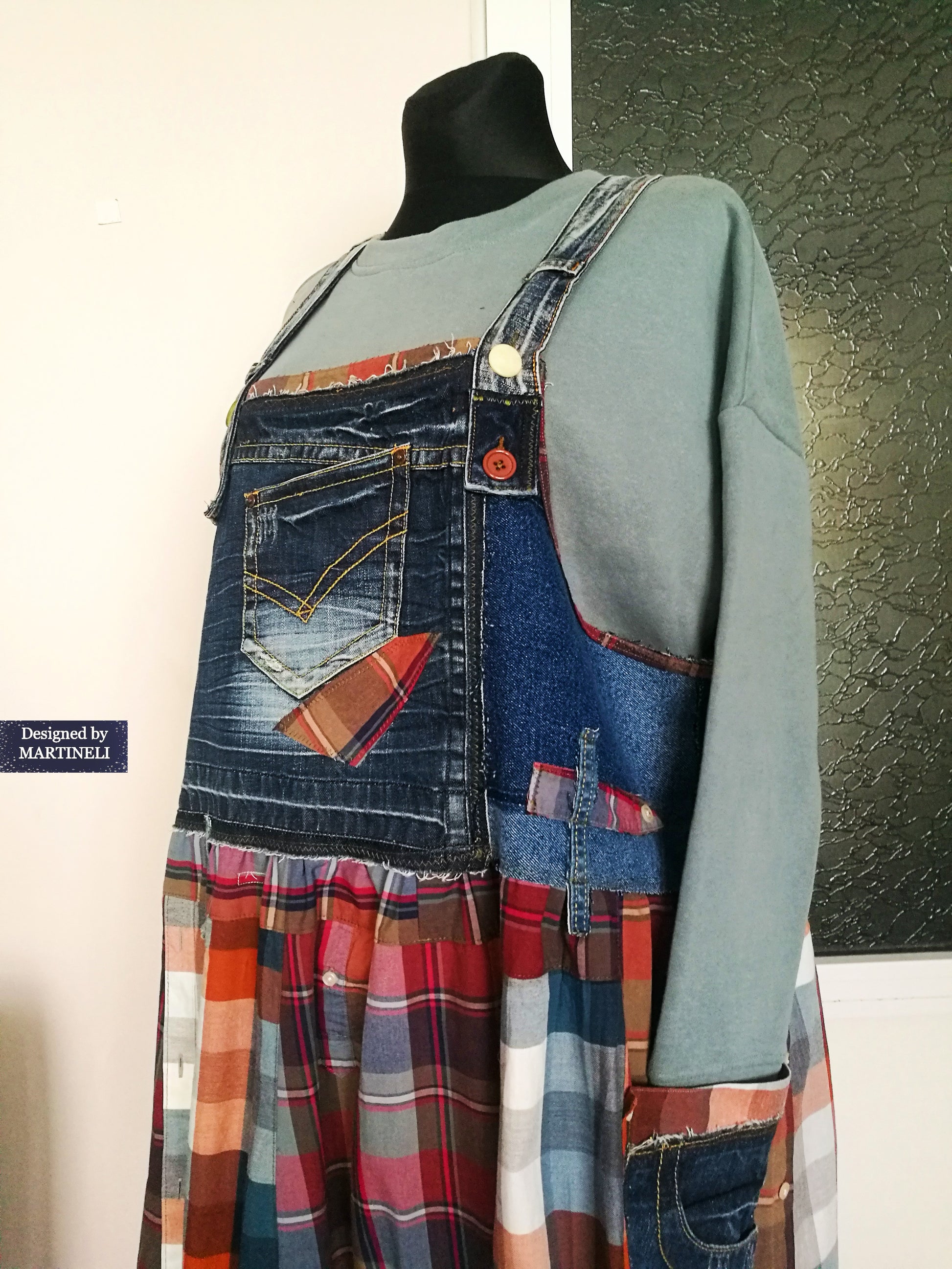 This patchwork denim jumper dress can be worn all year long - with t shirt, shirt,sweater or hoodie...