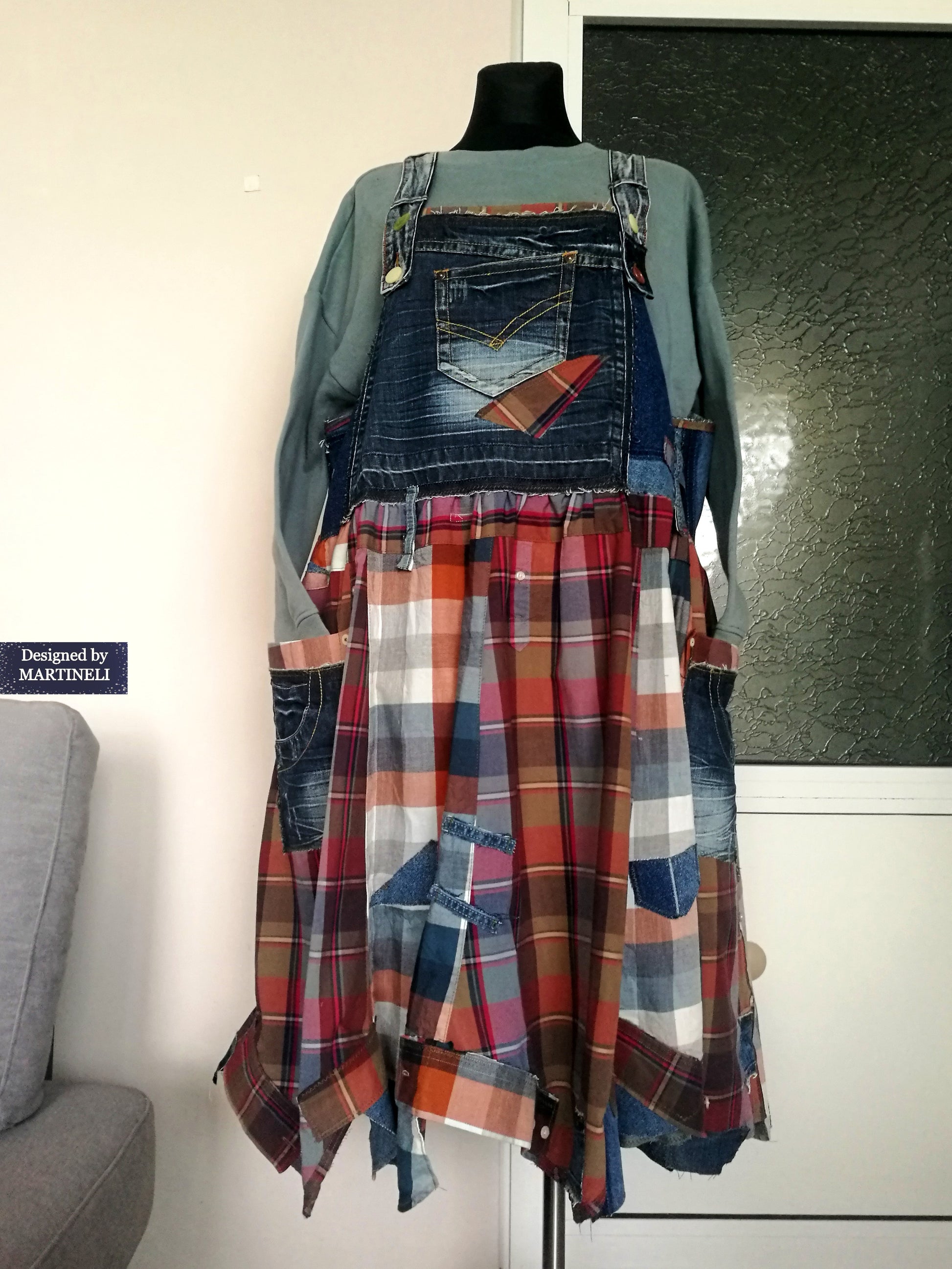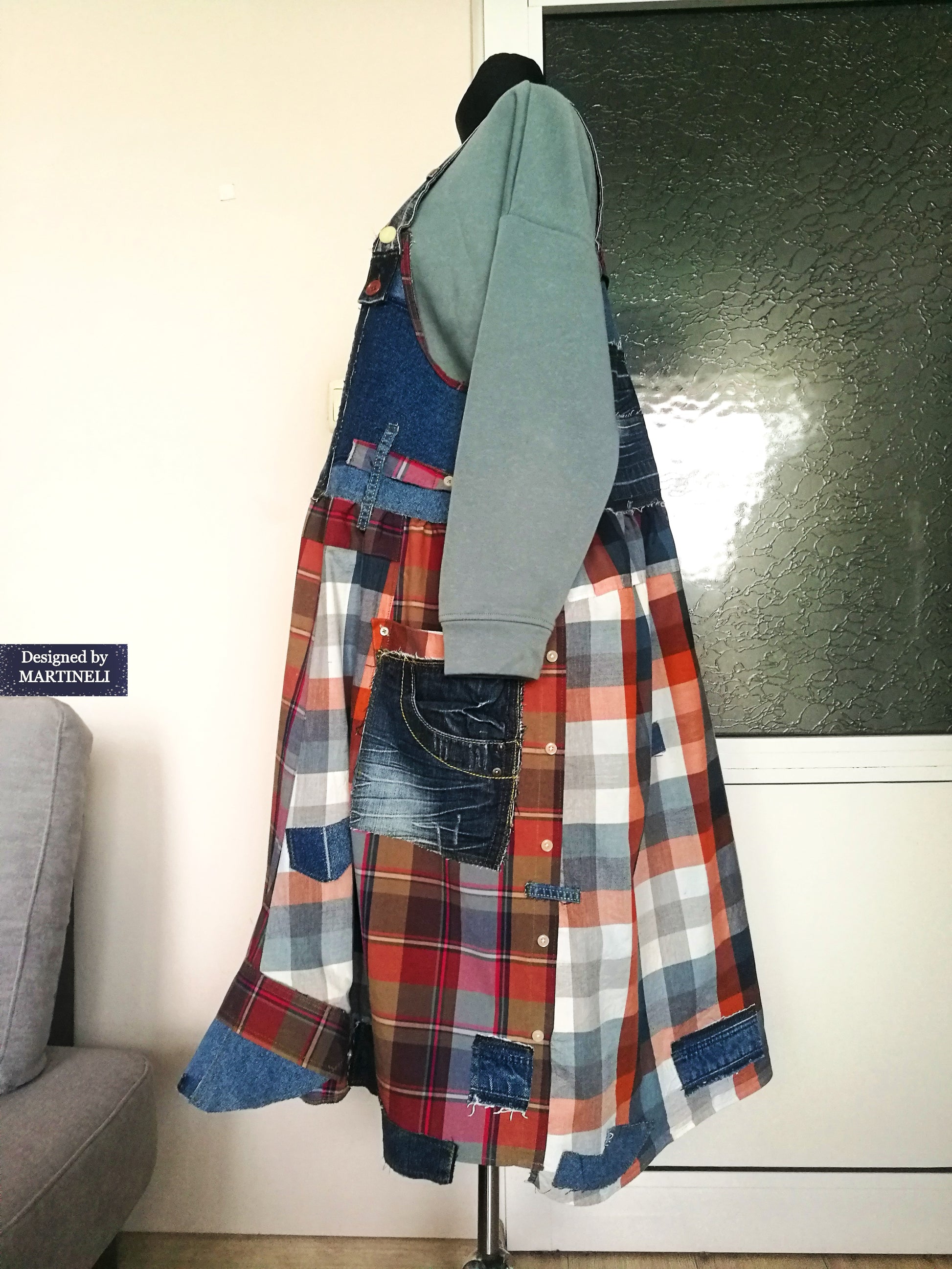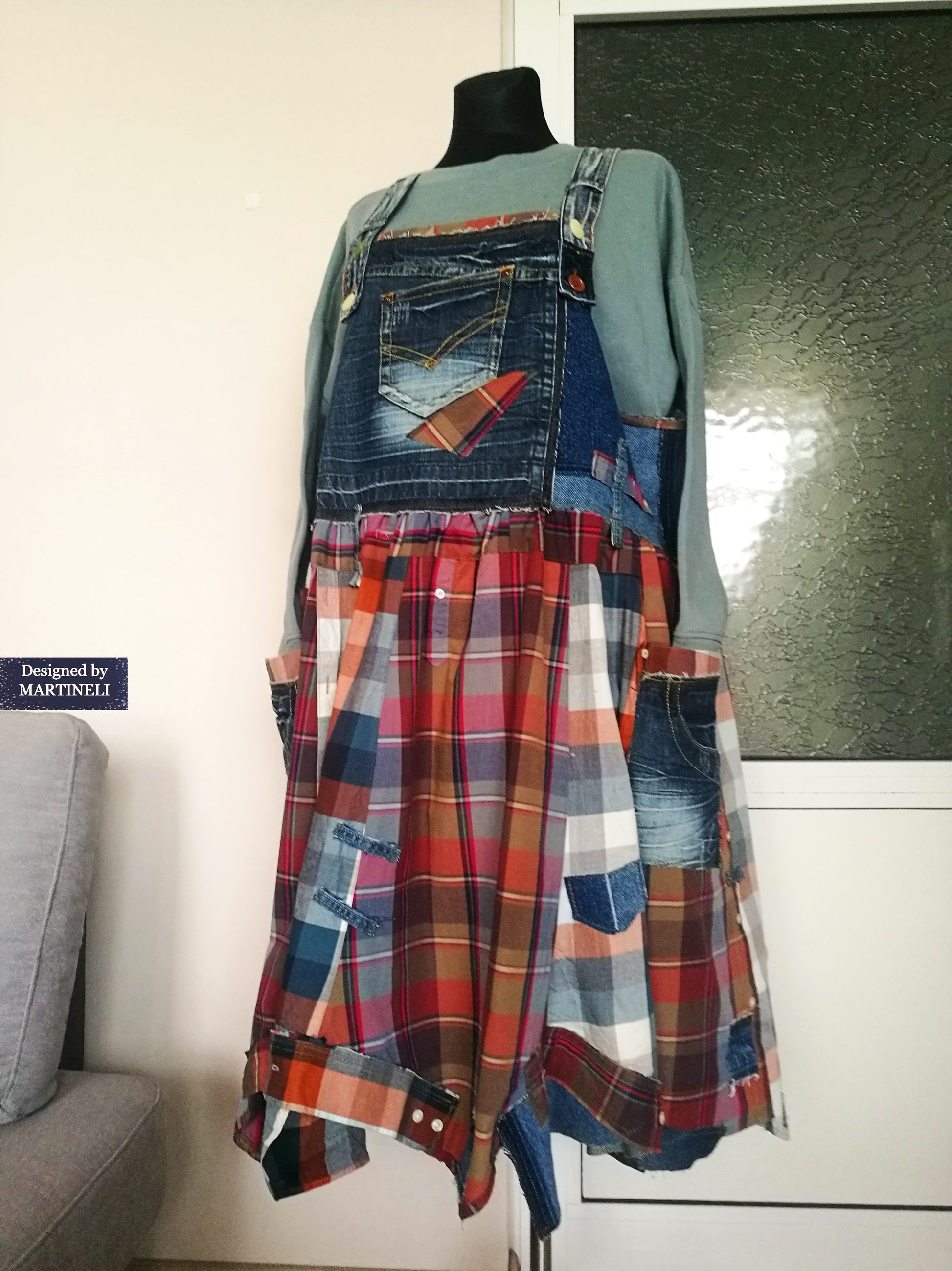This patchwork denim jumper dress can be worn all year long - with t shirt, shirt,sweater or hoodie...