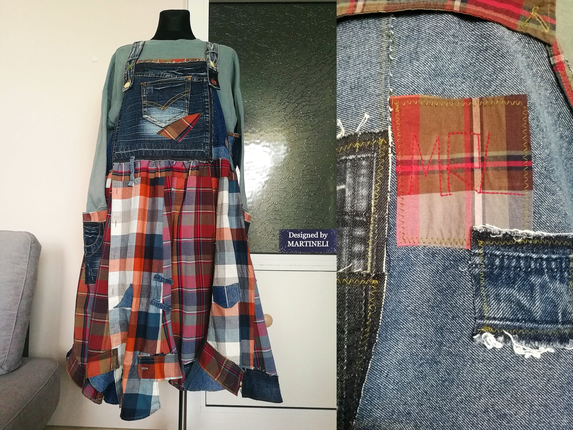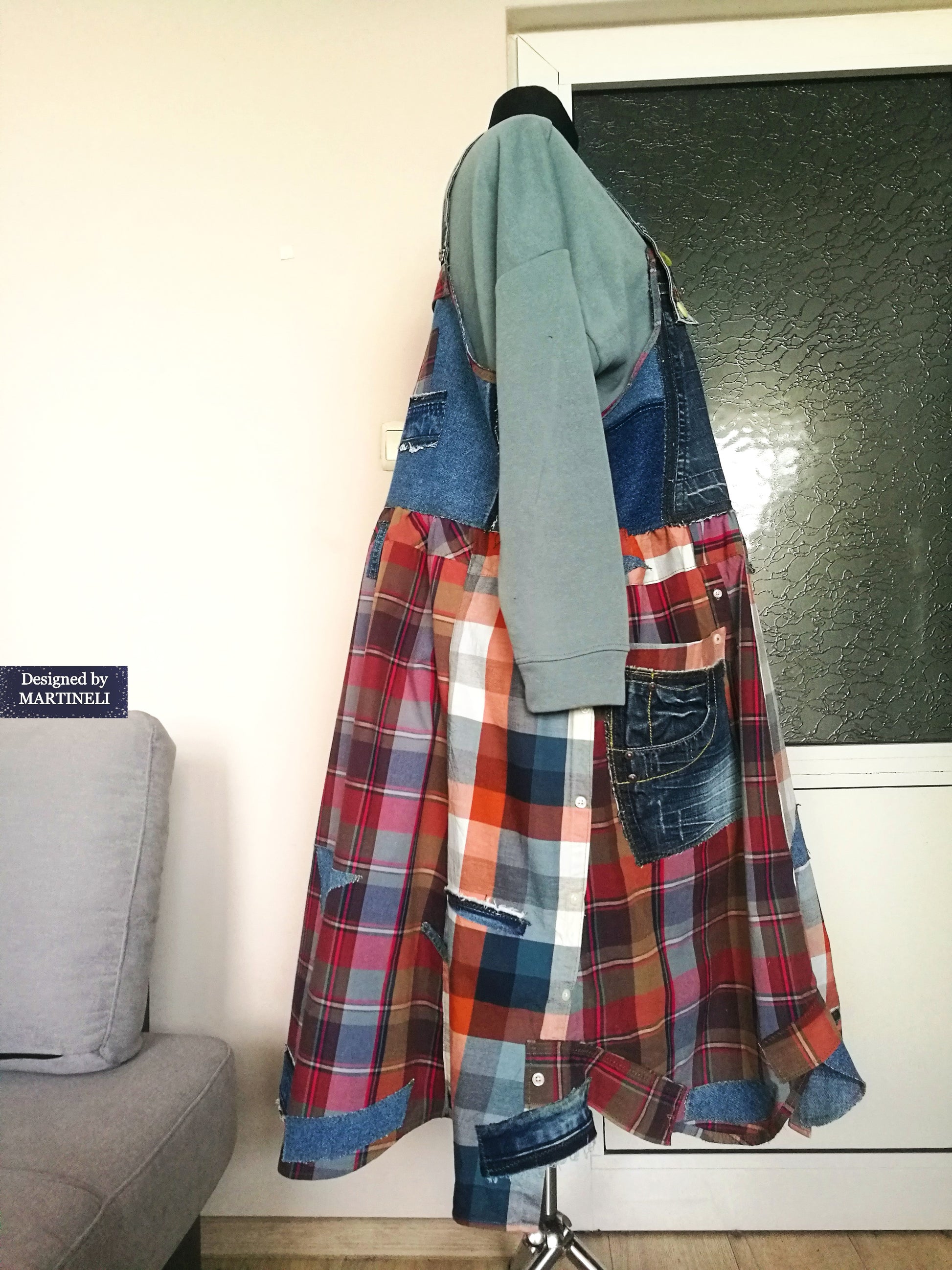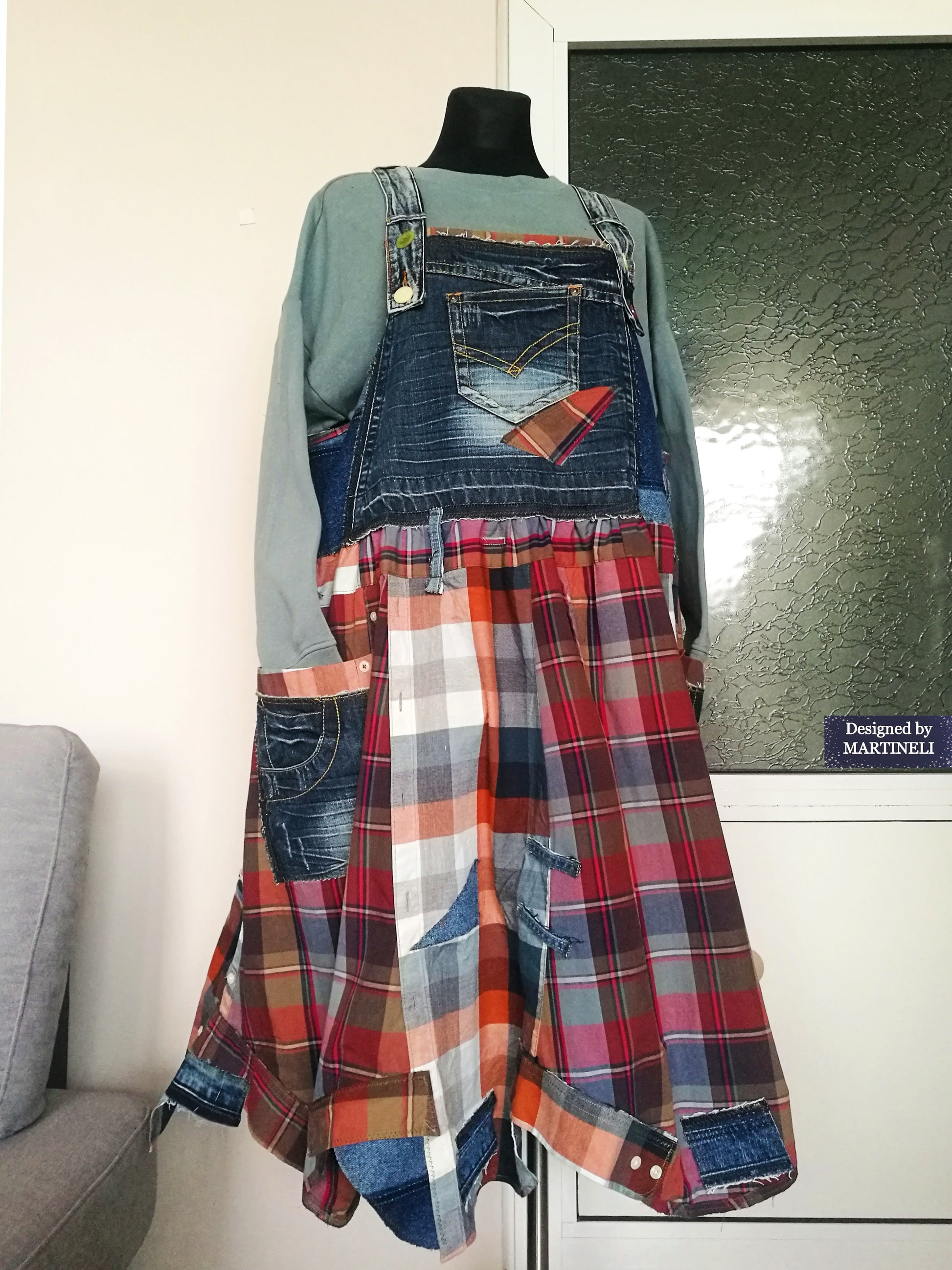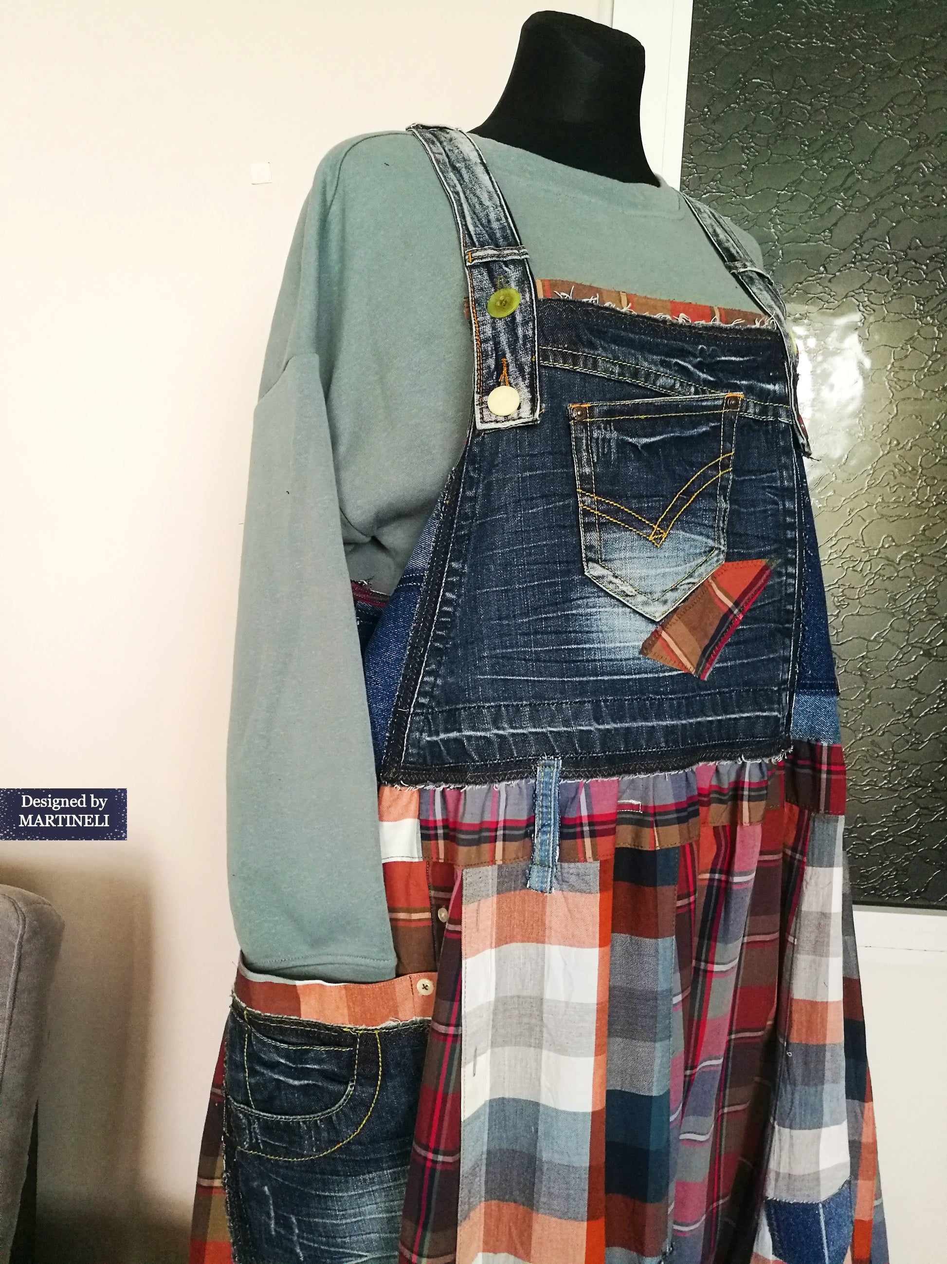 This patchwork denim jumper dress can be worn all year long - with t shirt, shirt,sweater or hoodie...