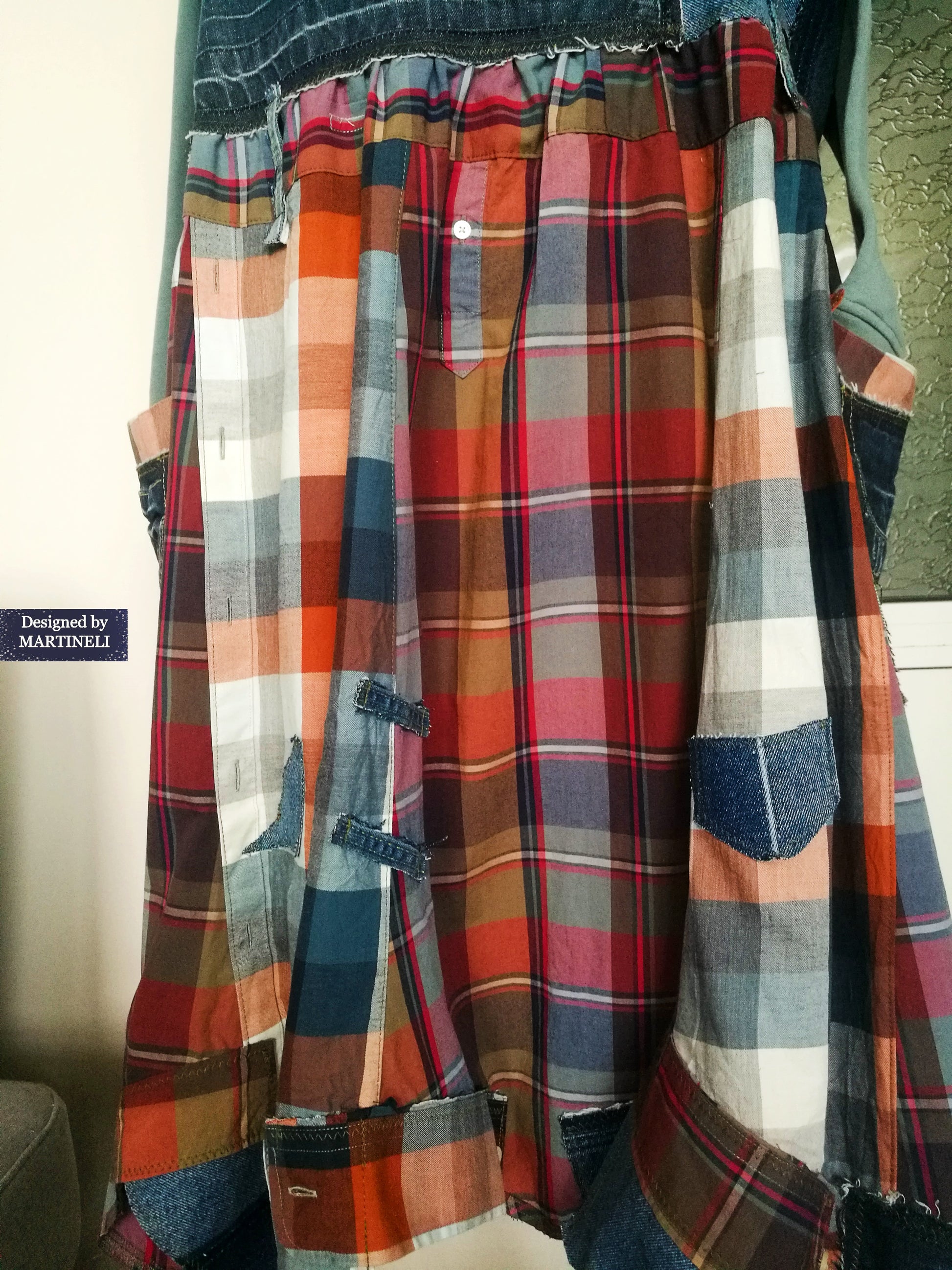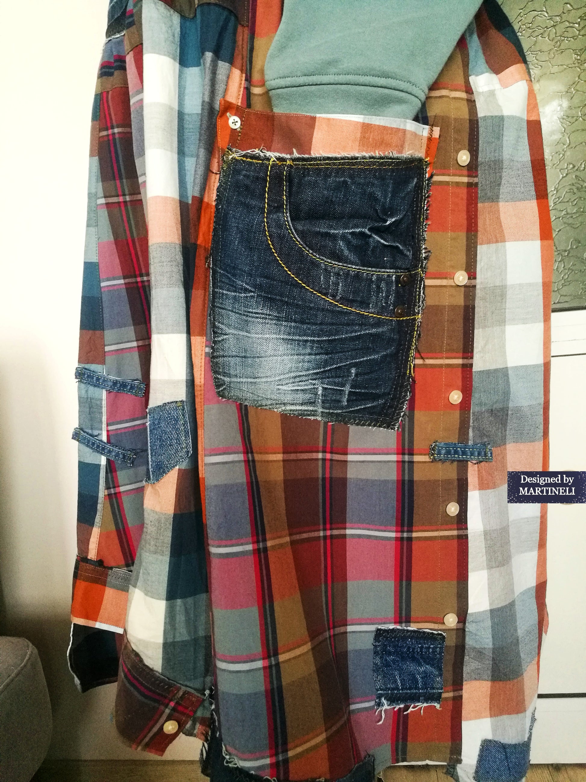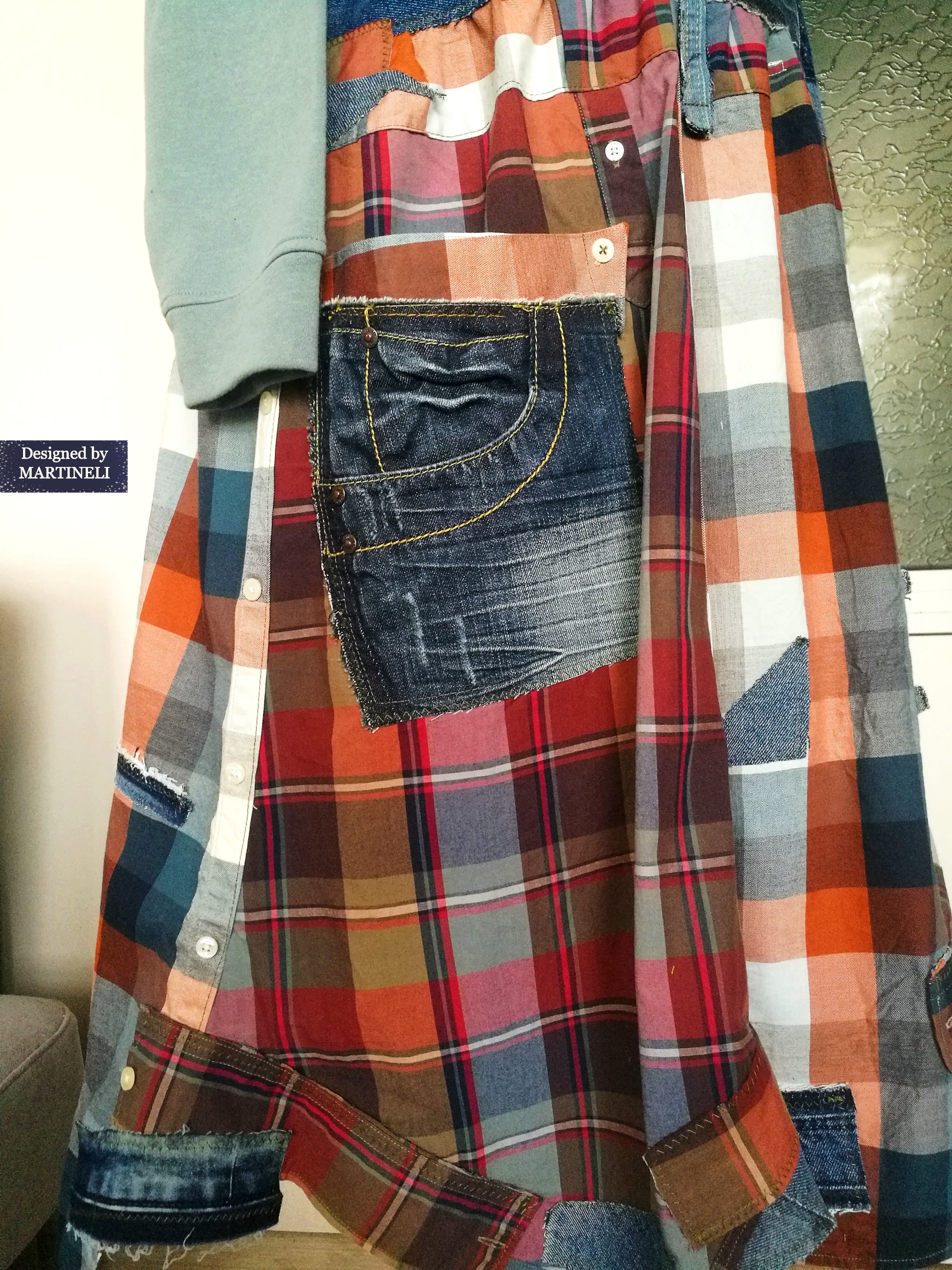 I used different nuances of blue denim, different plaid cotton fabrics in blue/red/brown/gray.