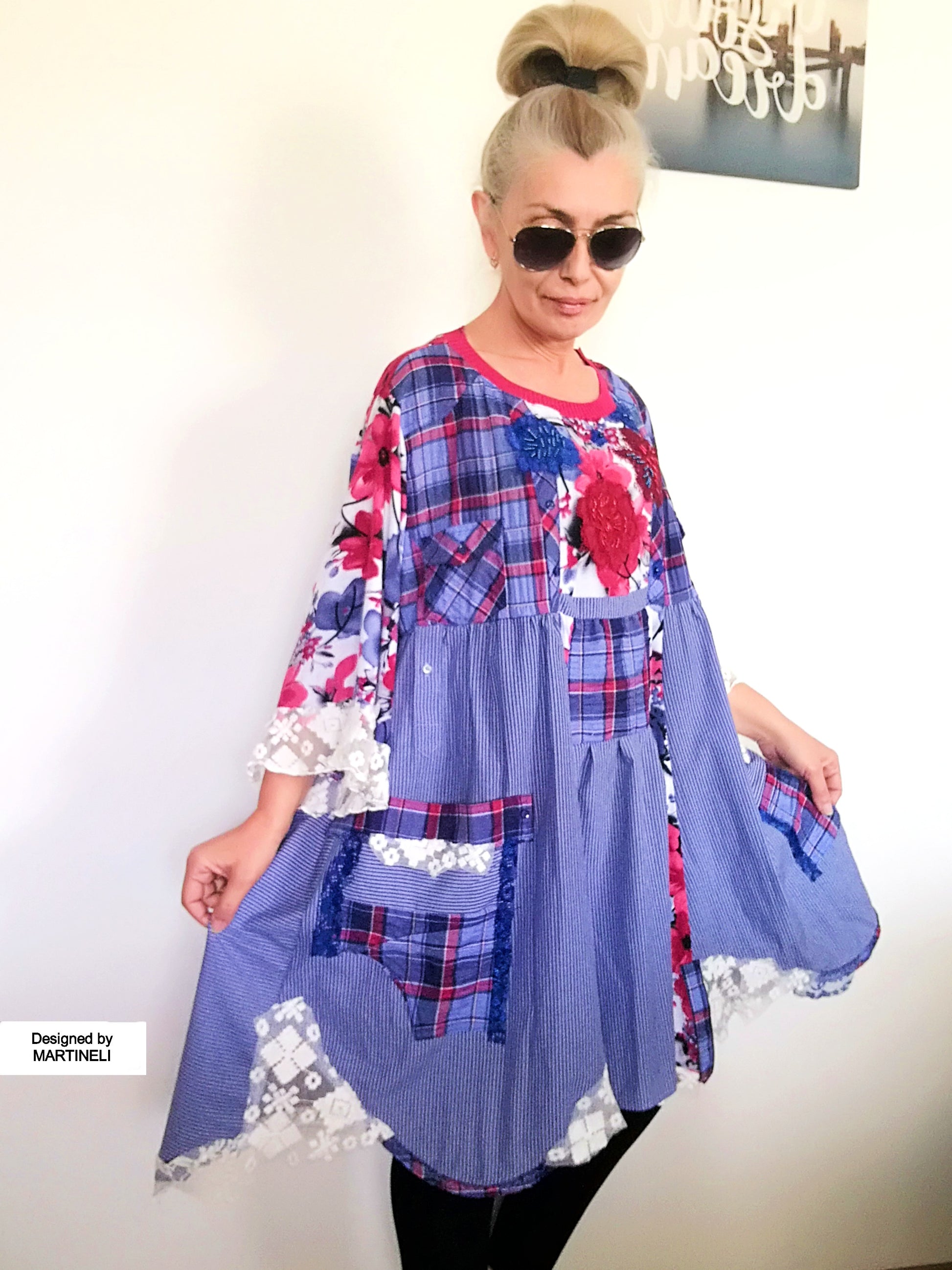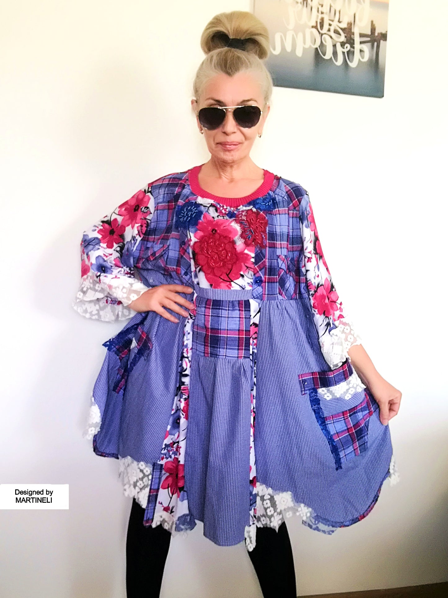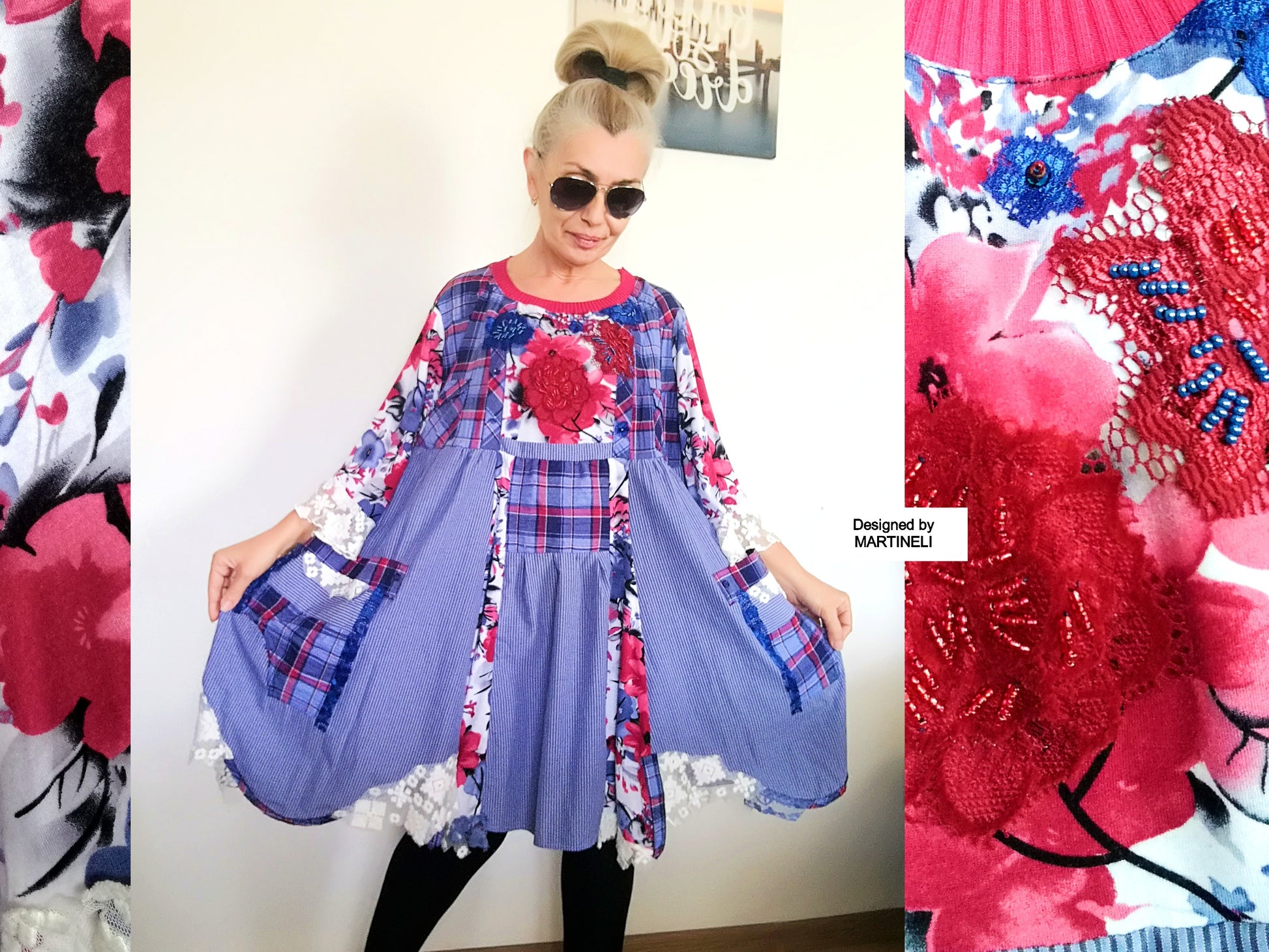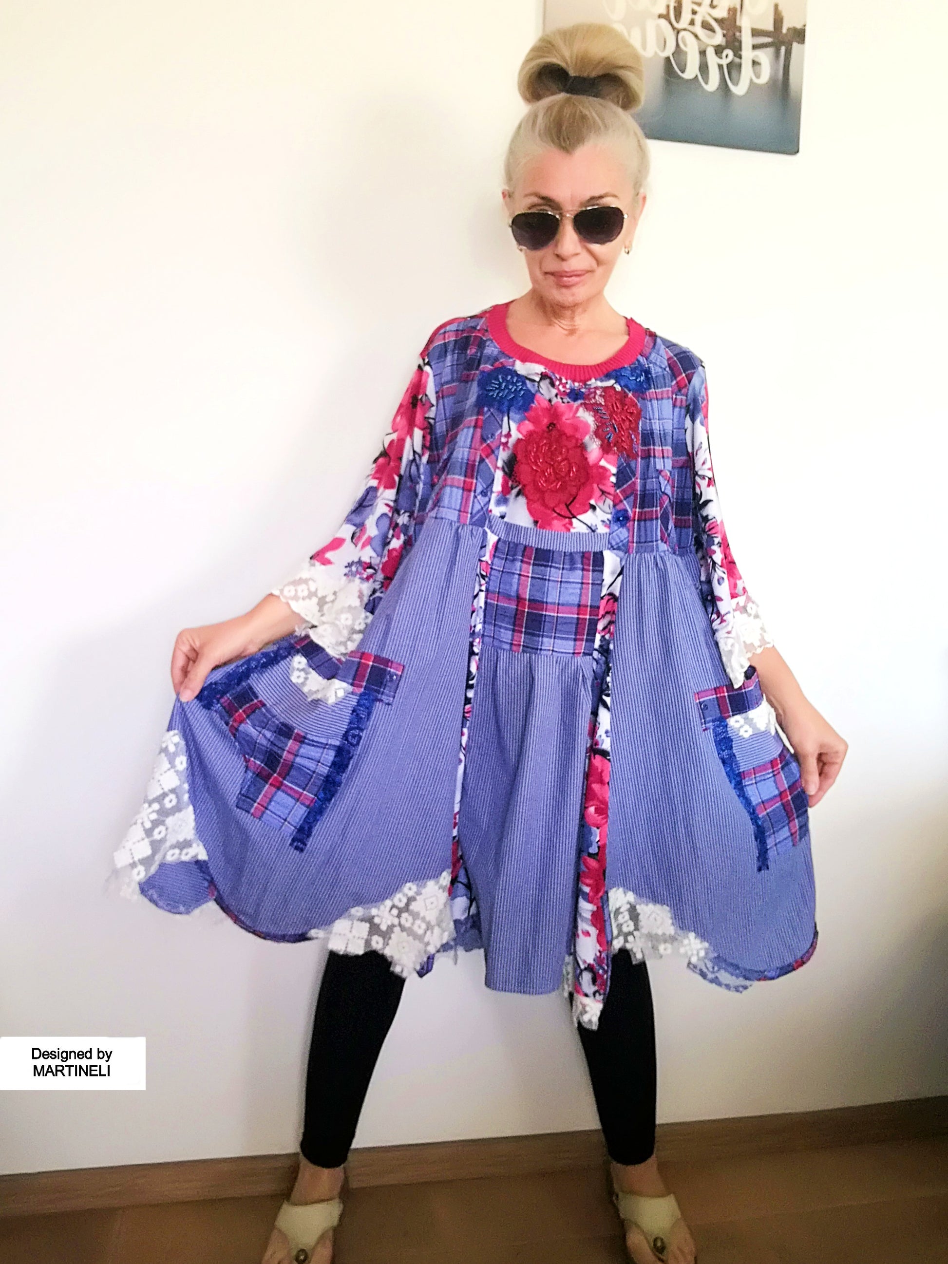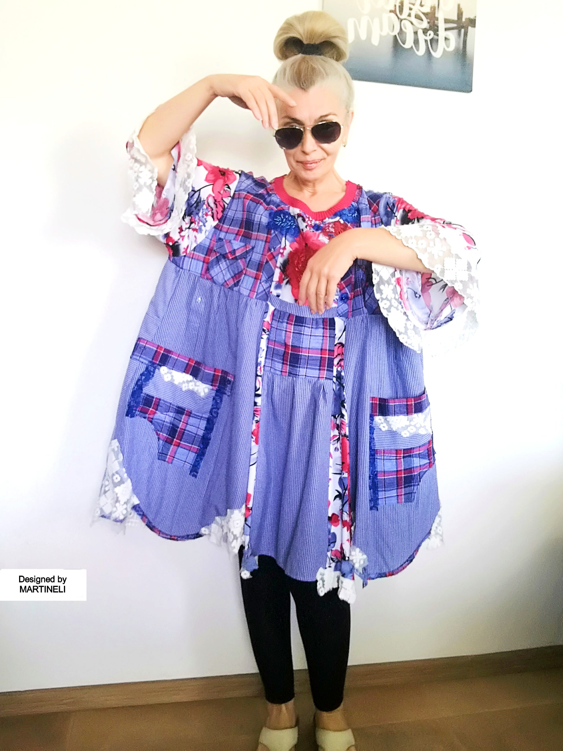 This loose cotton shirtdress is exclusive,one of a kind,because I don`t make more than one item.I offer special,unique items-only one is available for one special person!