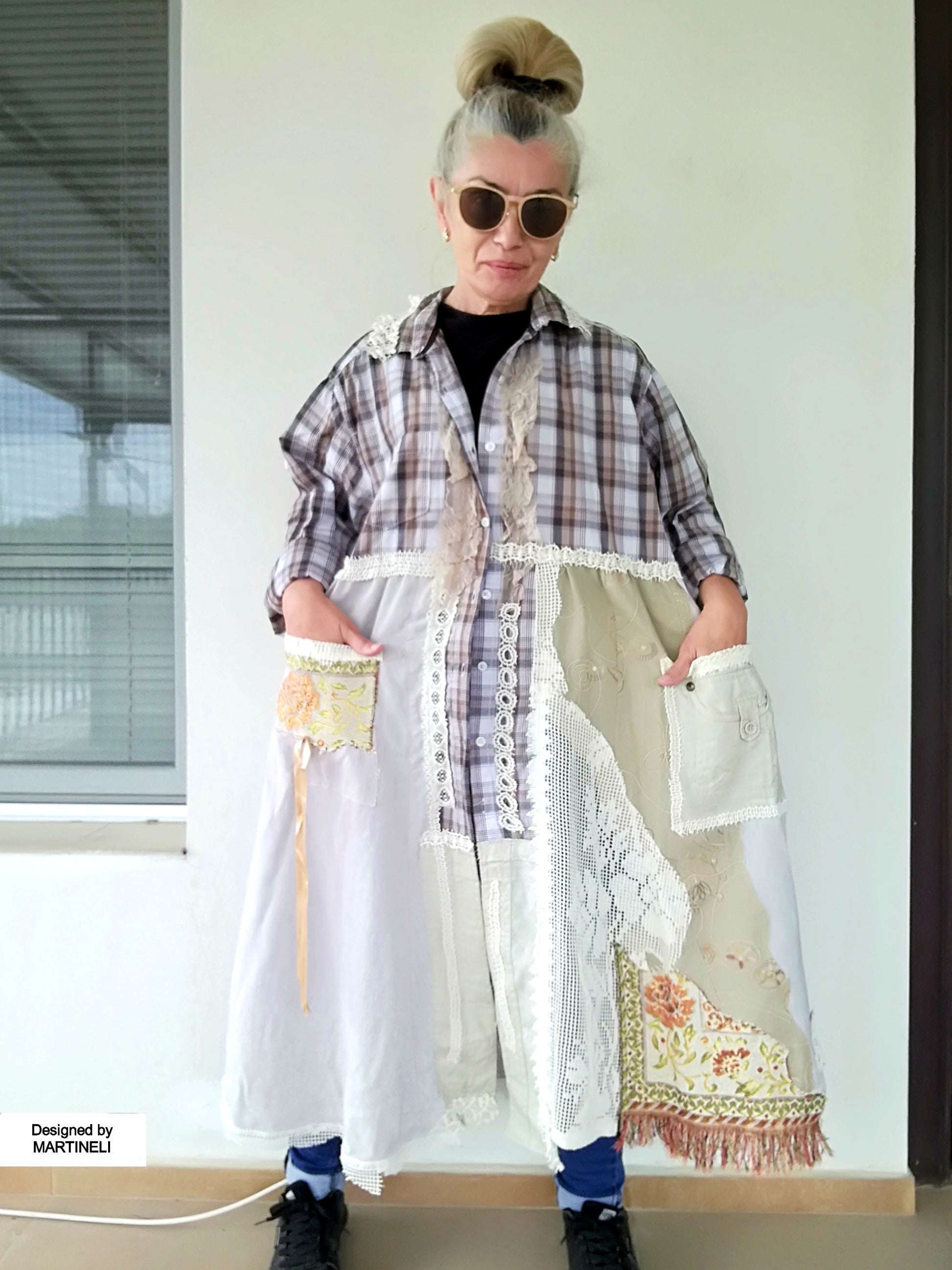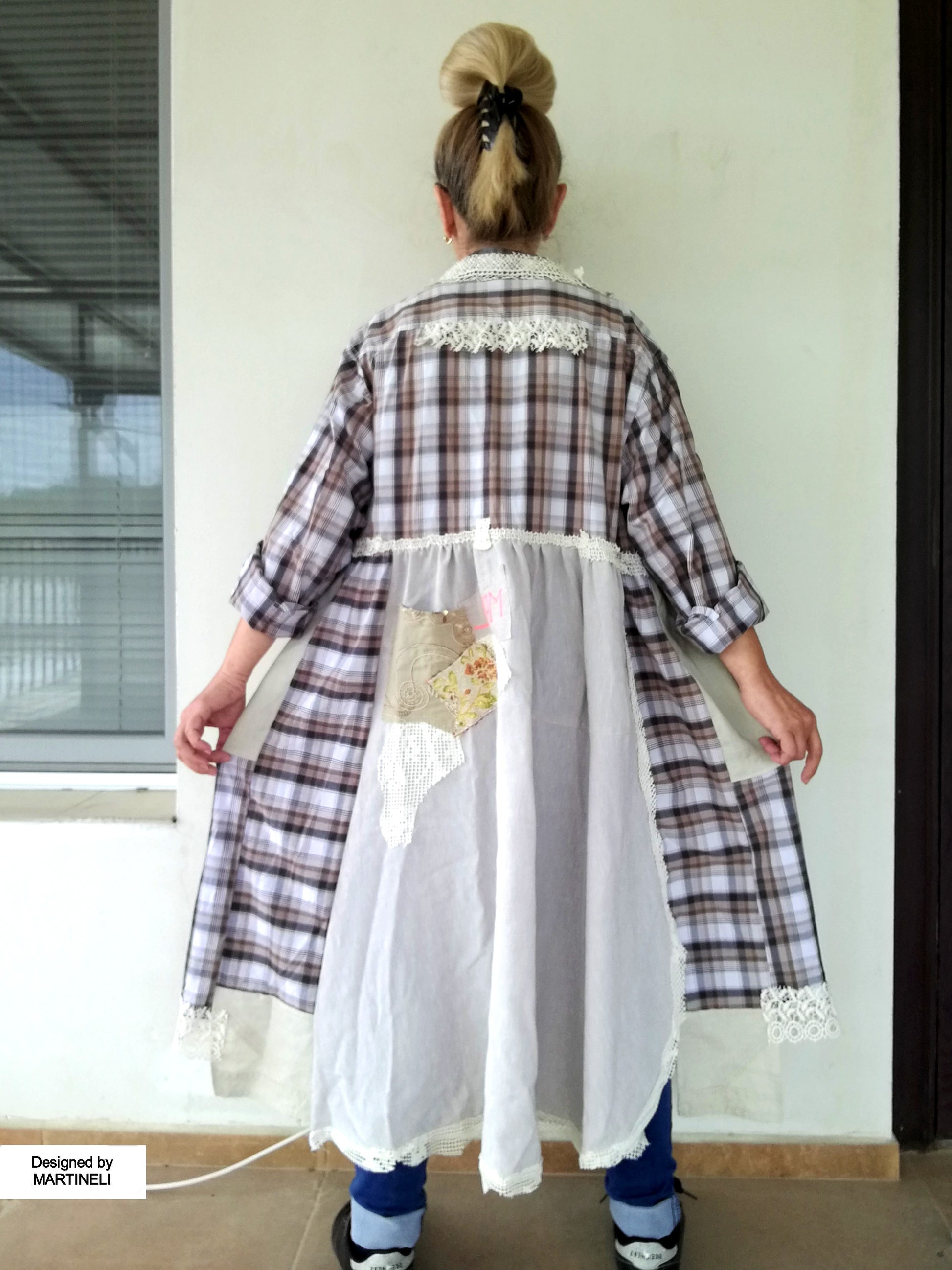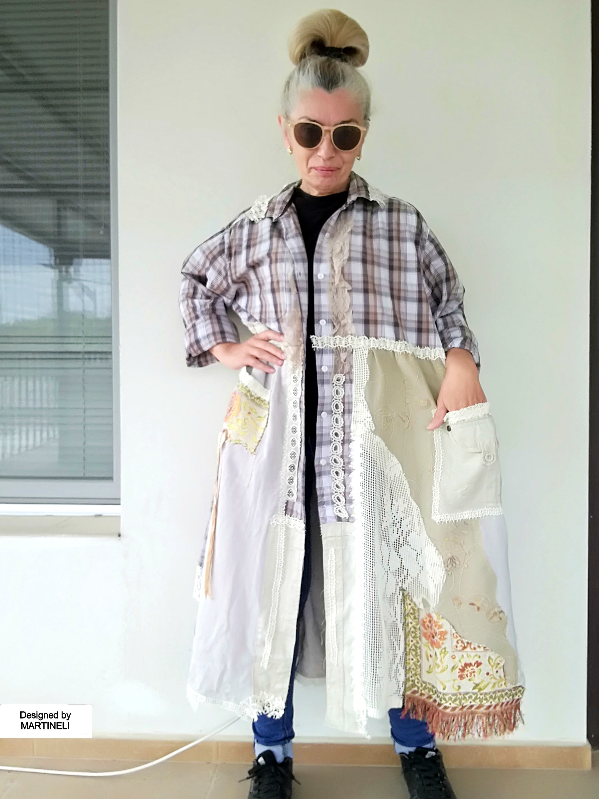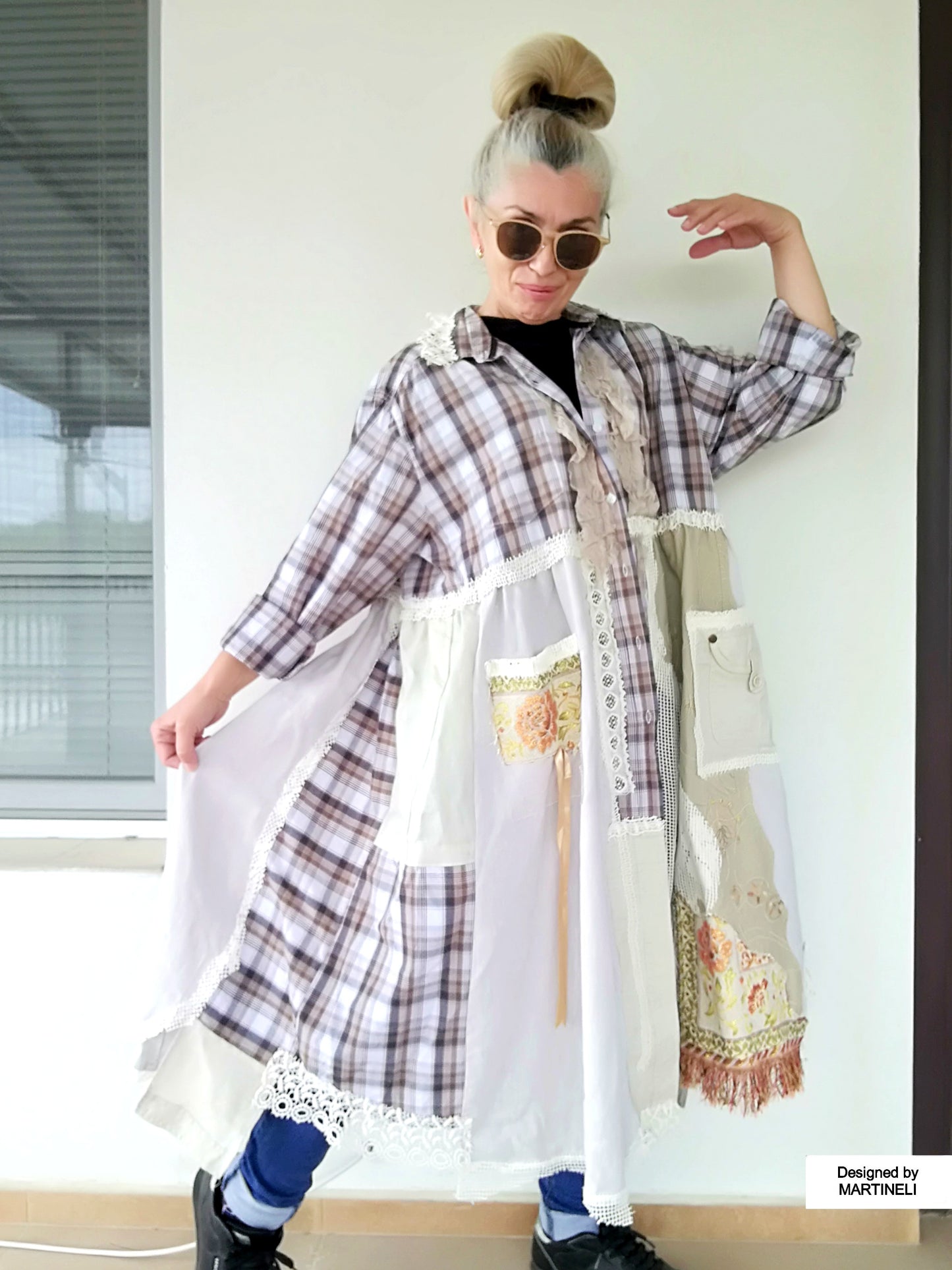 I used plaid cotton MAN SHIRT in beige nuances, linen in different nuances, floral tapestry, laces.