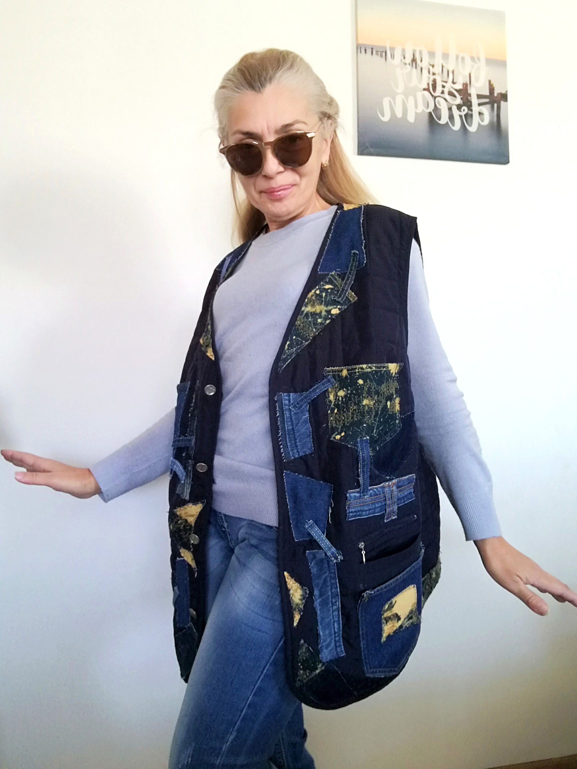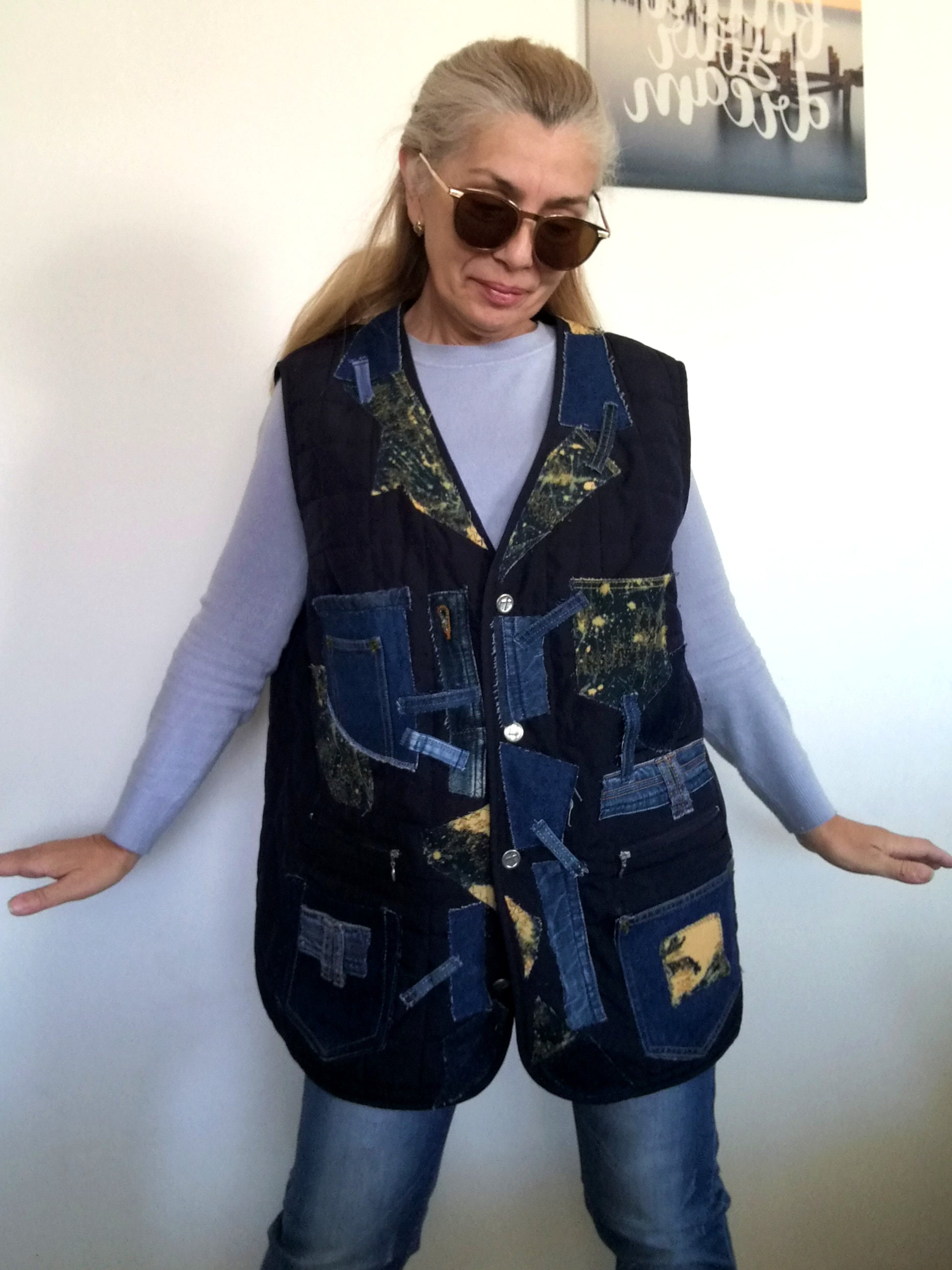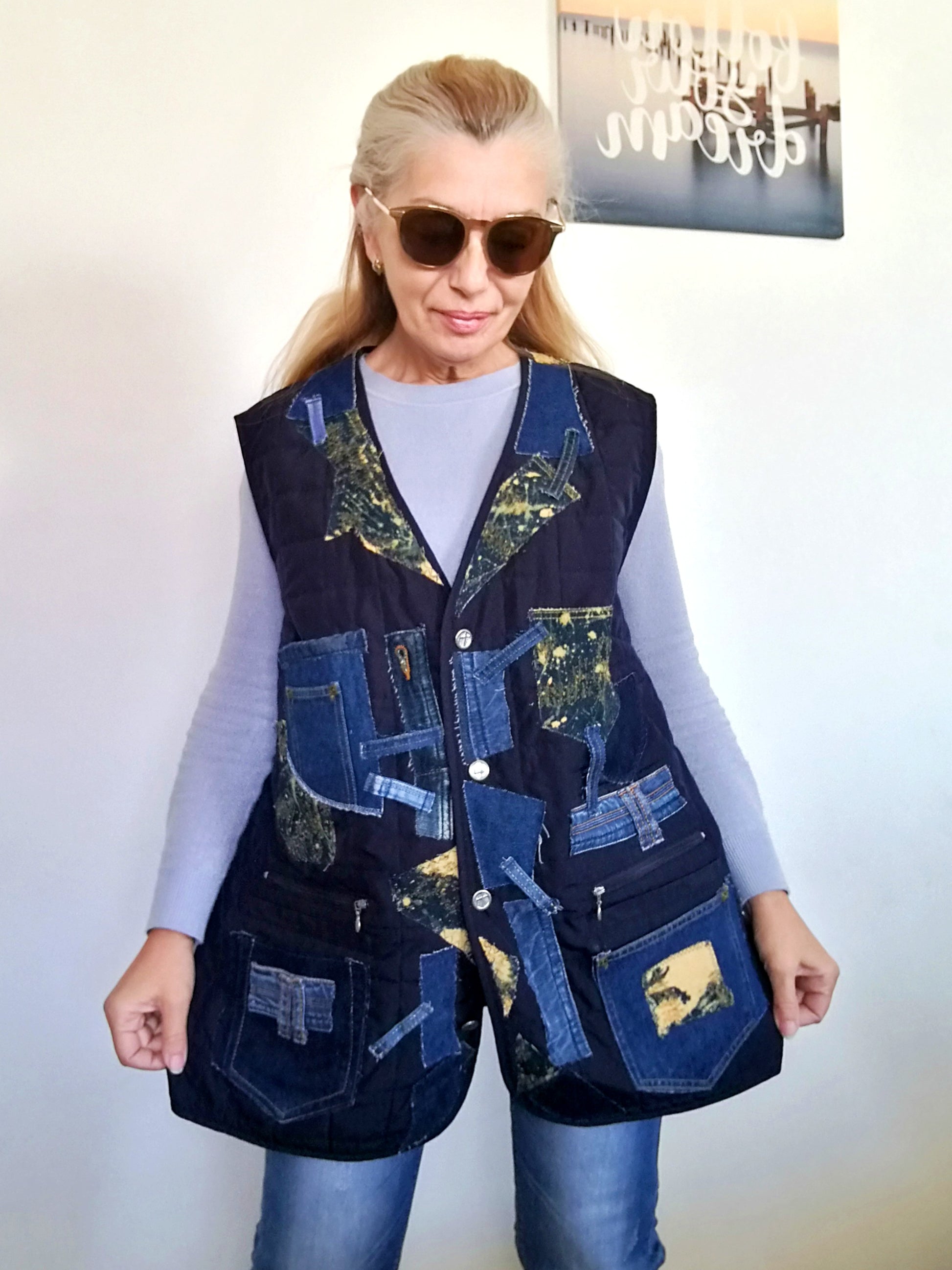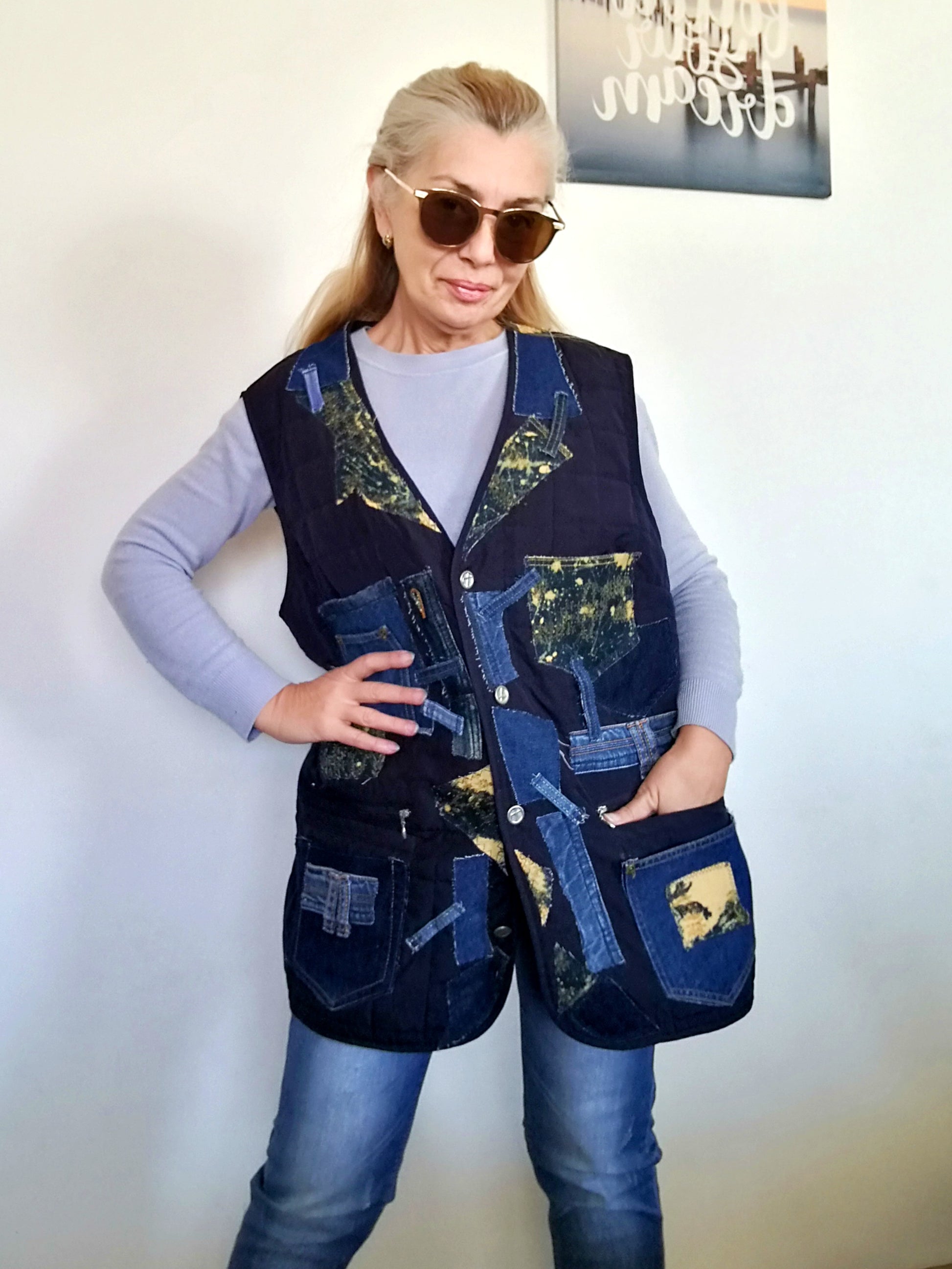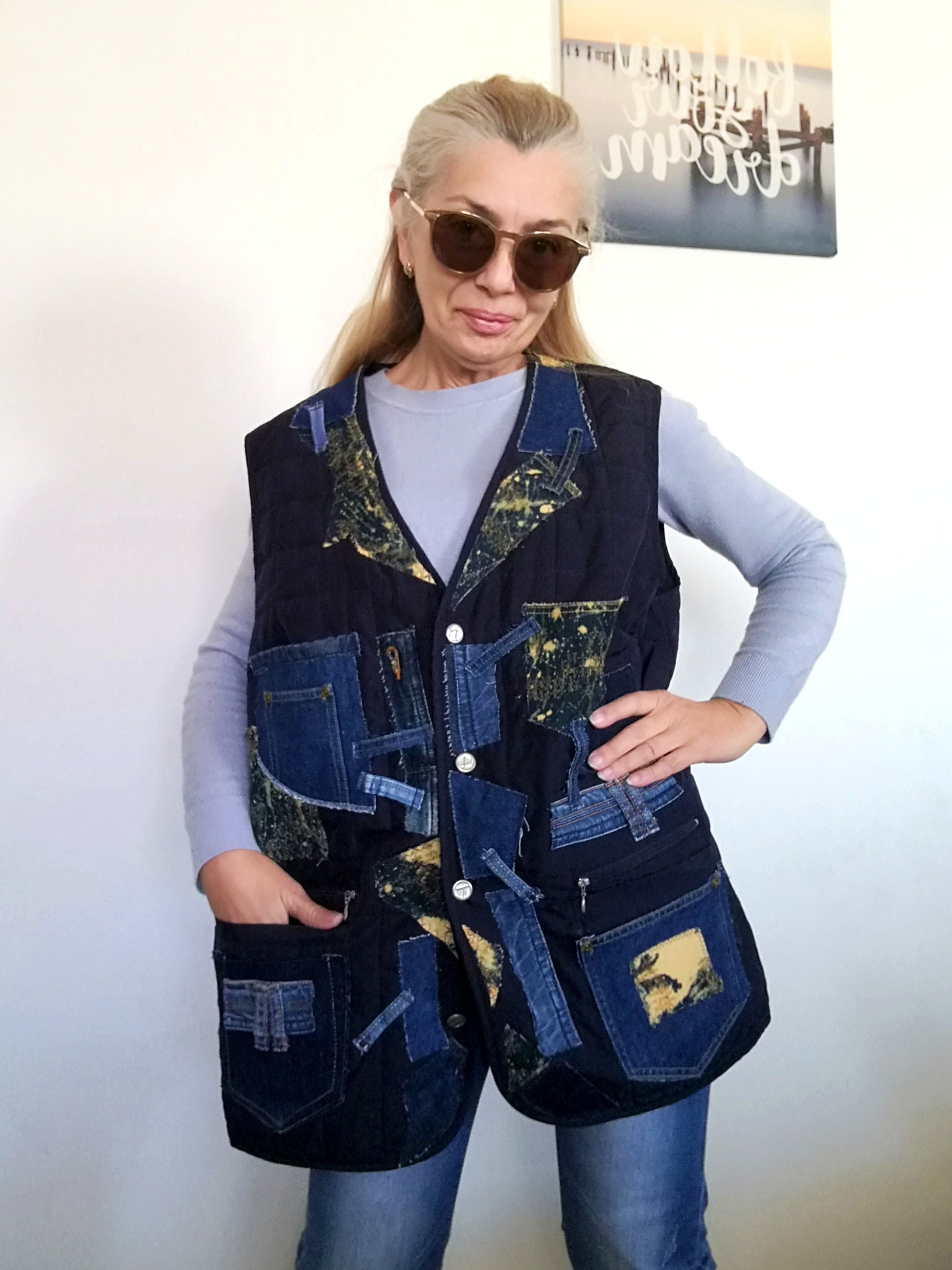 This patchwork denim vest is exclusive, one of a kind, because I don`t make more than one item. I offer special, unique items-only one is available for one special person!