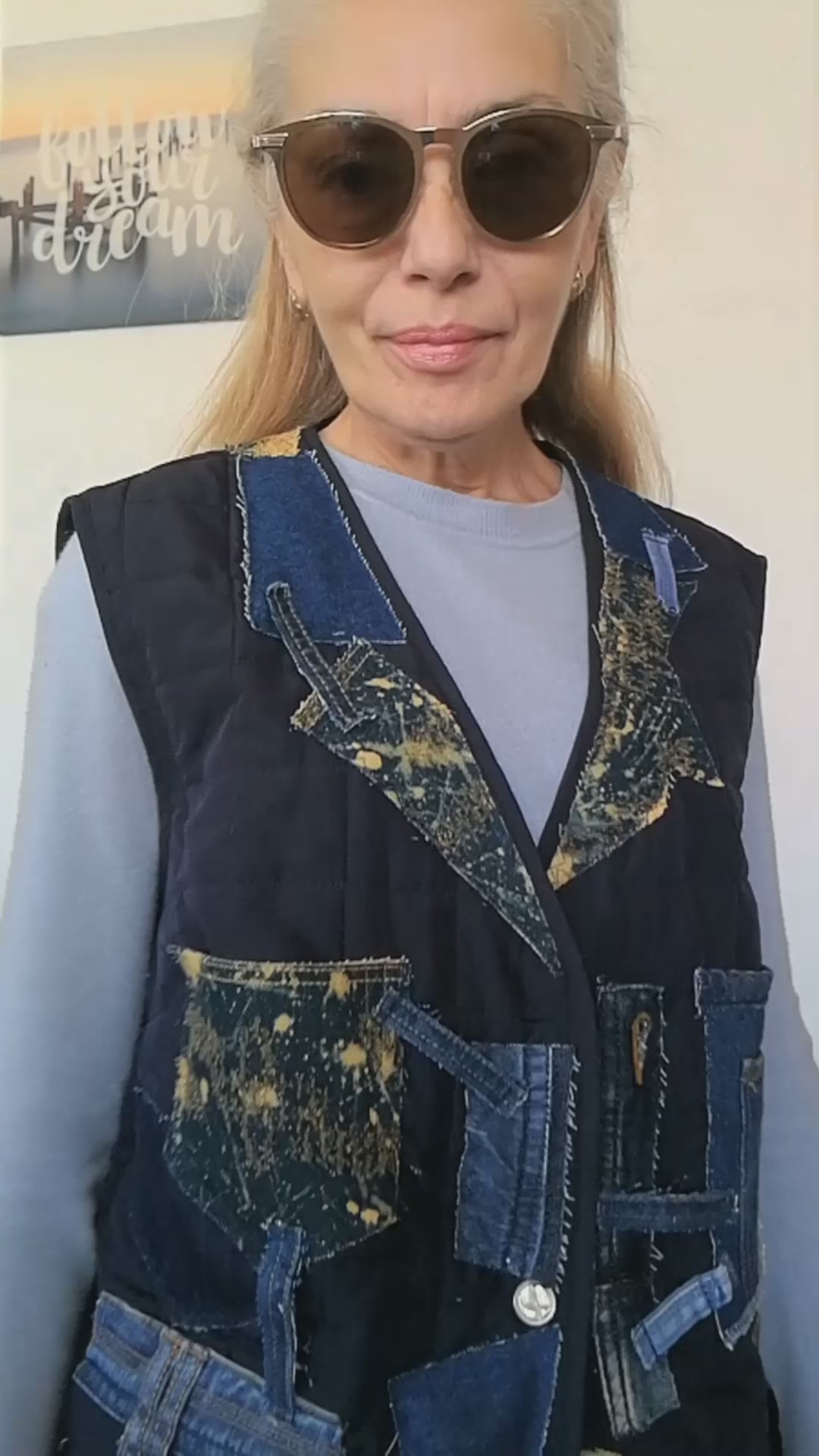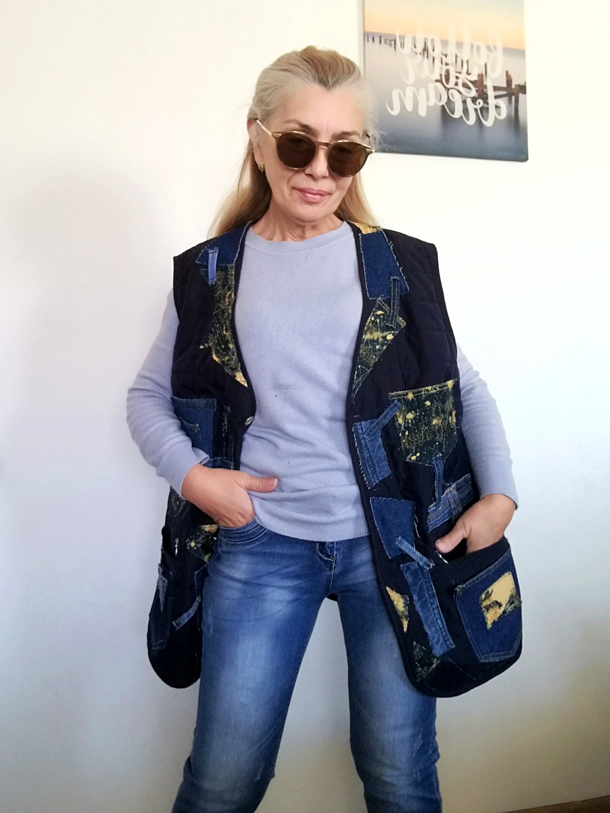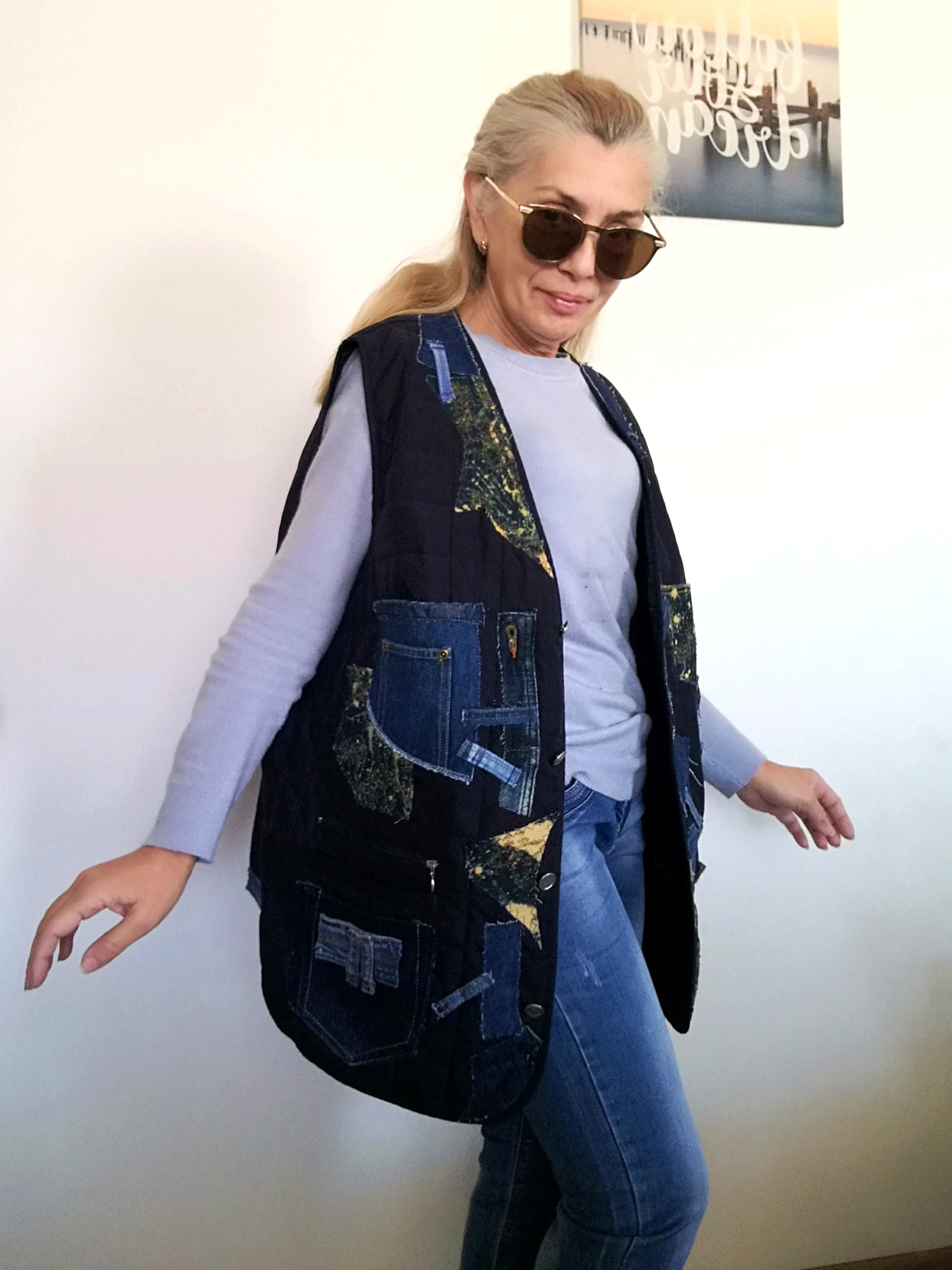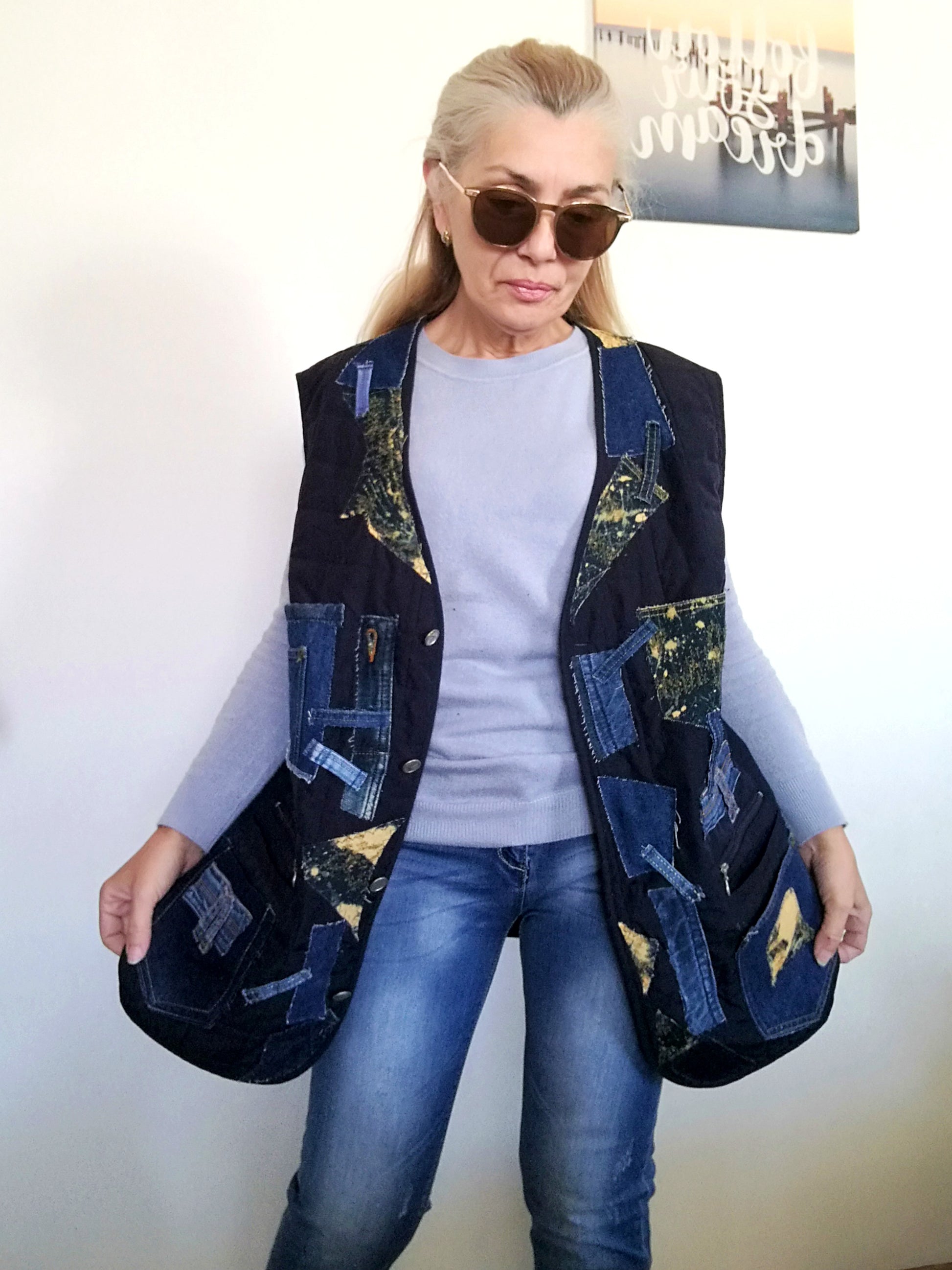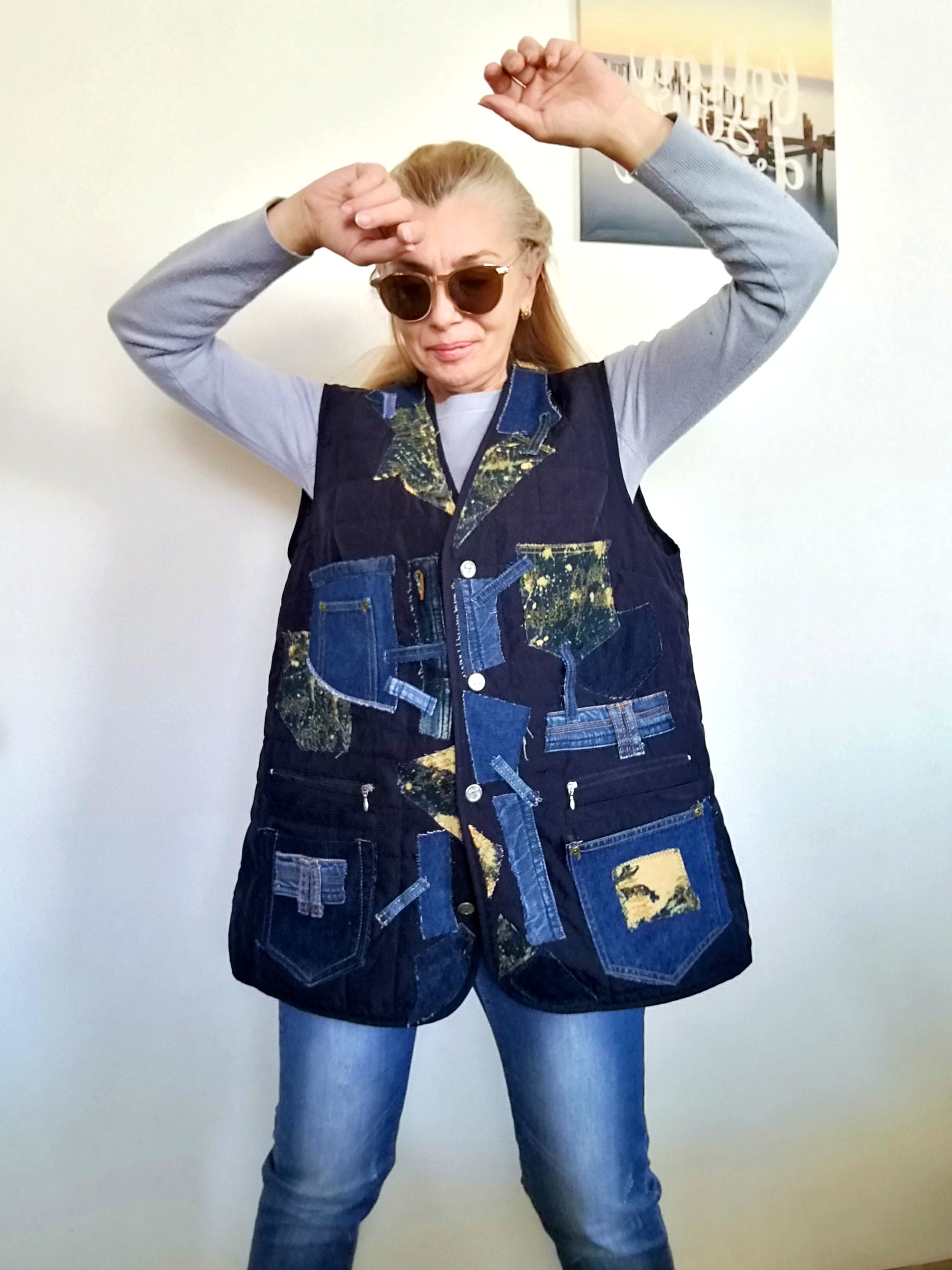 This patchwork denim vest is exclusive, one of a kind, because I don`t make more than one item. I offer special, unique items-only one is available for one special person!