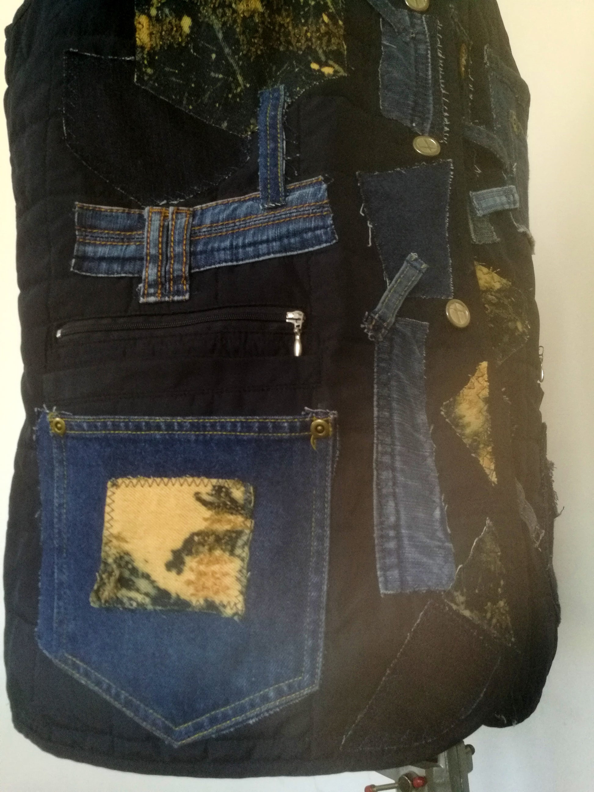 I designed and constructed this Plus Size XL/2XL patchwork jacket/ vest.
