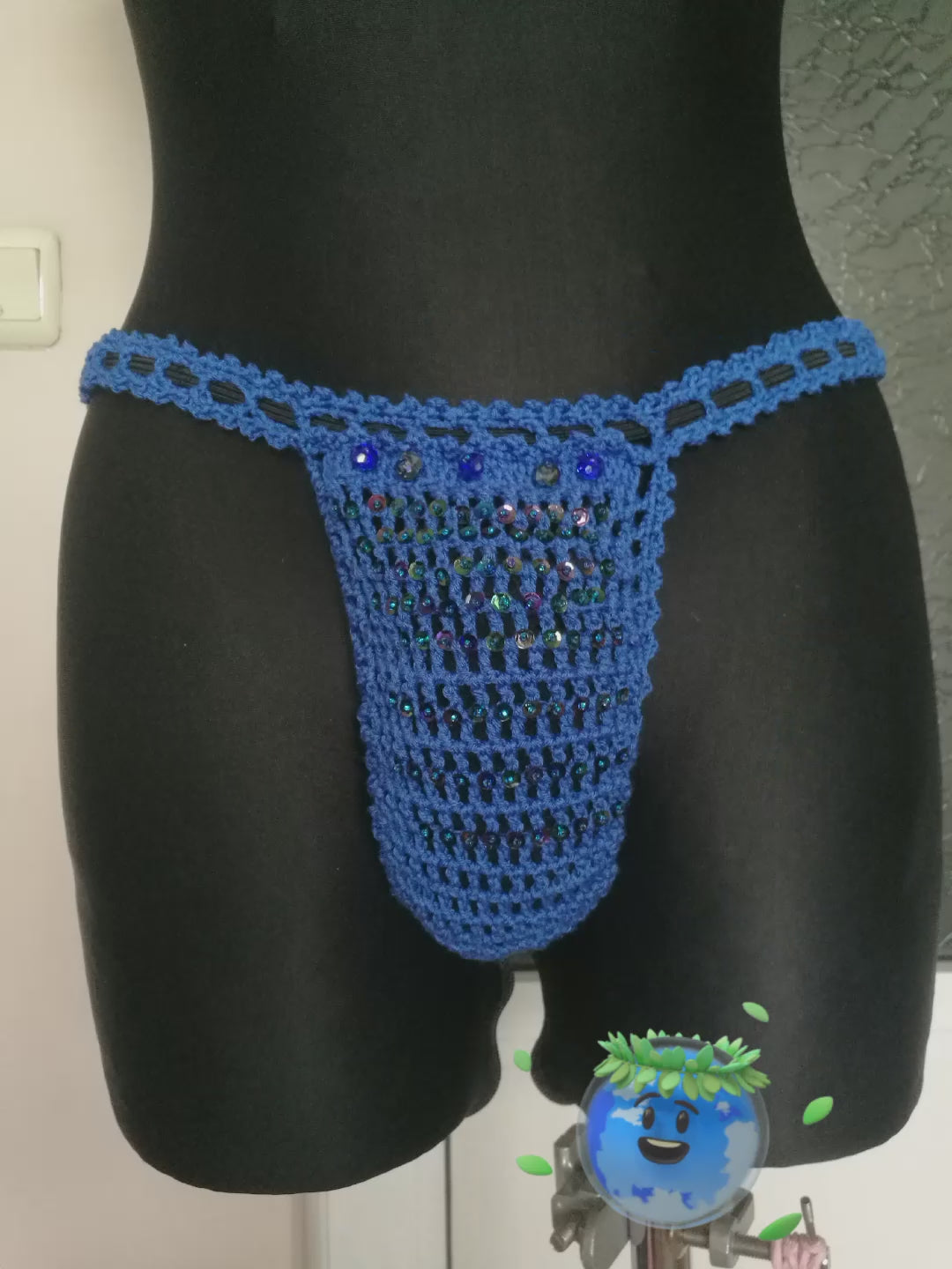 I designed and constructed this XL BLUE CROCHET SEXY MAN THONG.
