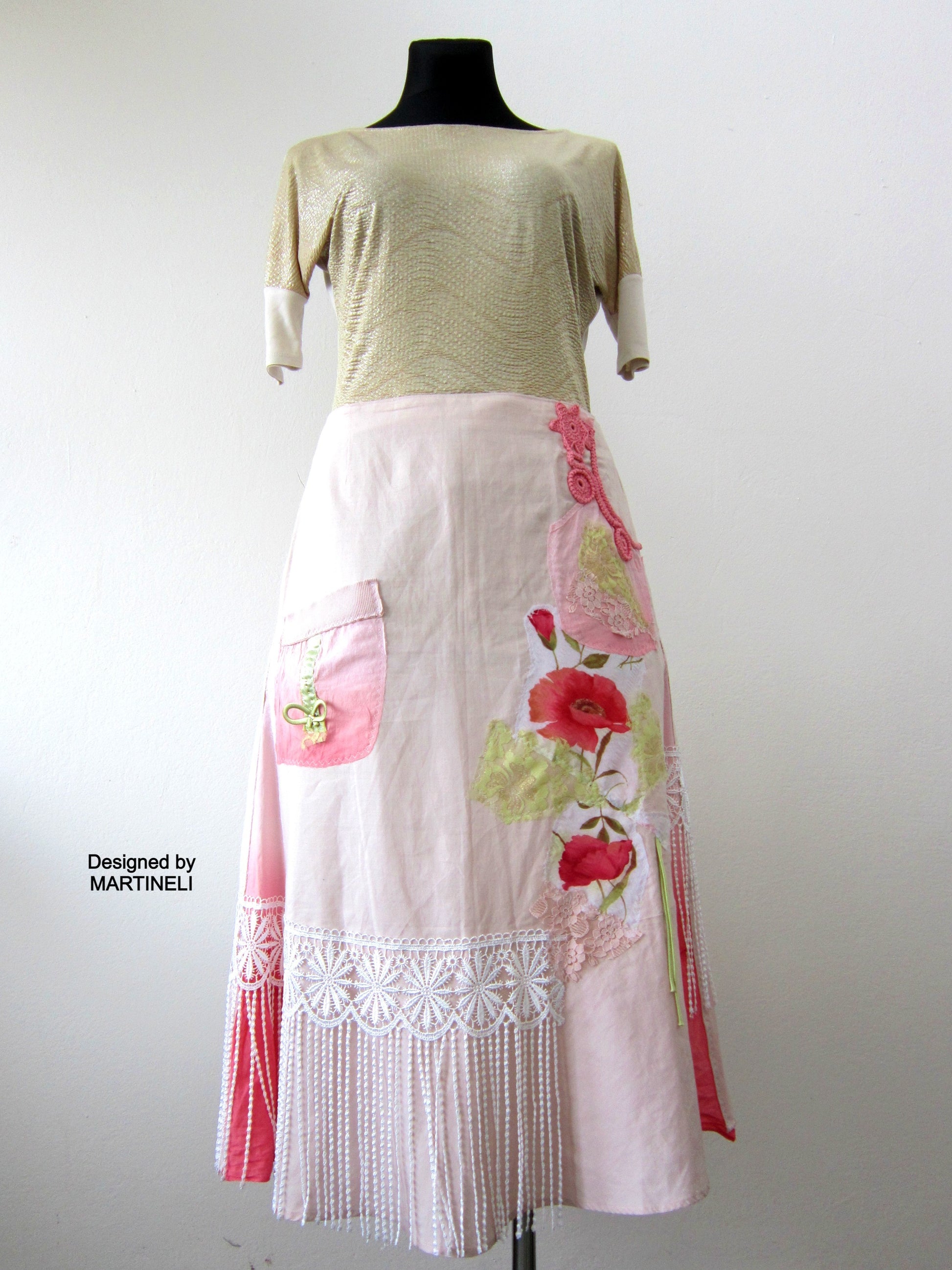 This patchwork embroidered skirt is exclusive,one of a kind,because I don`t make more than one item.I offer special,unique items-only one is available for one special person!