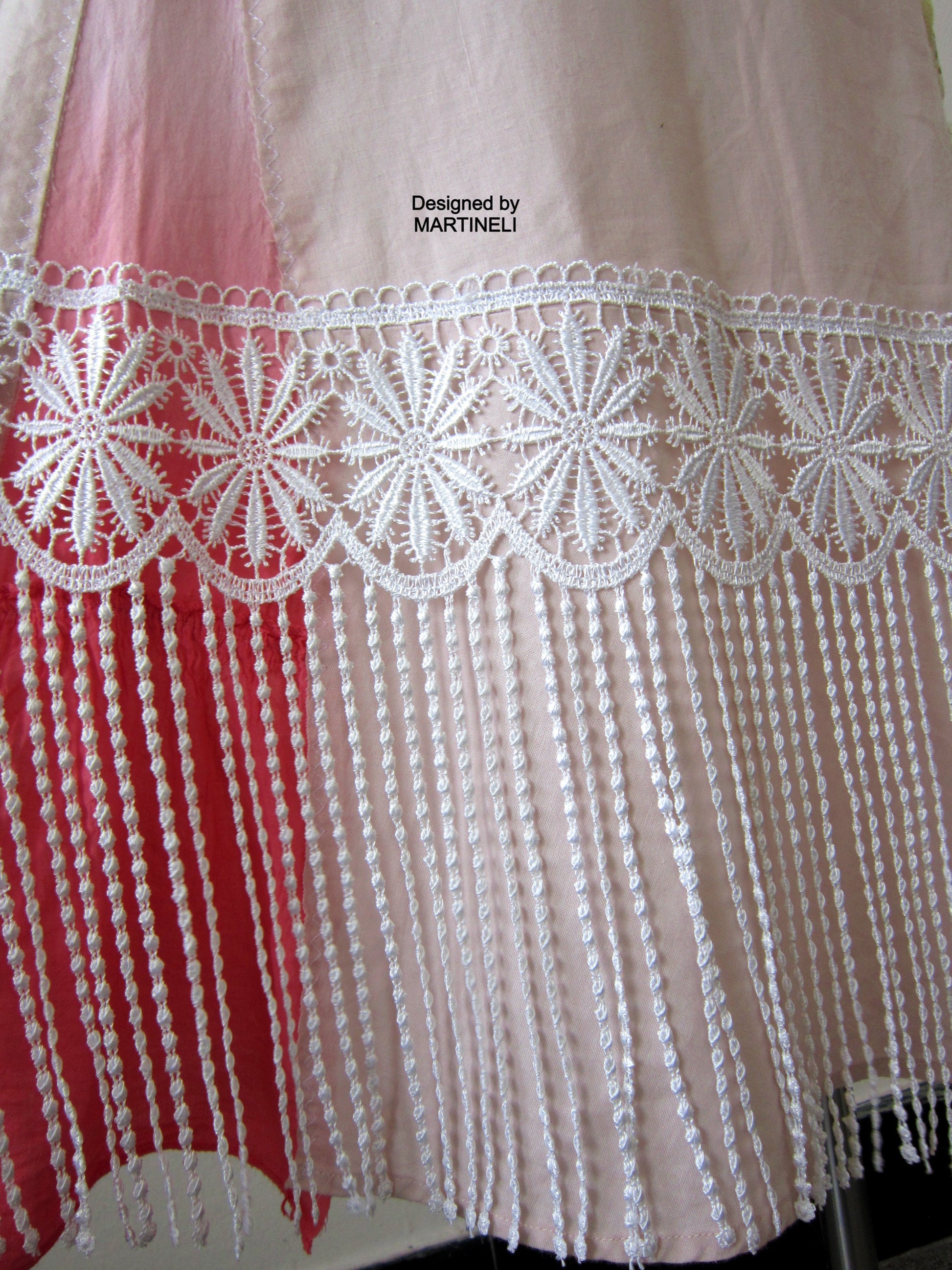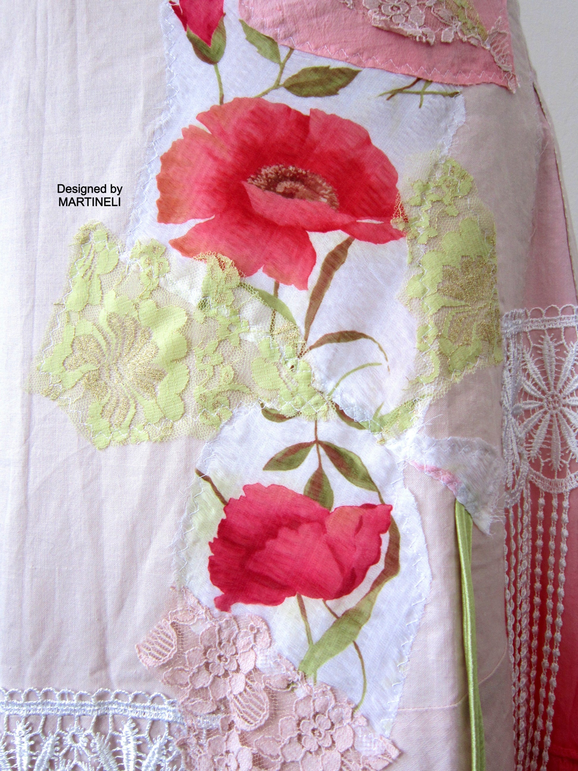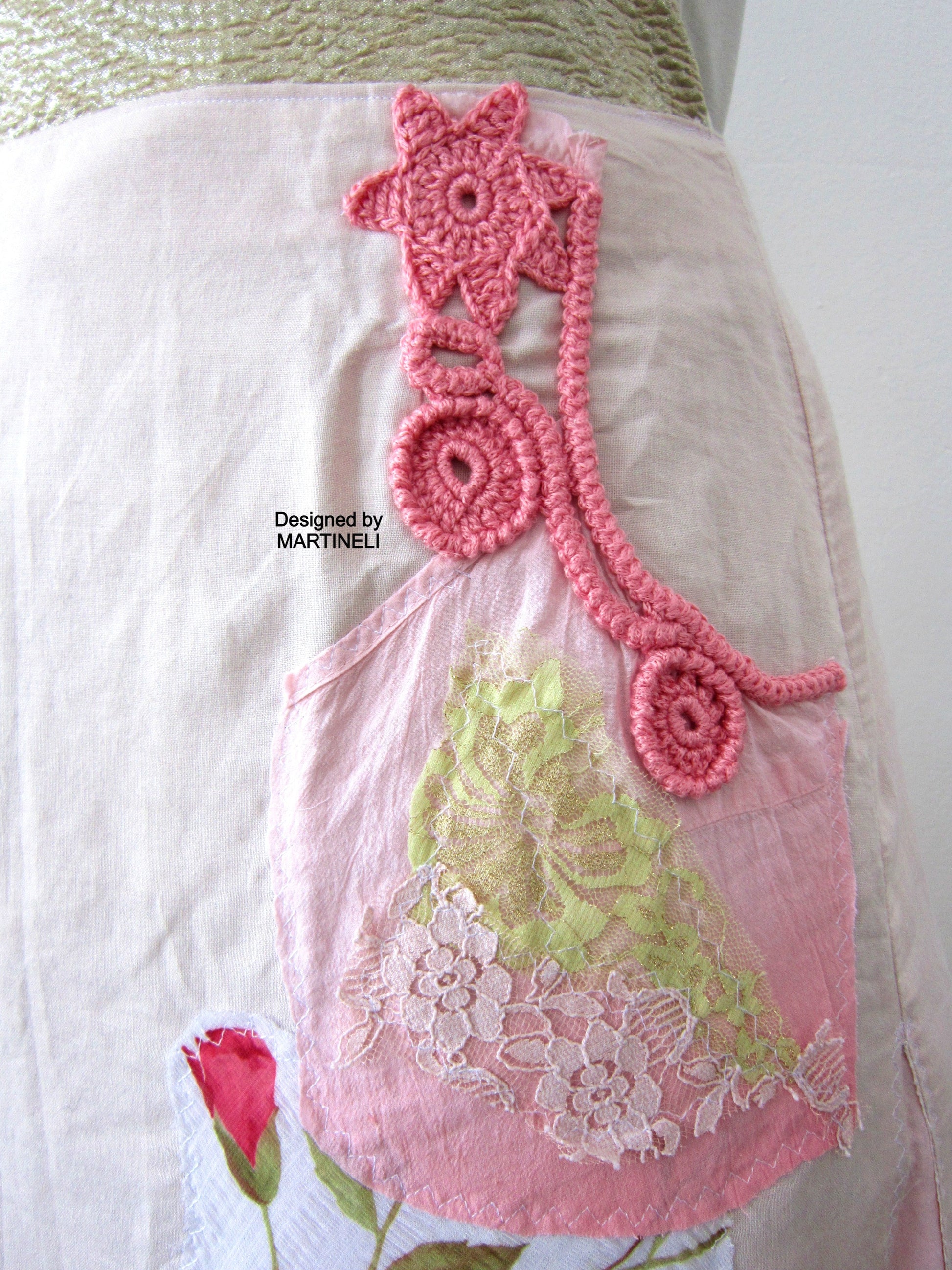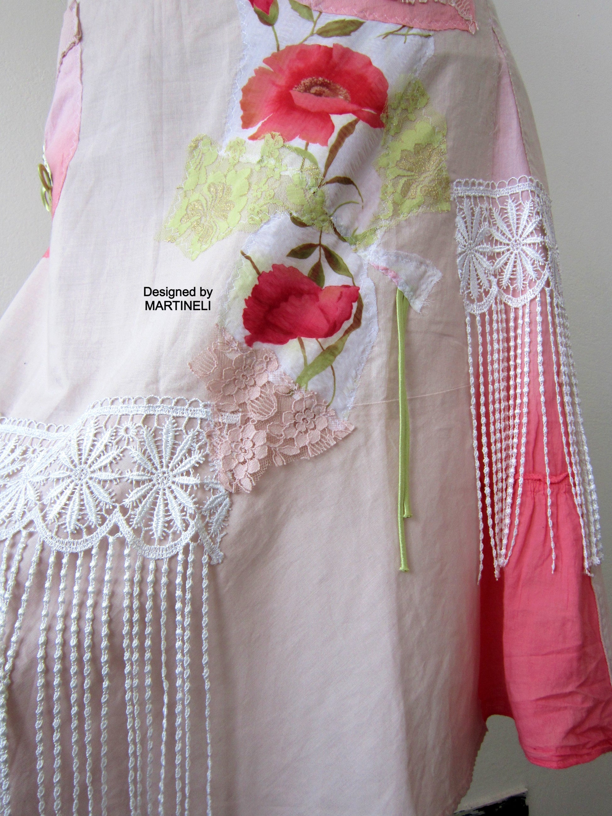 I used very light beige cotton, flower print chiffon,hand crochet vintage lace, laces and silk fringe embellishments.