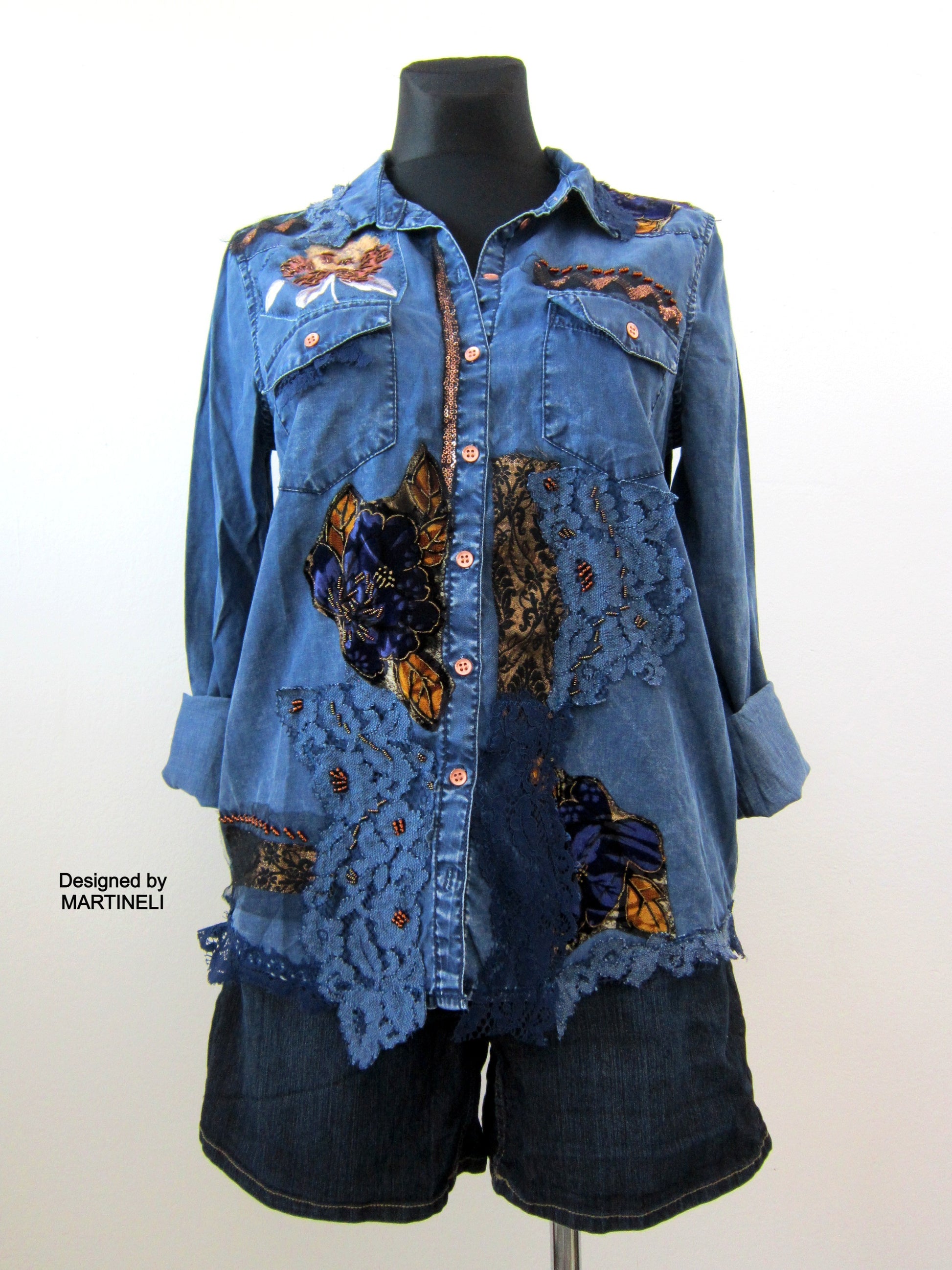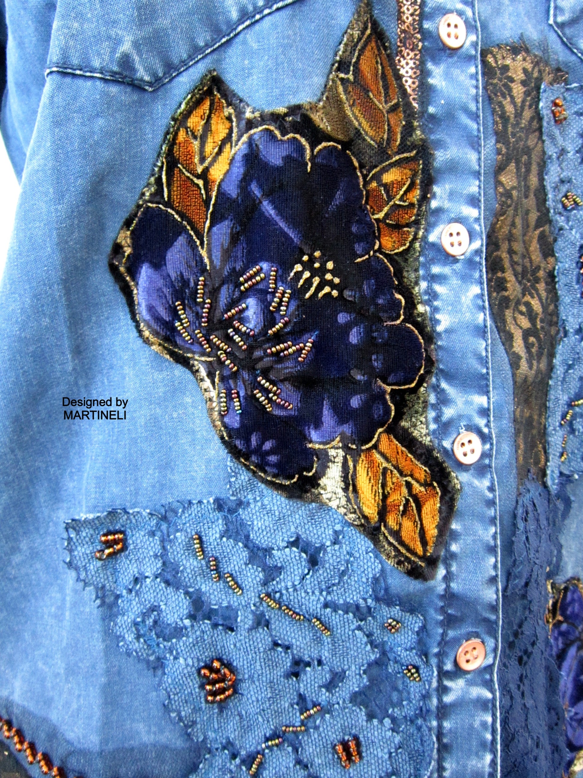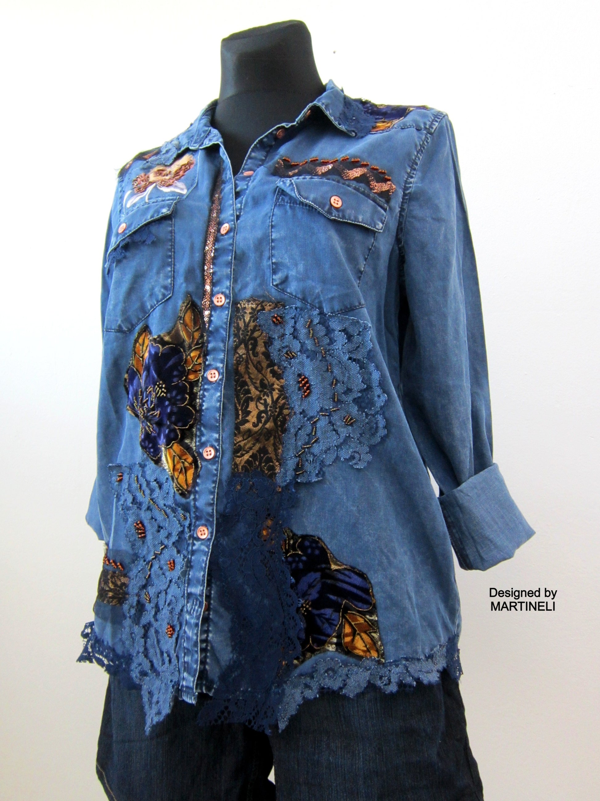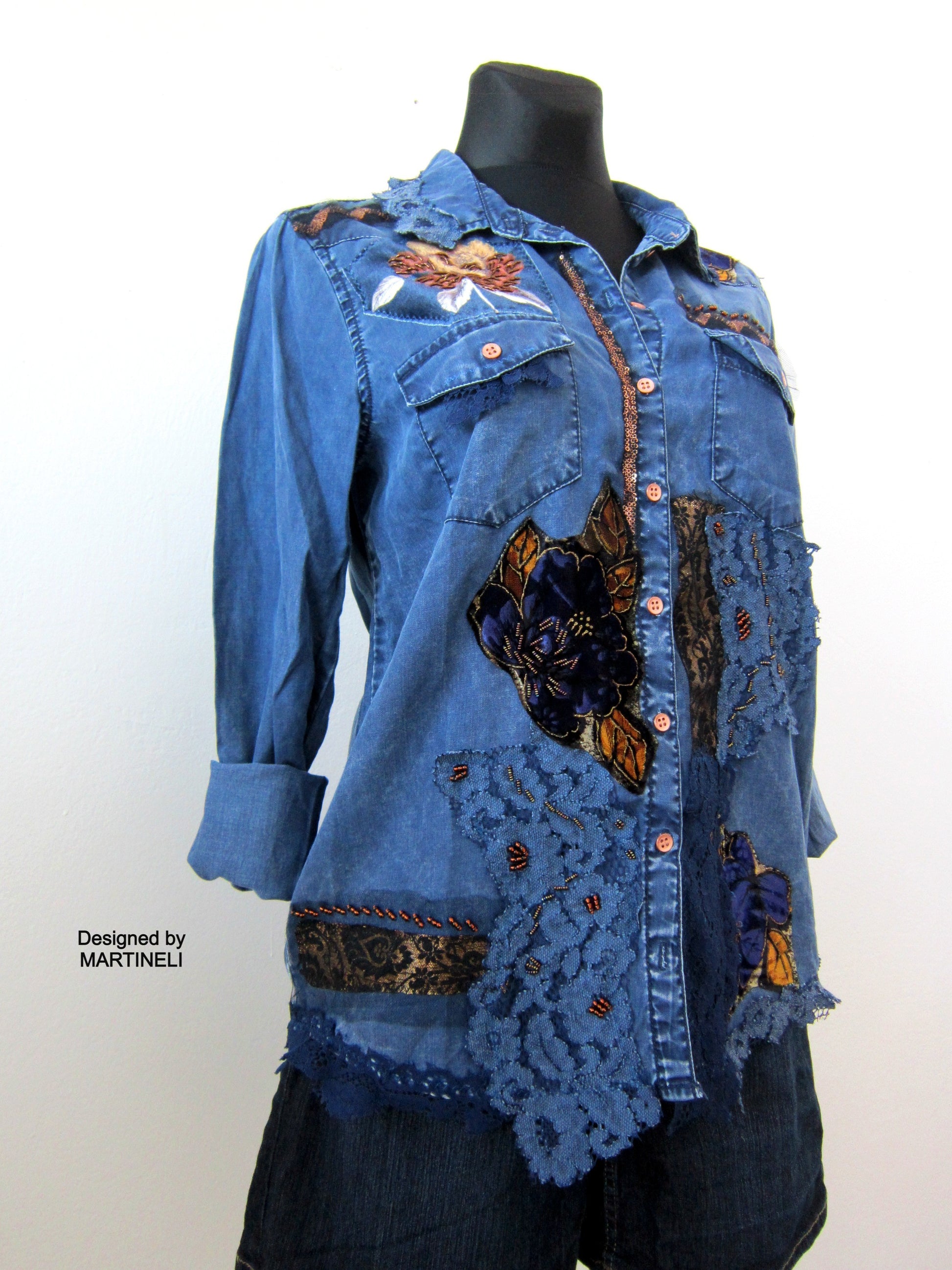 This embroidered denim shirt is exclusive,one of a kind,because I don`t make more than one item.I offer special,unique items-only one is available for one special person!