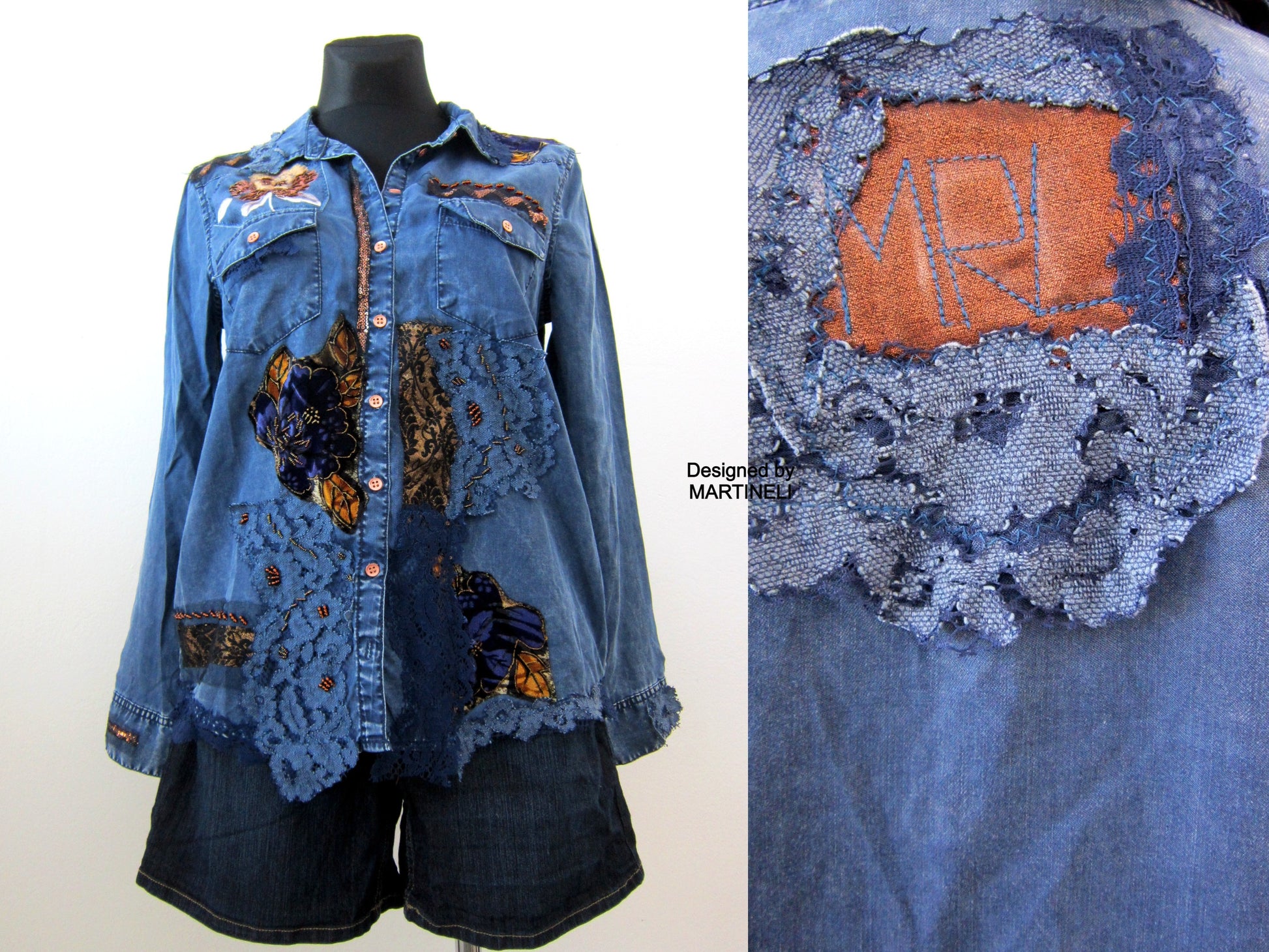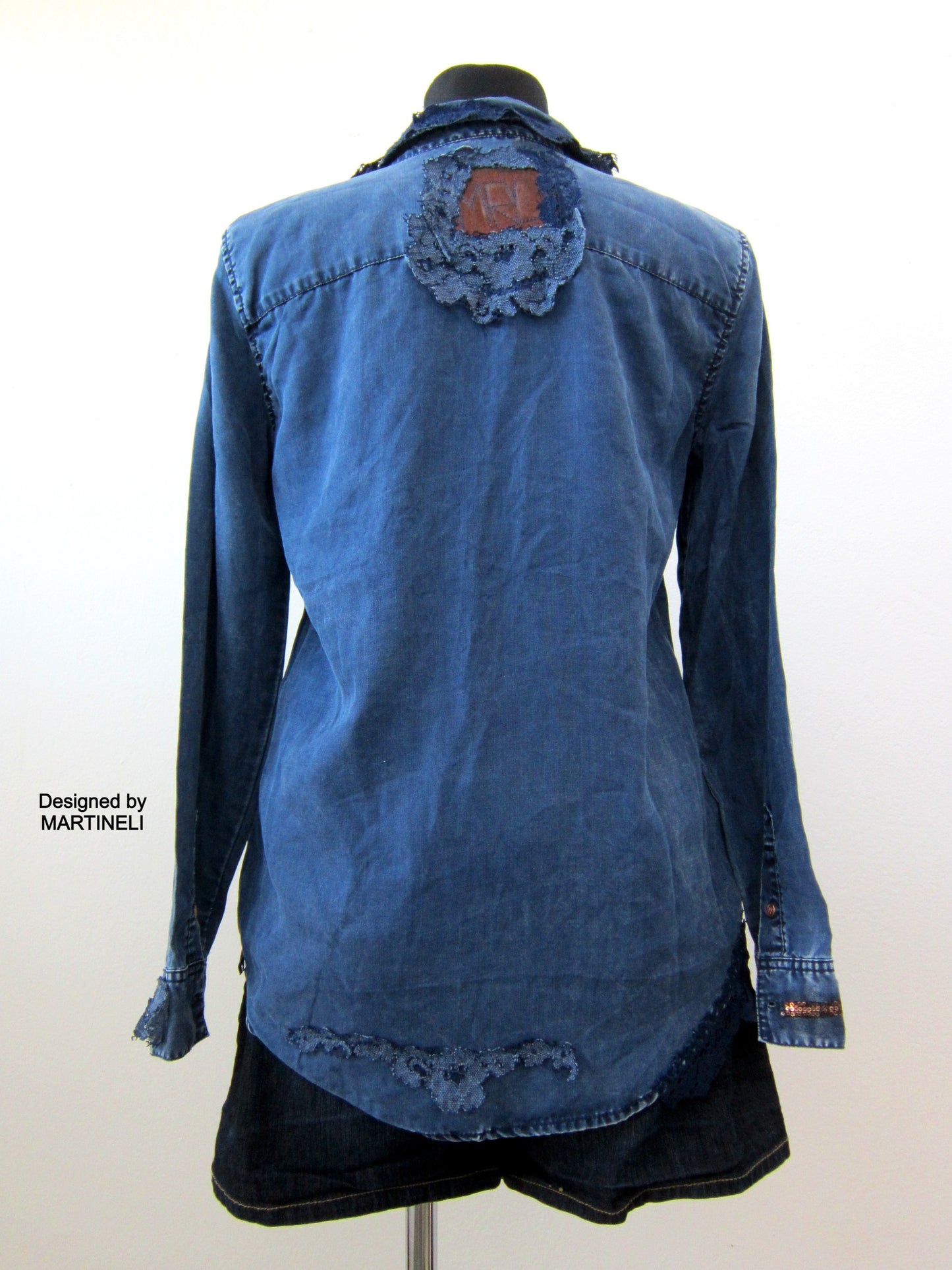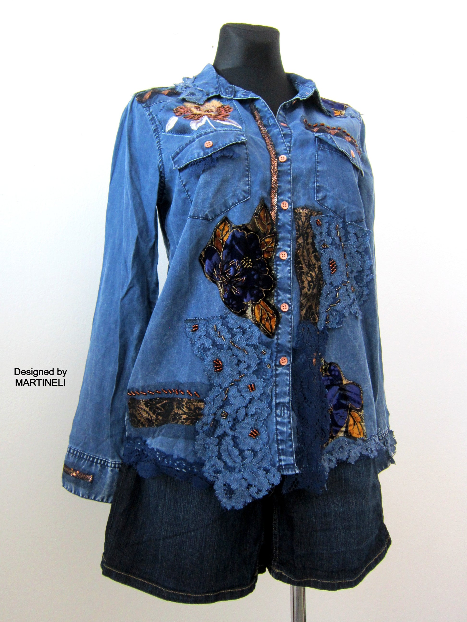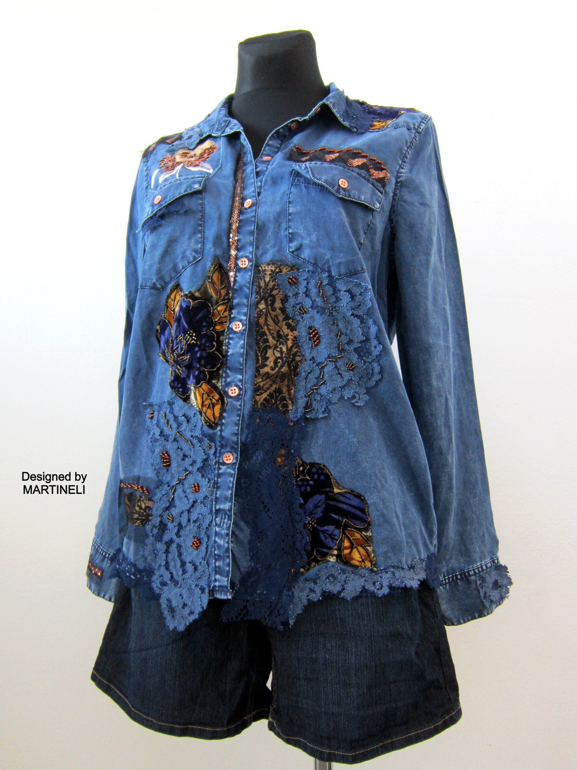 This embroidered denim shirt is exclusive,one of a kind,because I don`t make more than one item.I offer special,unique items-only one is available for one special person!