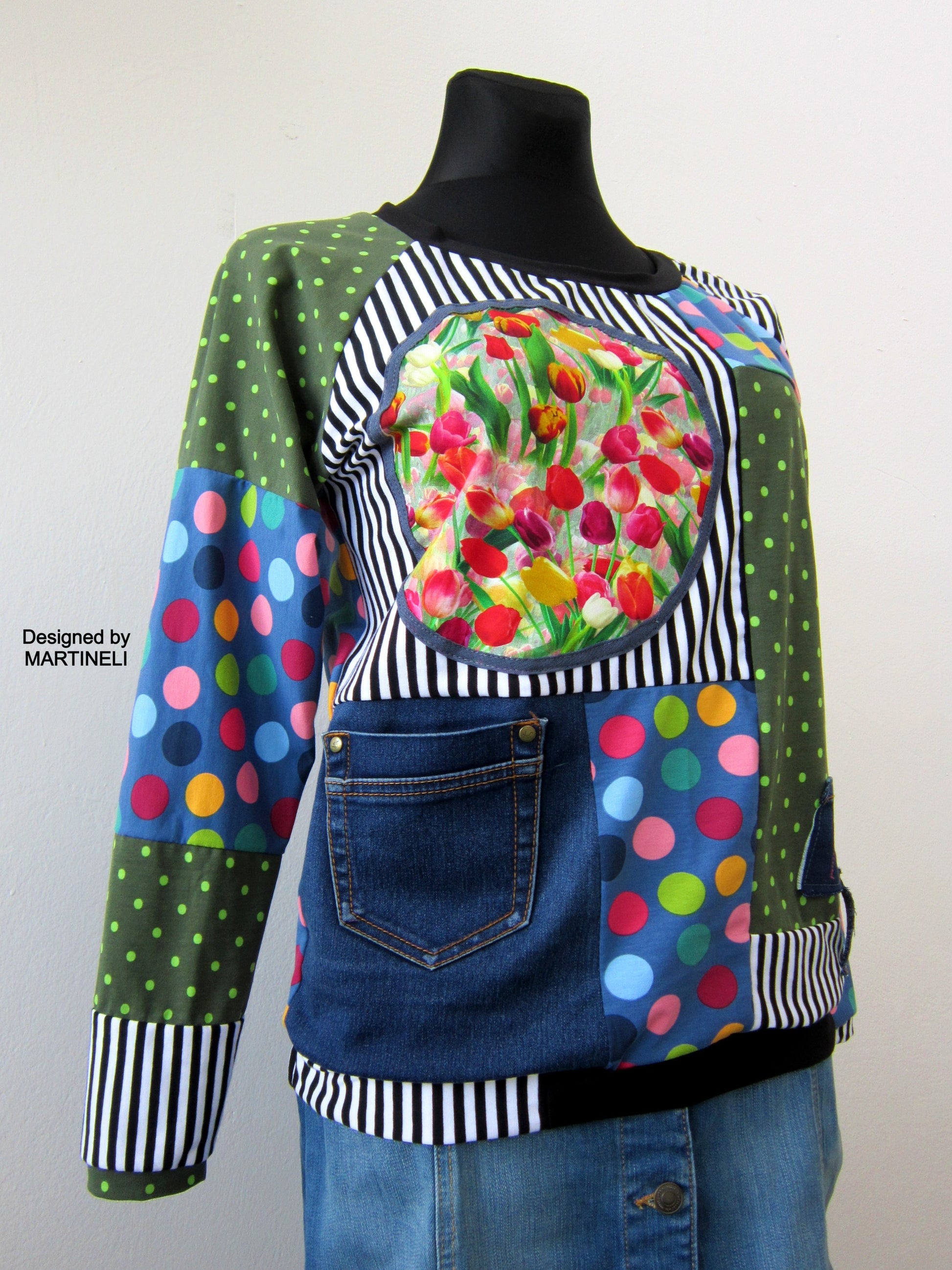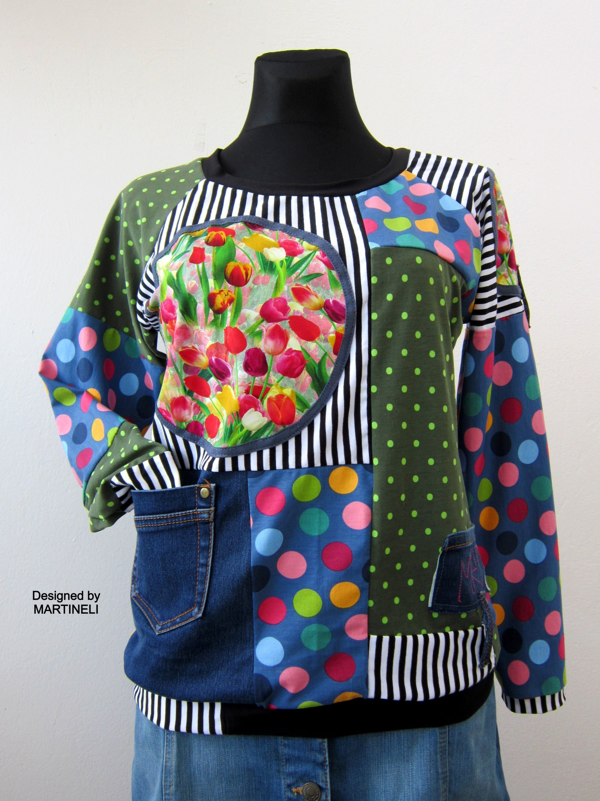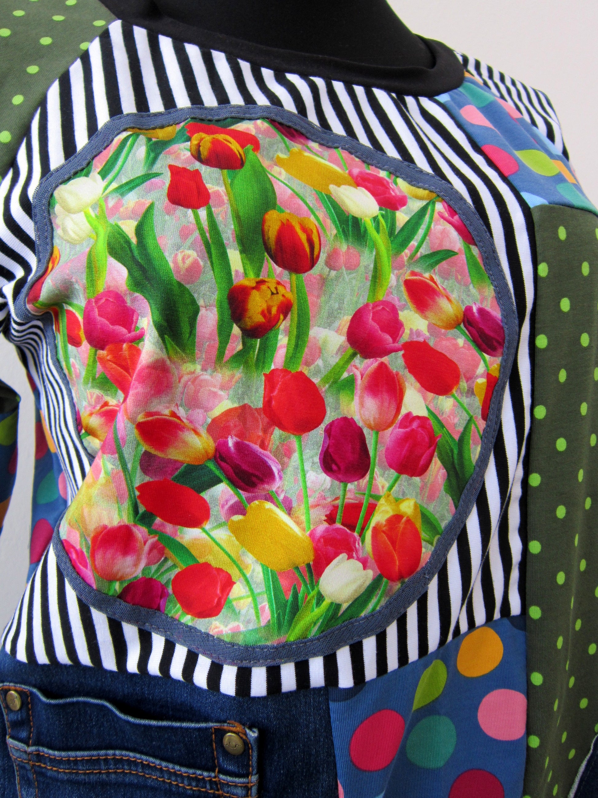 This floral top is exclusive,one of a kind,because I don`t make more than one item.I offer special,unique items-only one is available for one special person!