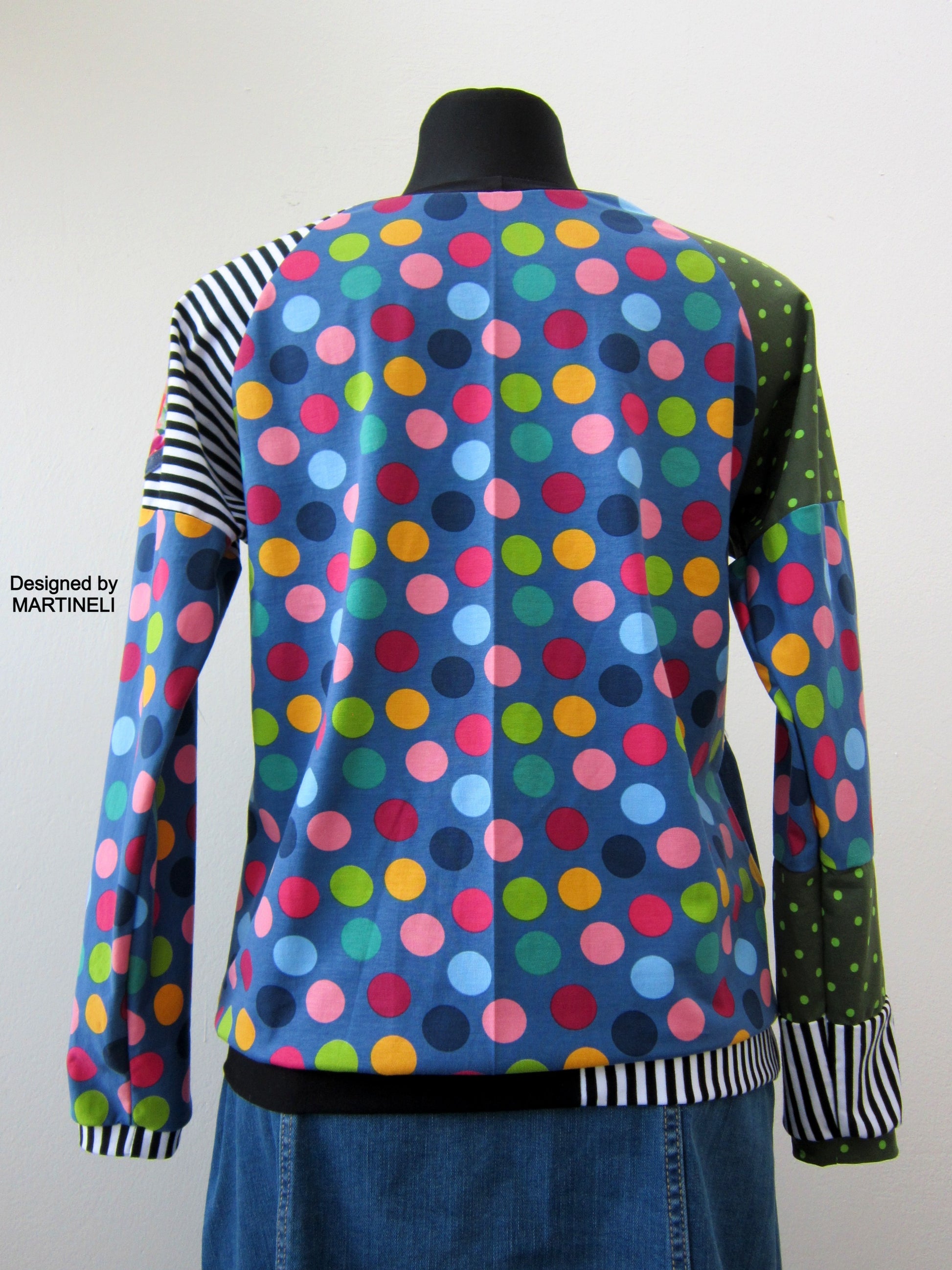 I designed and constructed this M patchwork cotton top.