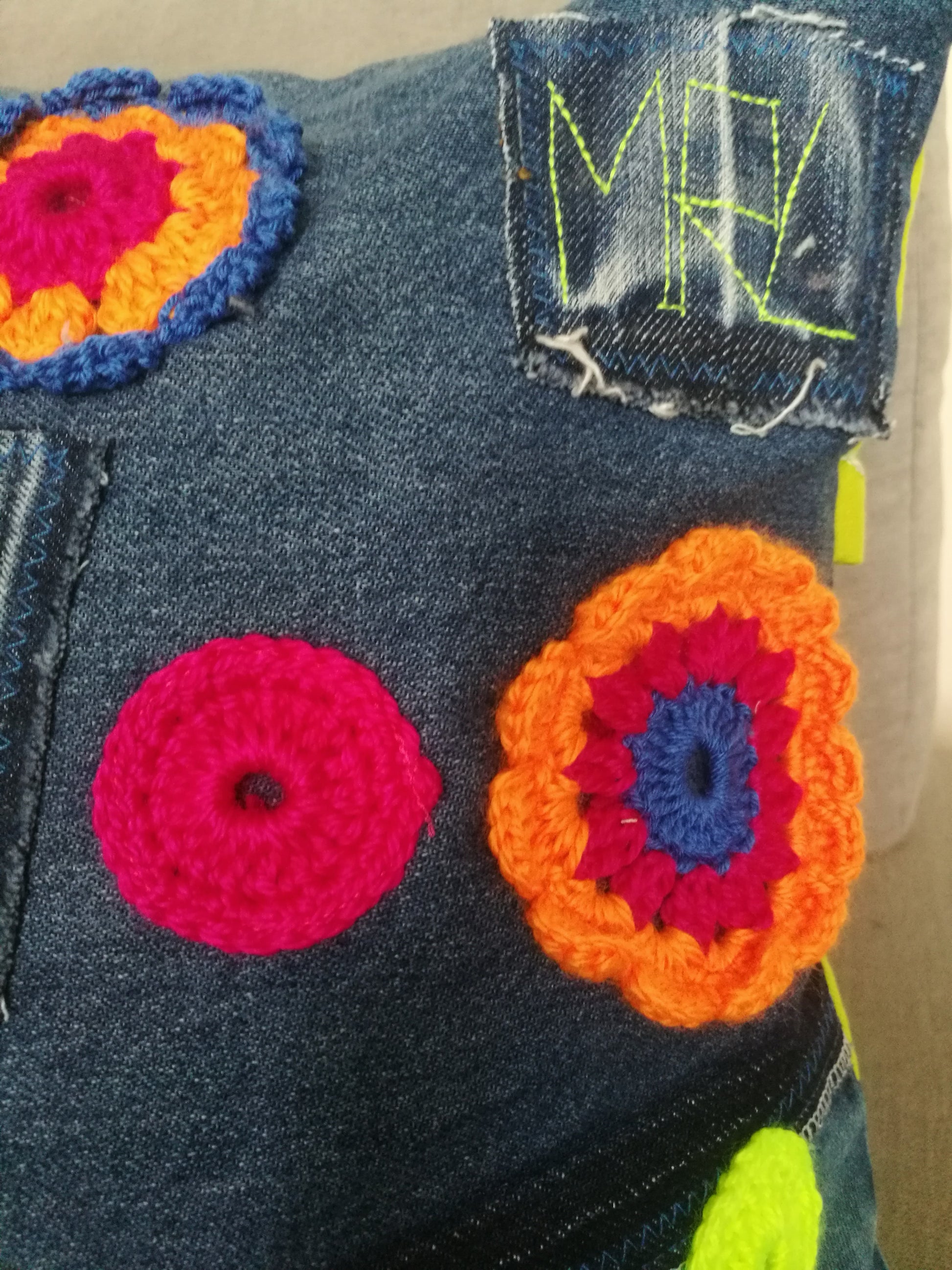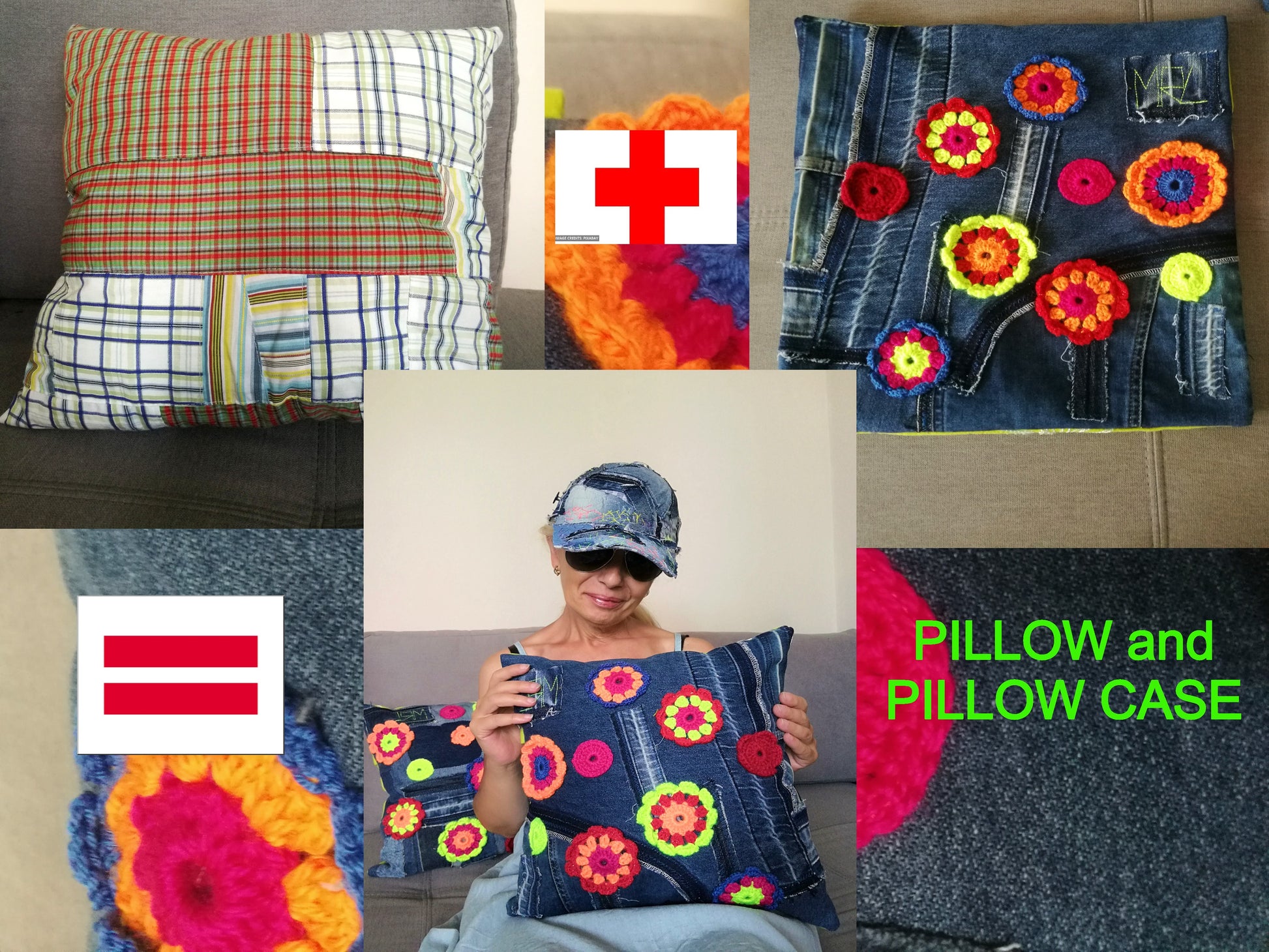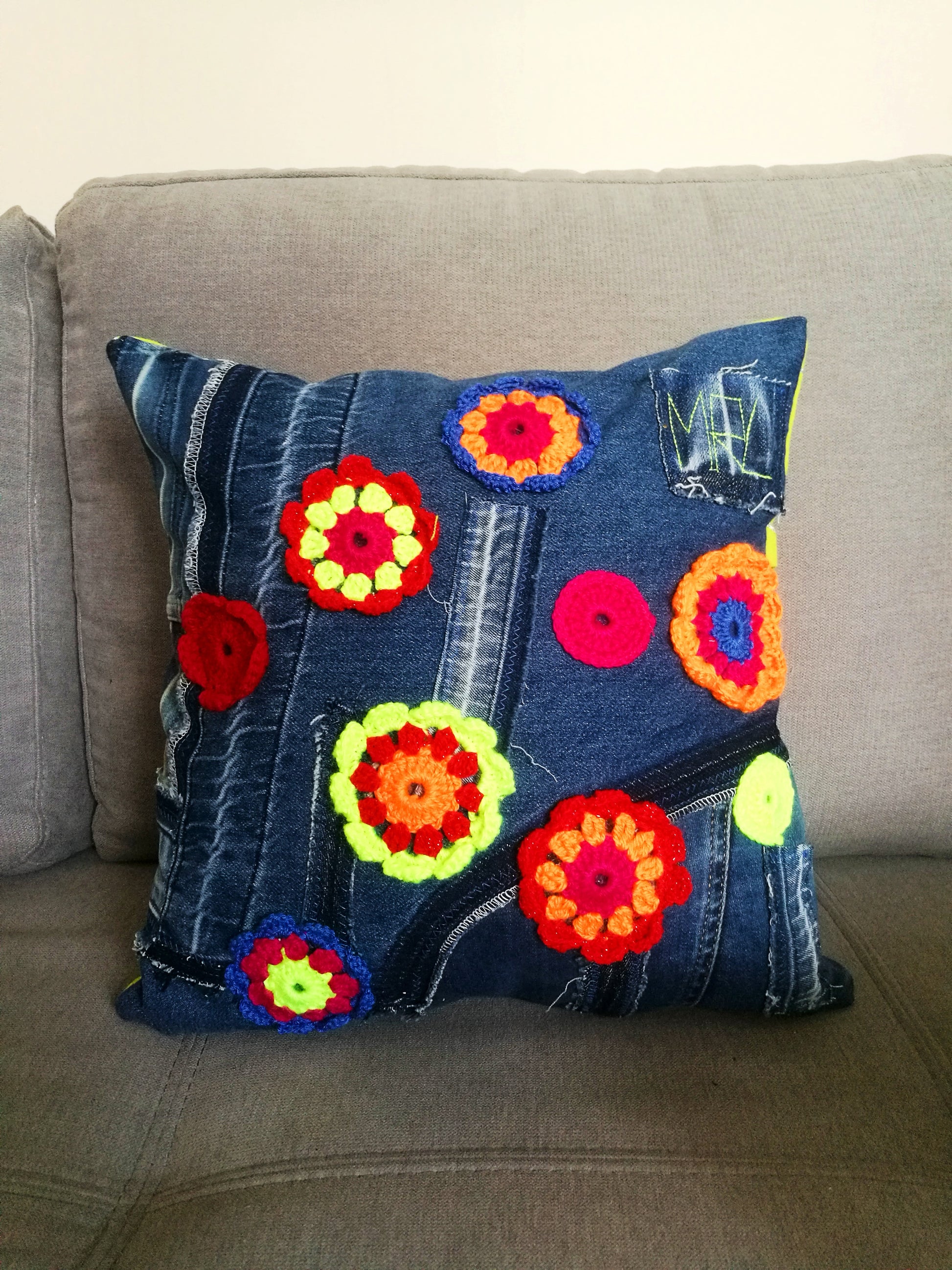 I designed and constructed this PATCHWORK DENIM PILLOW CASE + STUFFED PILLOW.