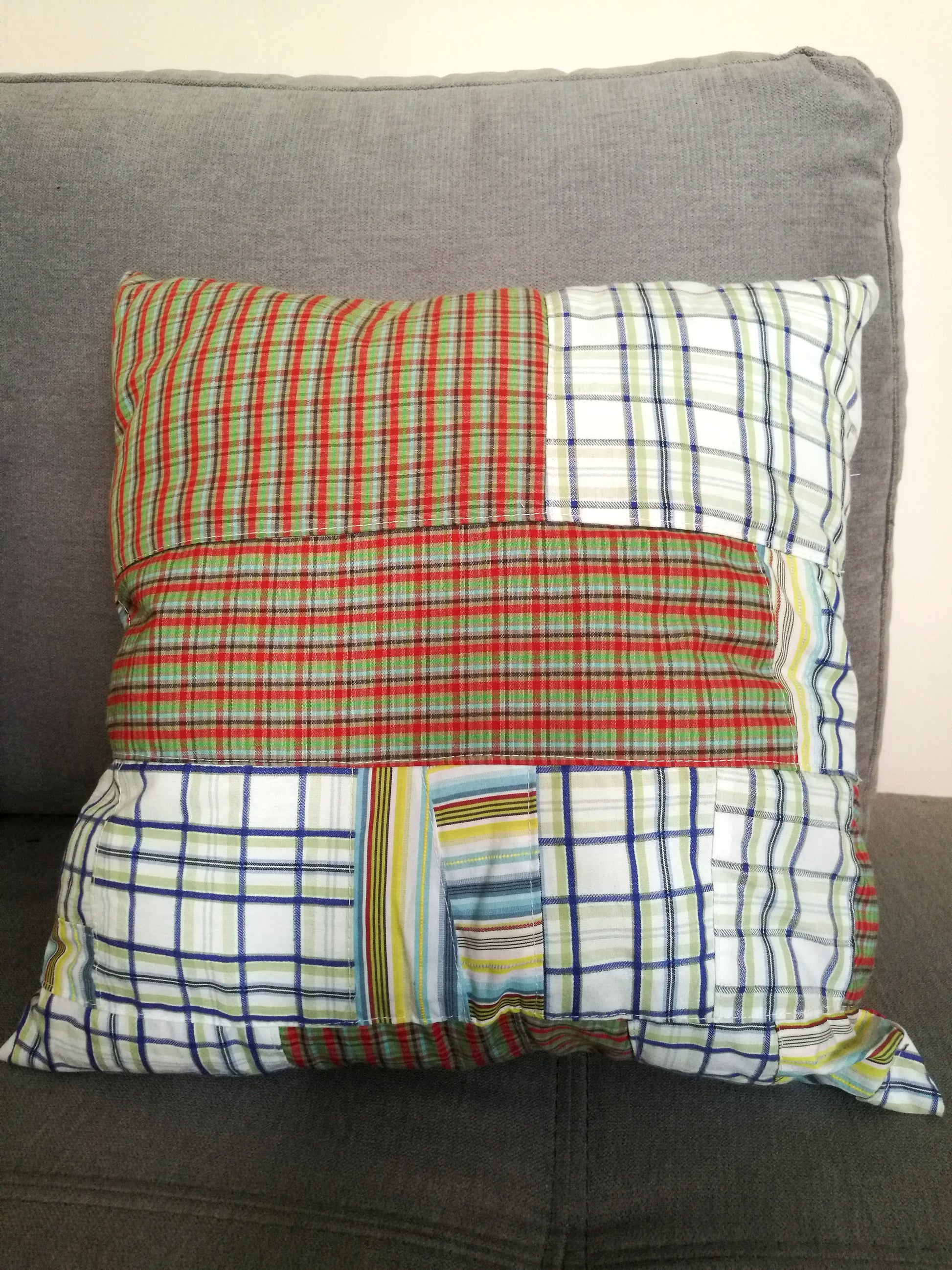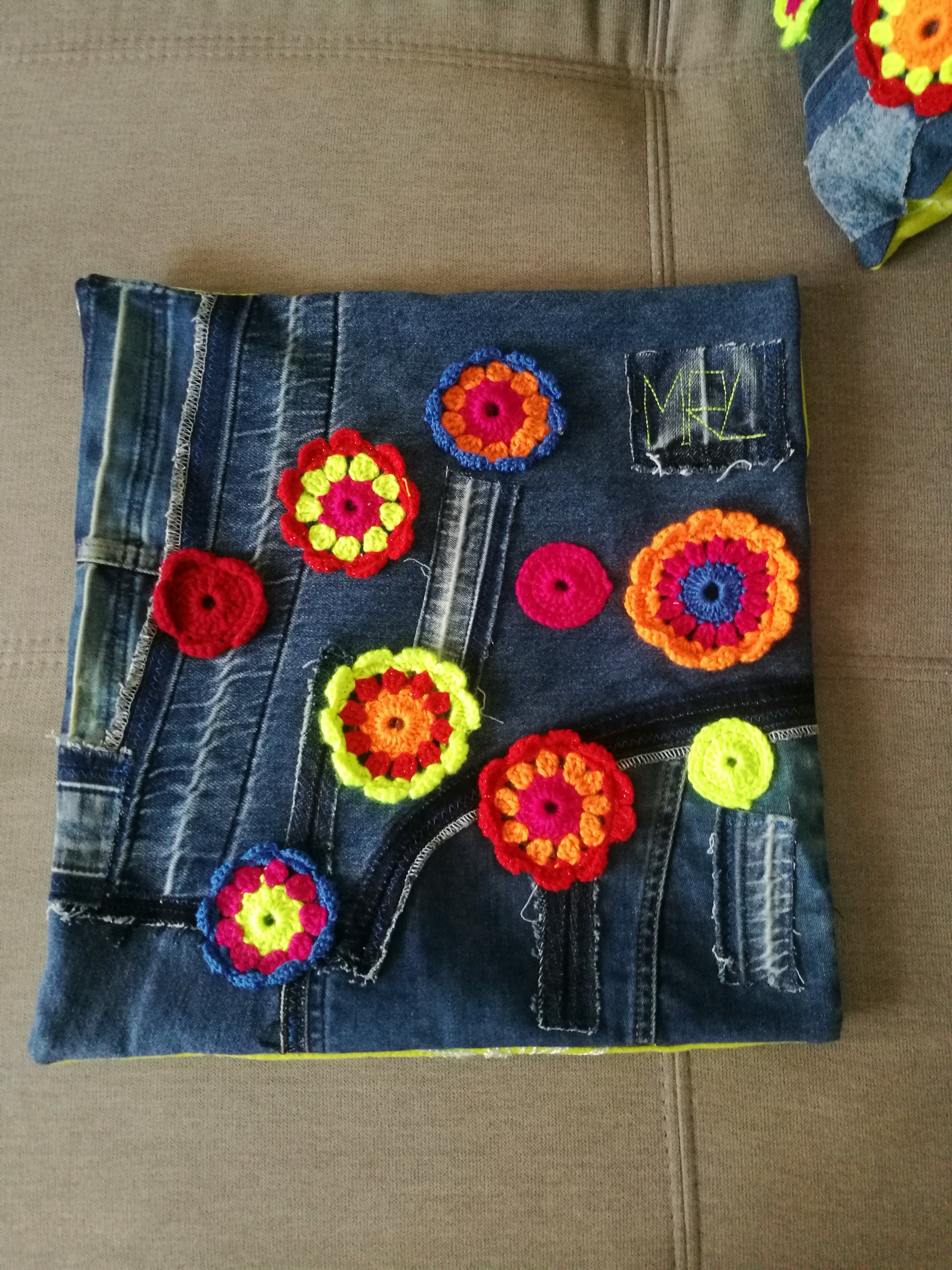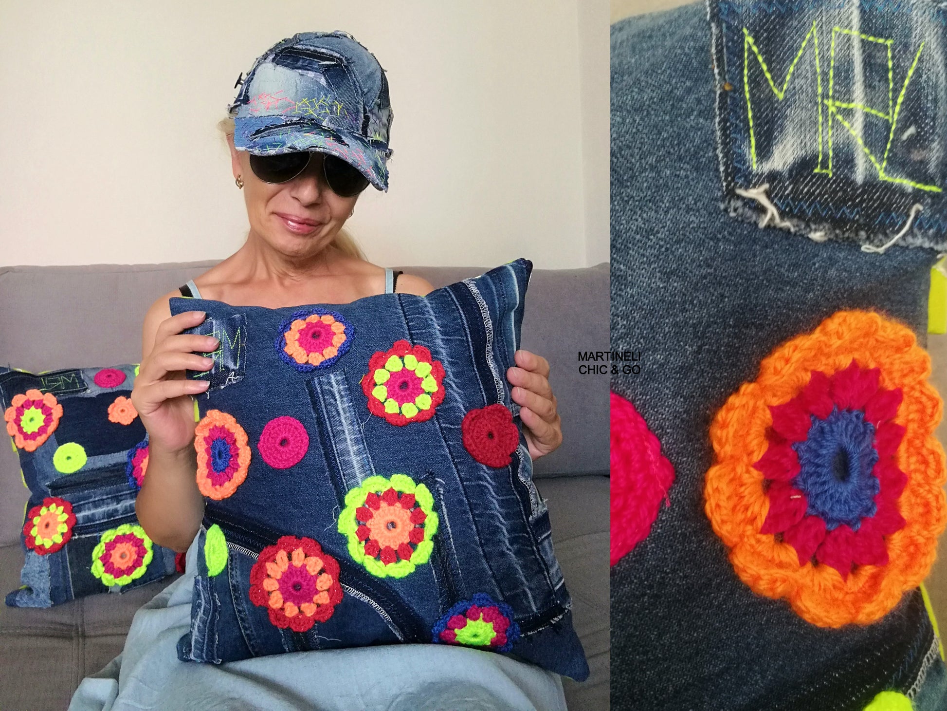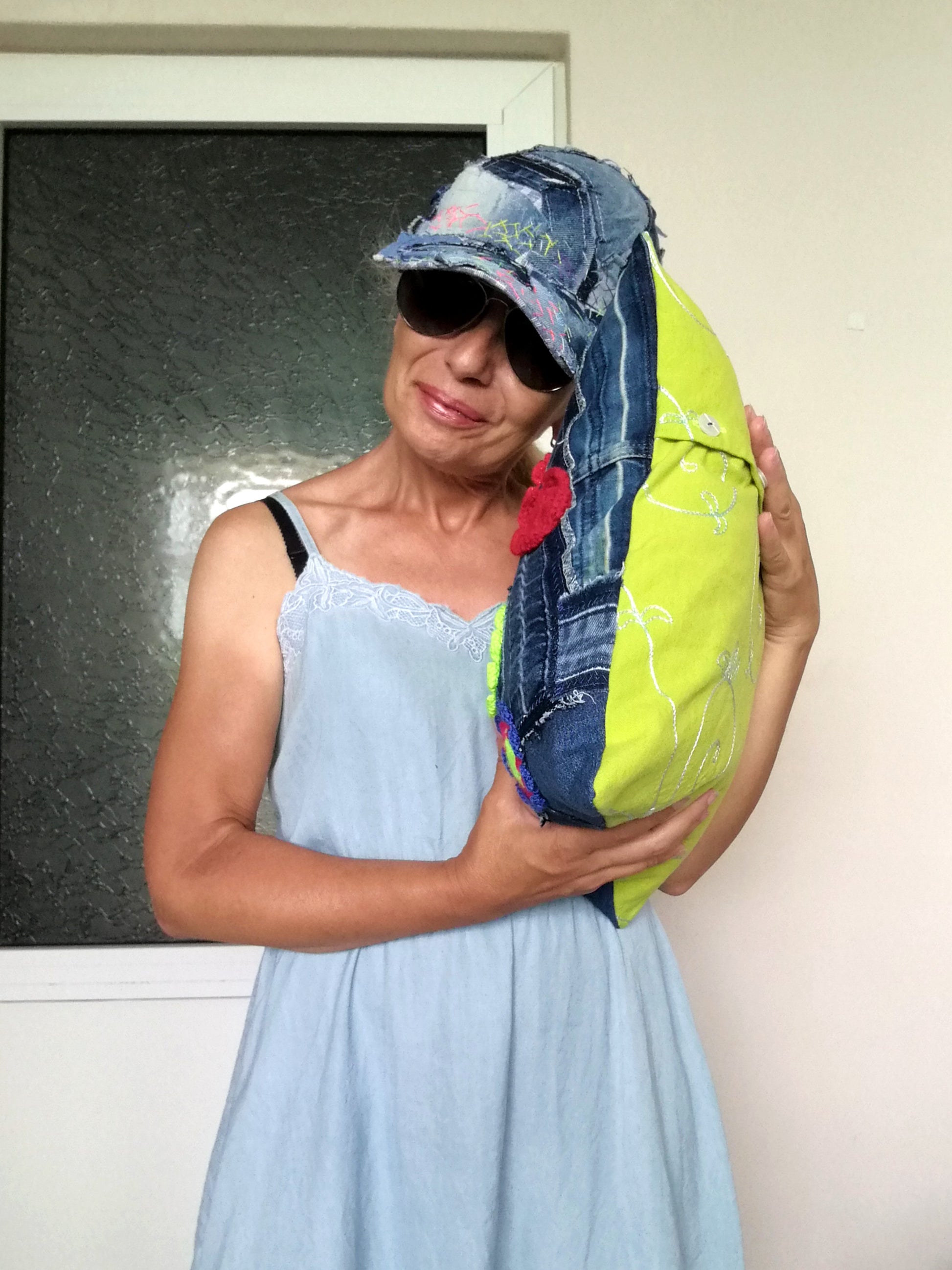 I designed and constructed this PATCHWORK DENIM PILLOW CASE + STUFFED PILLOW.