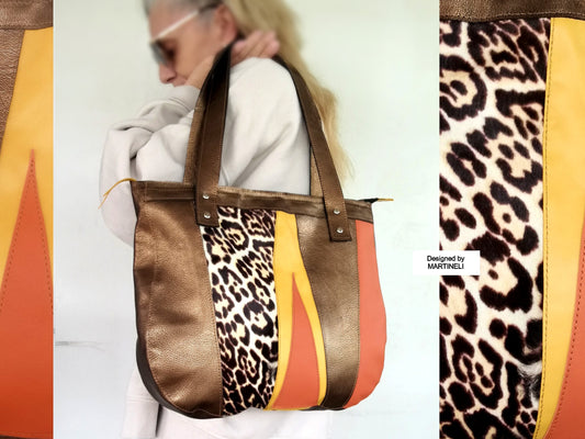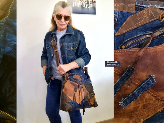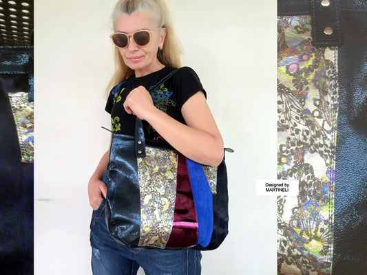 Large Leather Shoulder Bag Boho Artsy Italian Leather Tote
