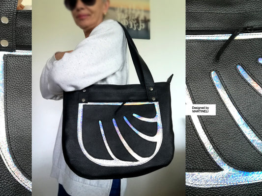 Large Italian Leather Tote Bag Stylish Black Leather Shoulder Bag