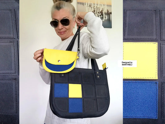 Large Italian Leather Tote Bag Blue Leather Shoulder Bag