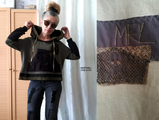 Khaki Hooded Sweatshirt,XL Women`s Hoodie with Skulls