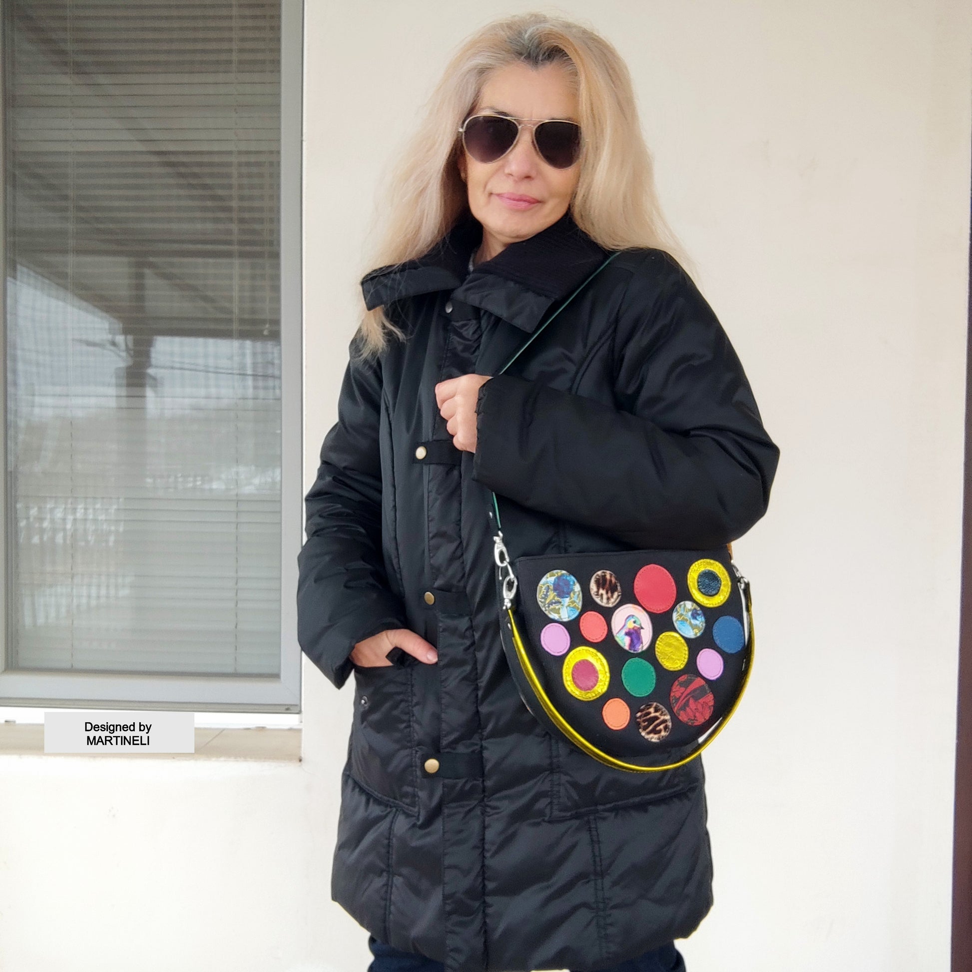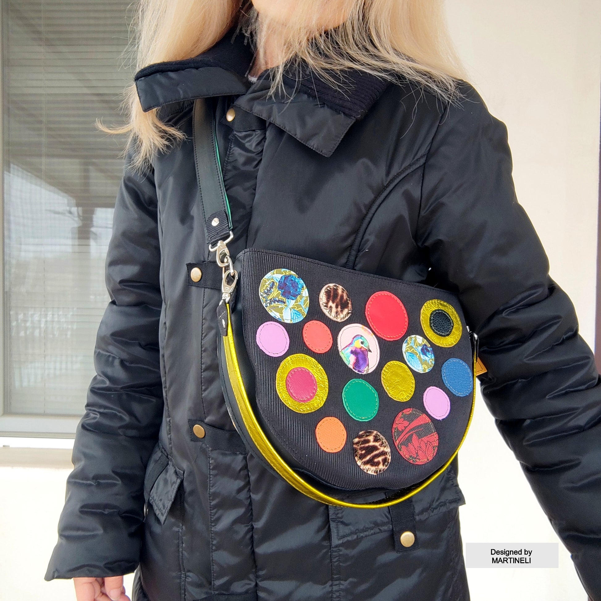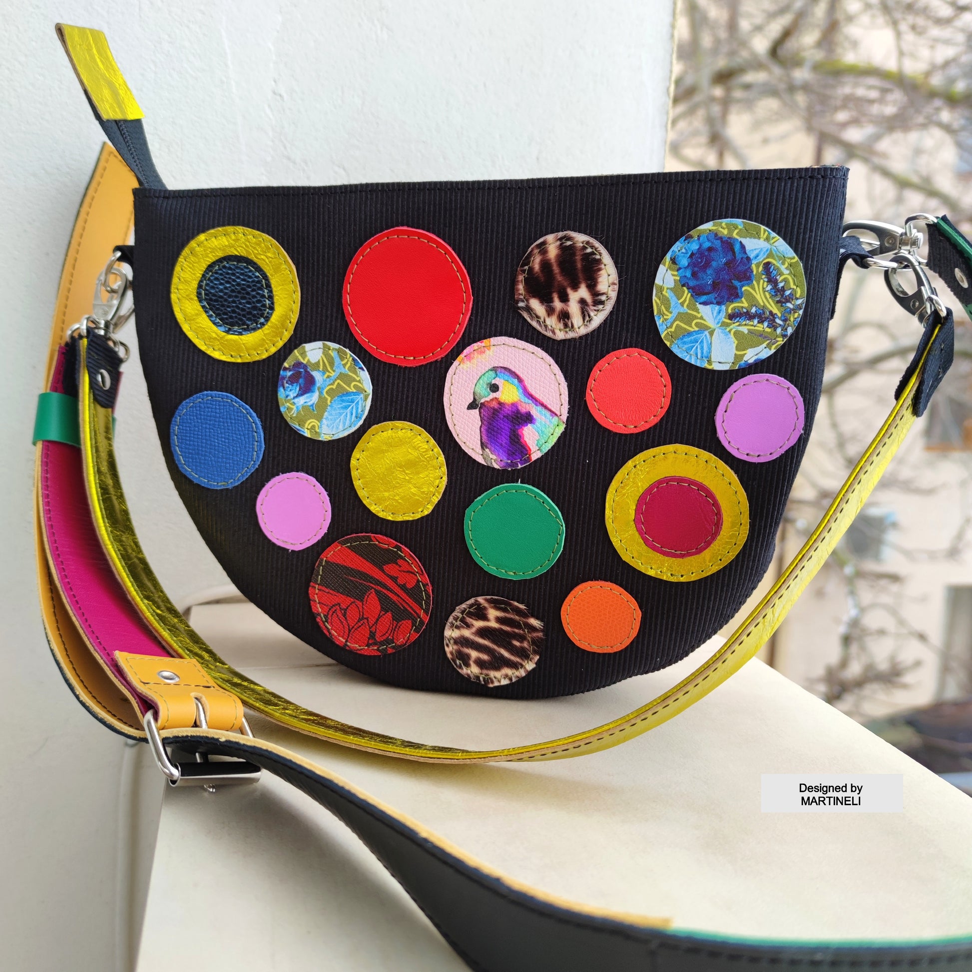 I used BLACK Italian leather, different colorful Italian leather pieces.