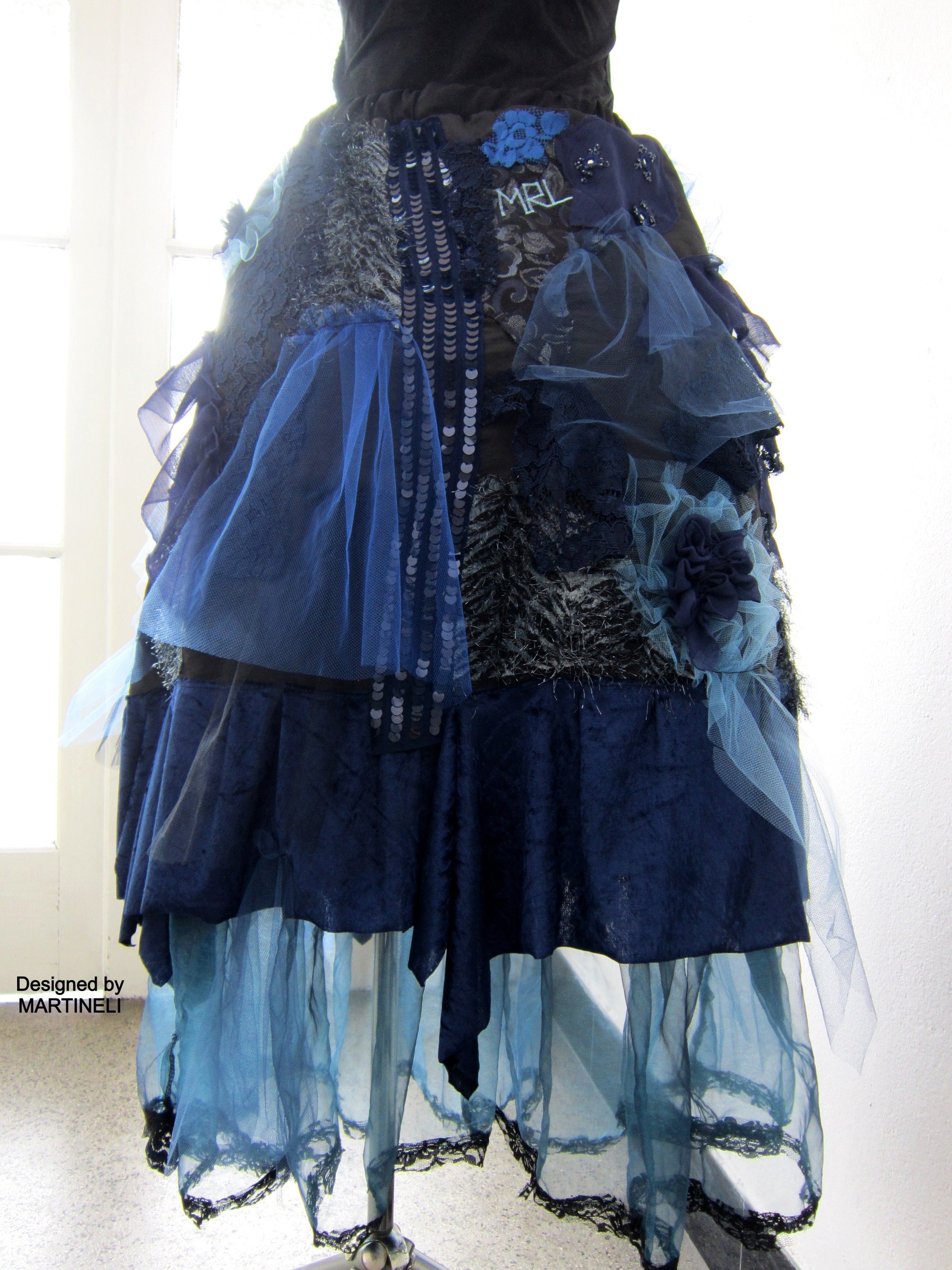 The skirt is lightweight,free and very comfortable. There is a black viscose silk and blue organza lining.