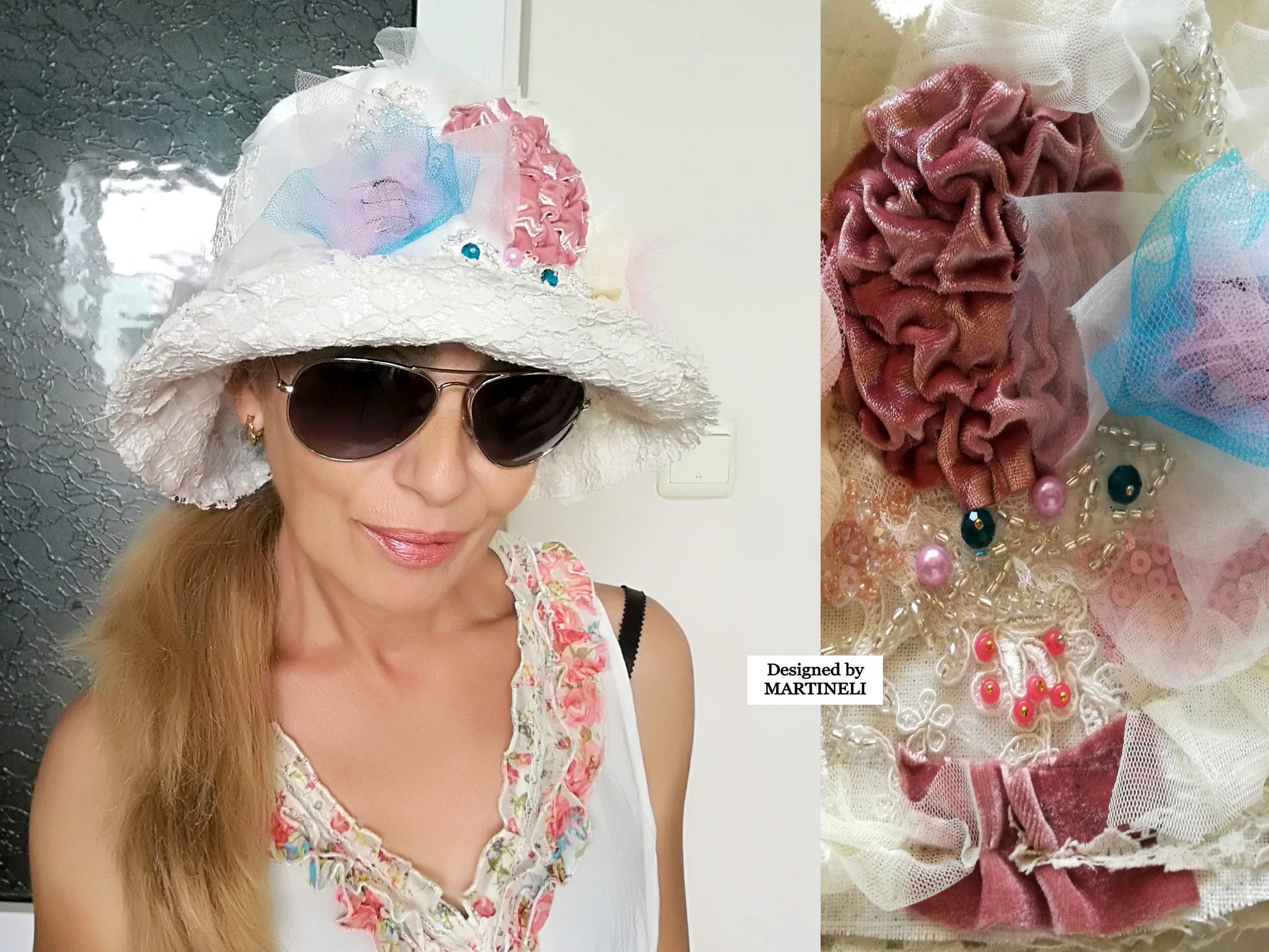 This beaded casual hat is exclusive,one of a kind,because I don`t make more than one item.I offer special,unique items-only one is available for one special person!