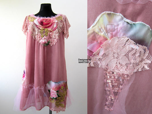 Plus Size 2XL Upcycled Pink Cotton Sweatshirt Dress