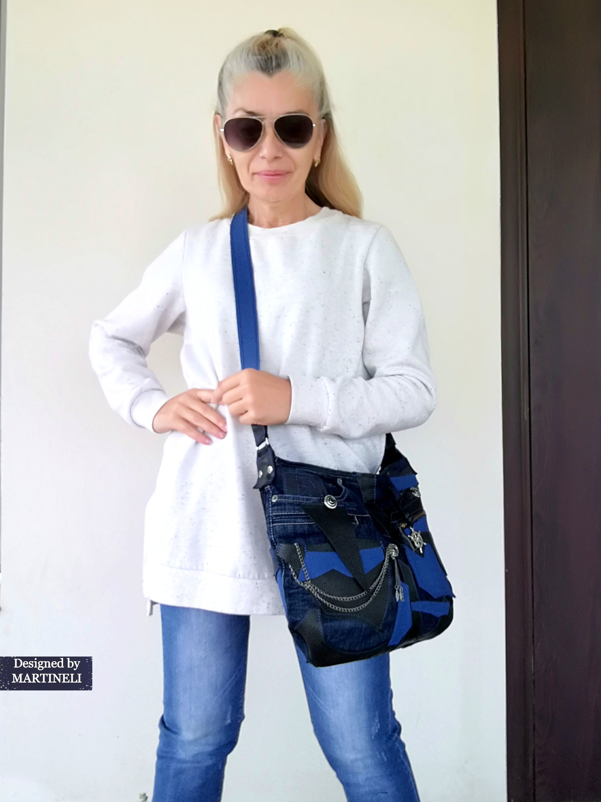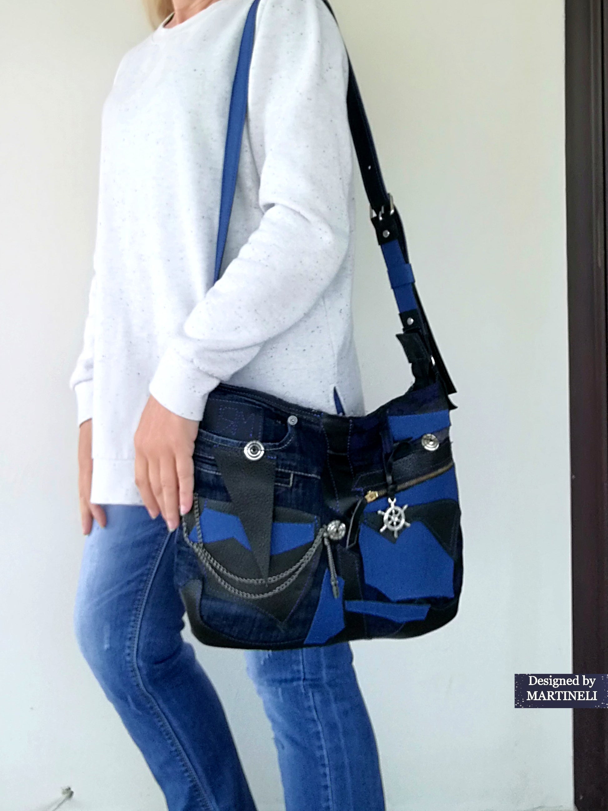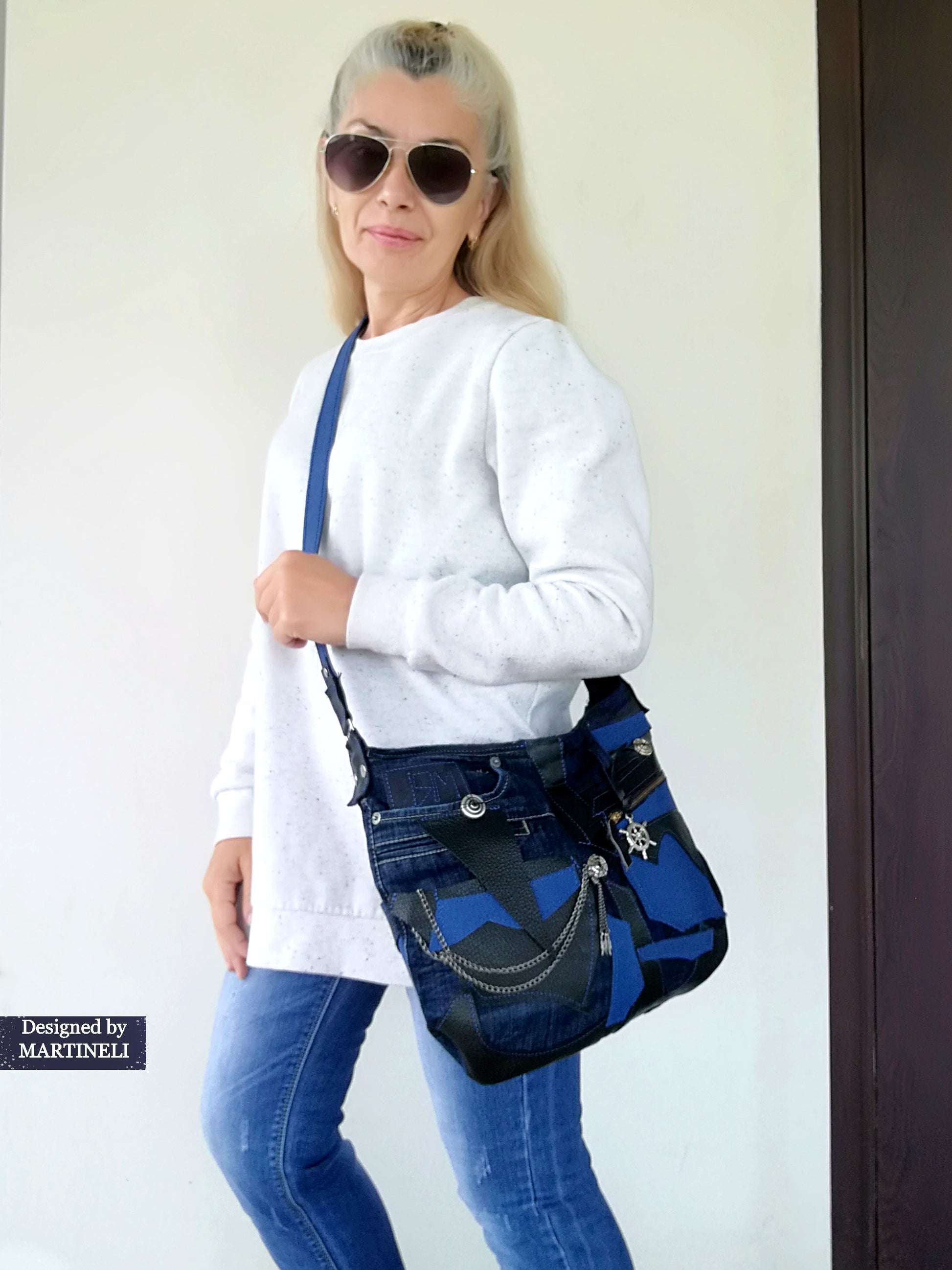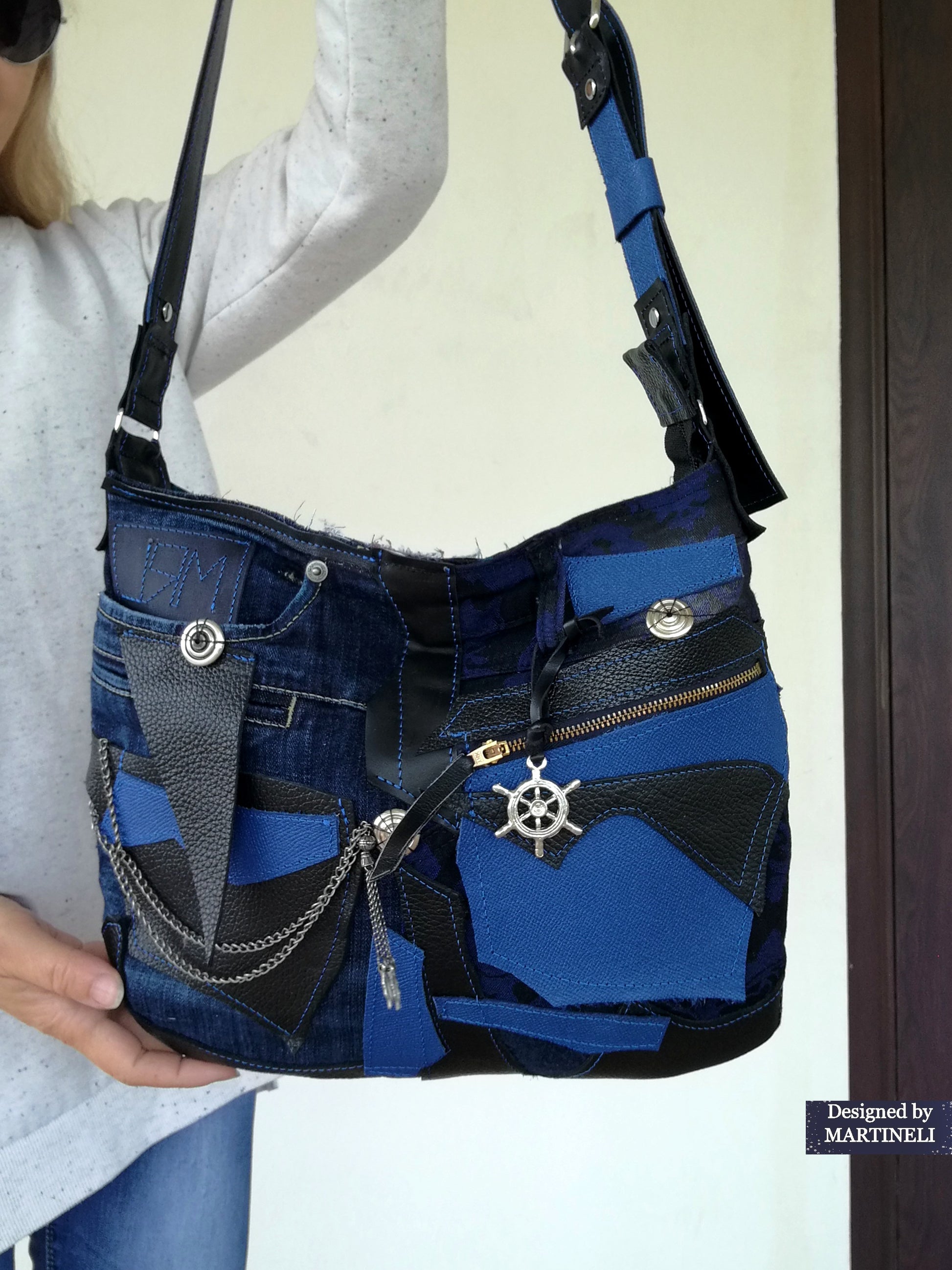 This patchwork denim bag is exclusive,one of a kind,because I don`t make more than one item.I offer special,unique items-only one is available for one special person!