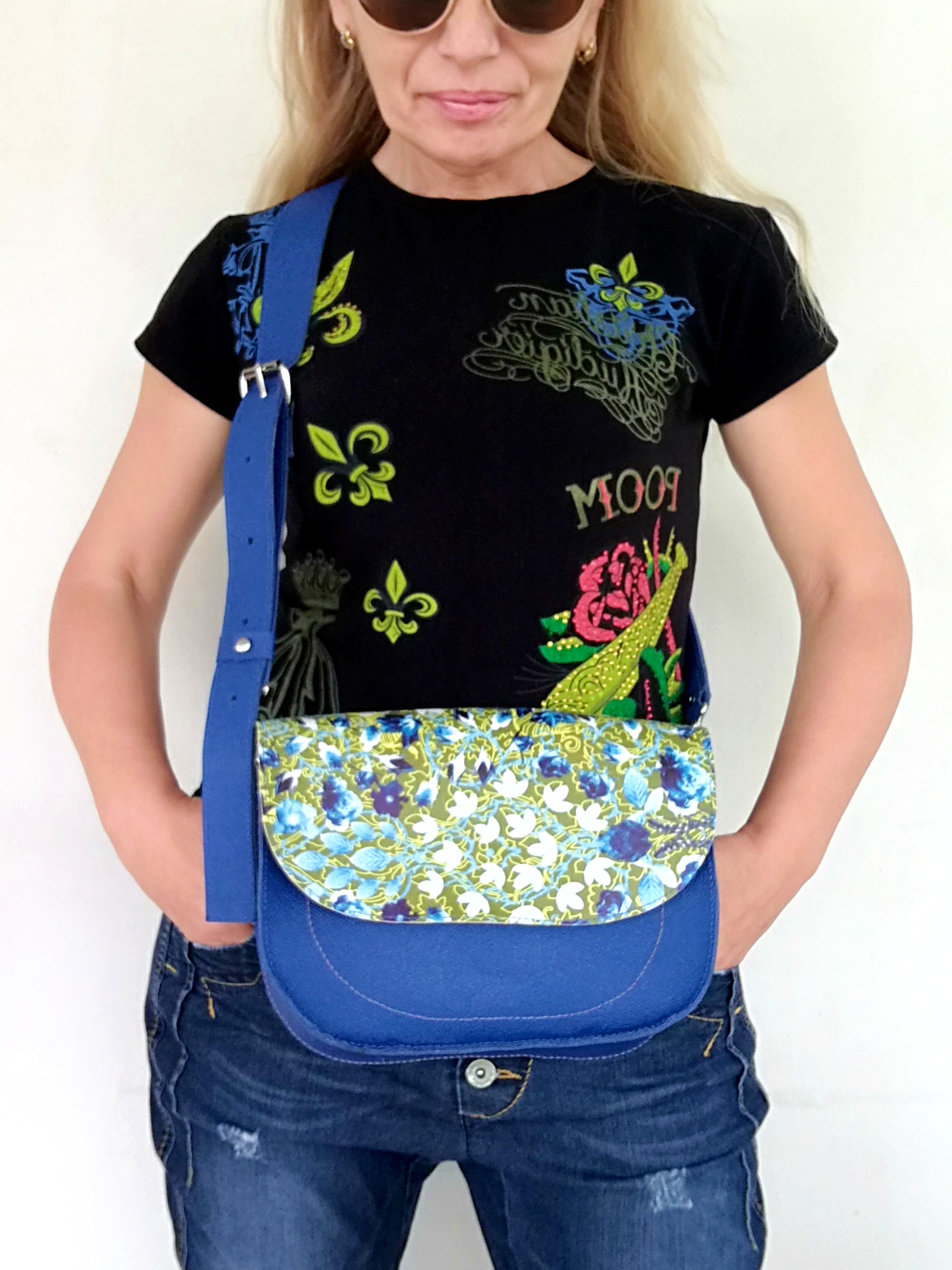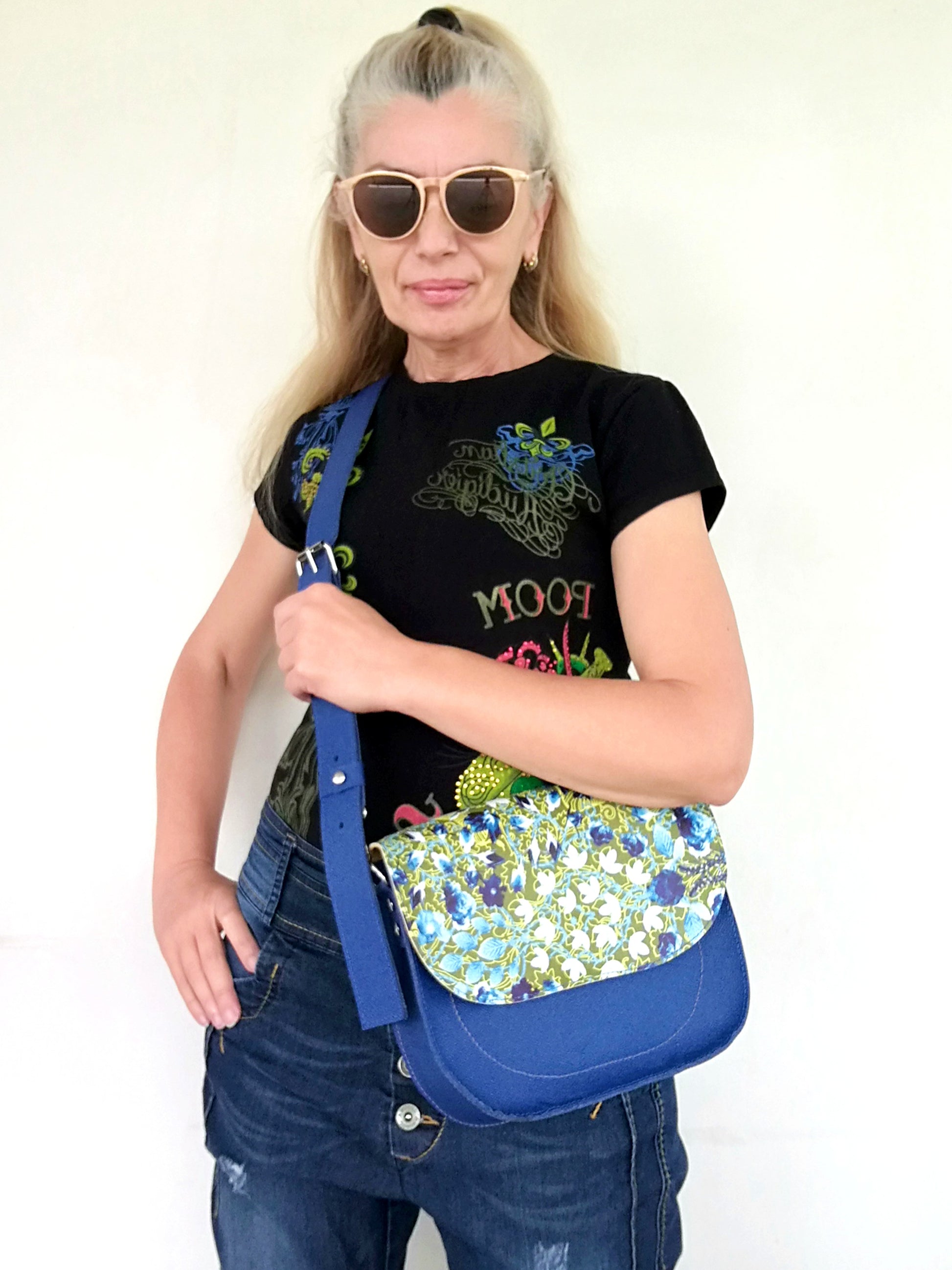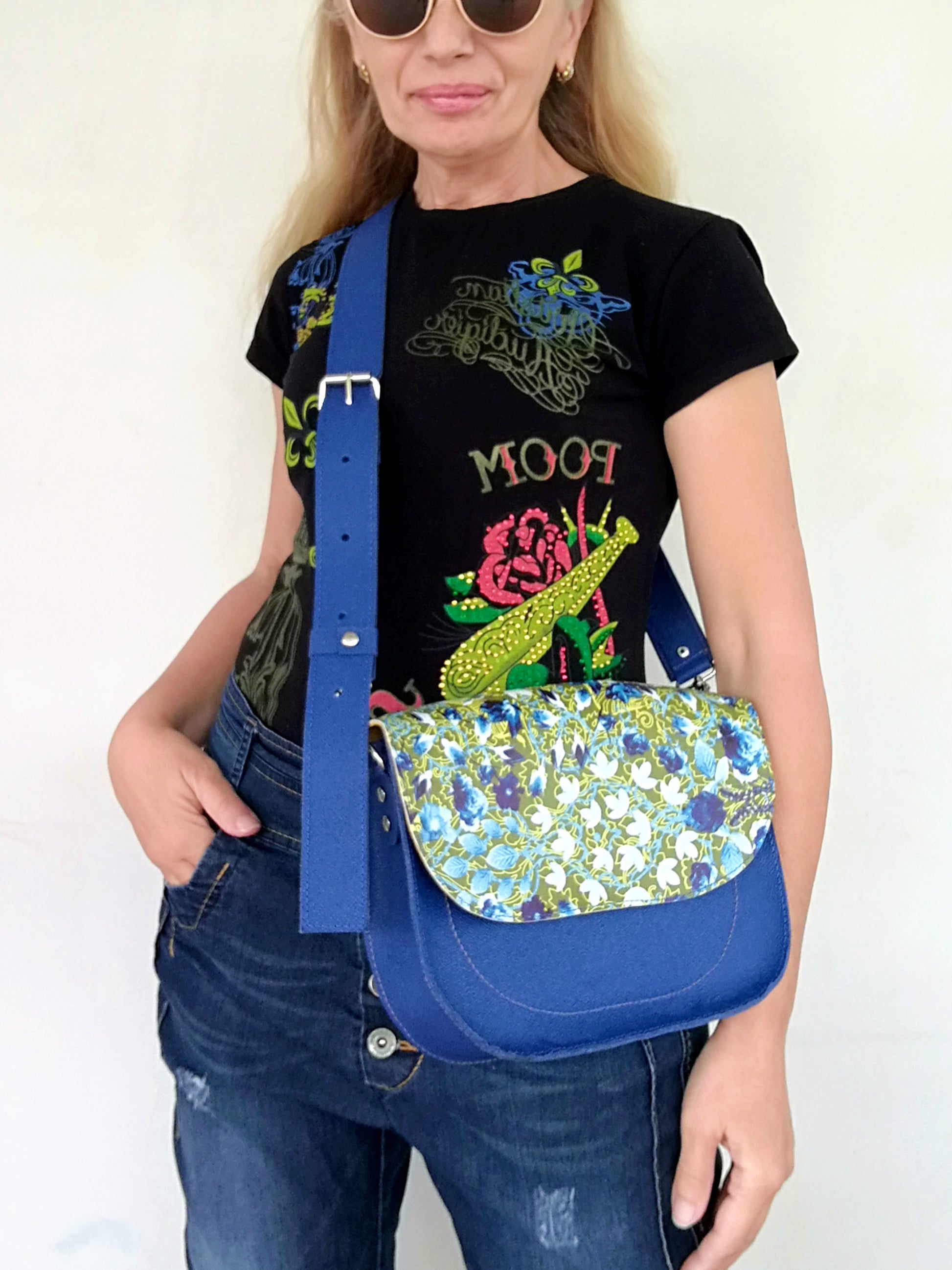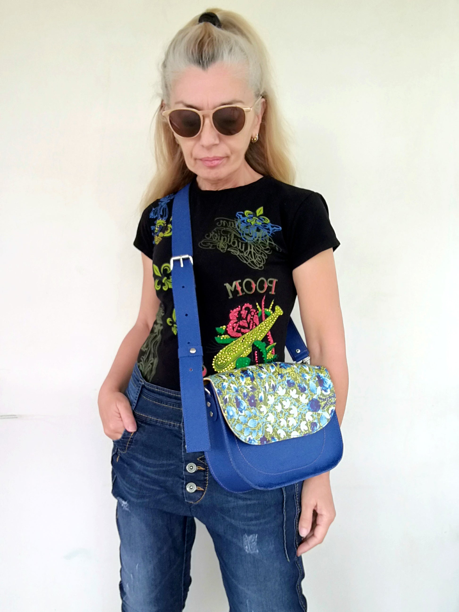 Blue Saffiano Leather Saddle Bag Italian Leather Crossbody Bag