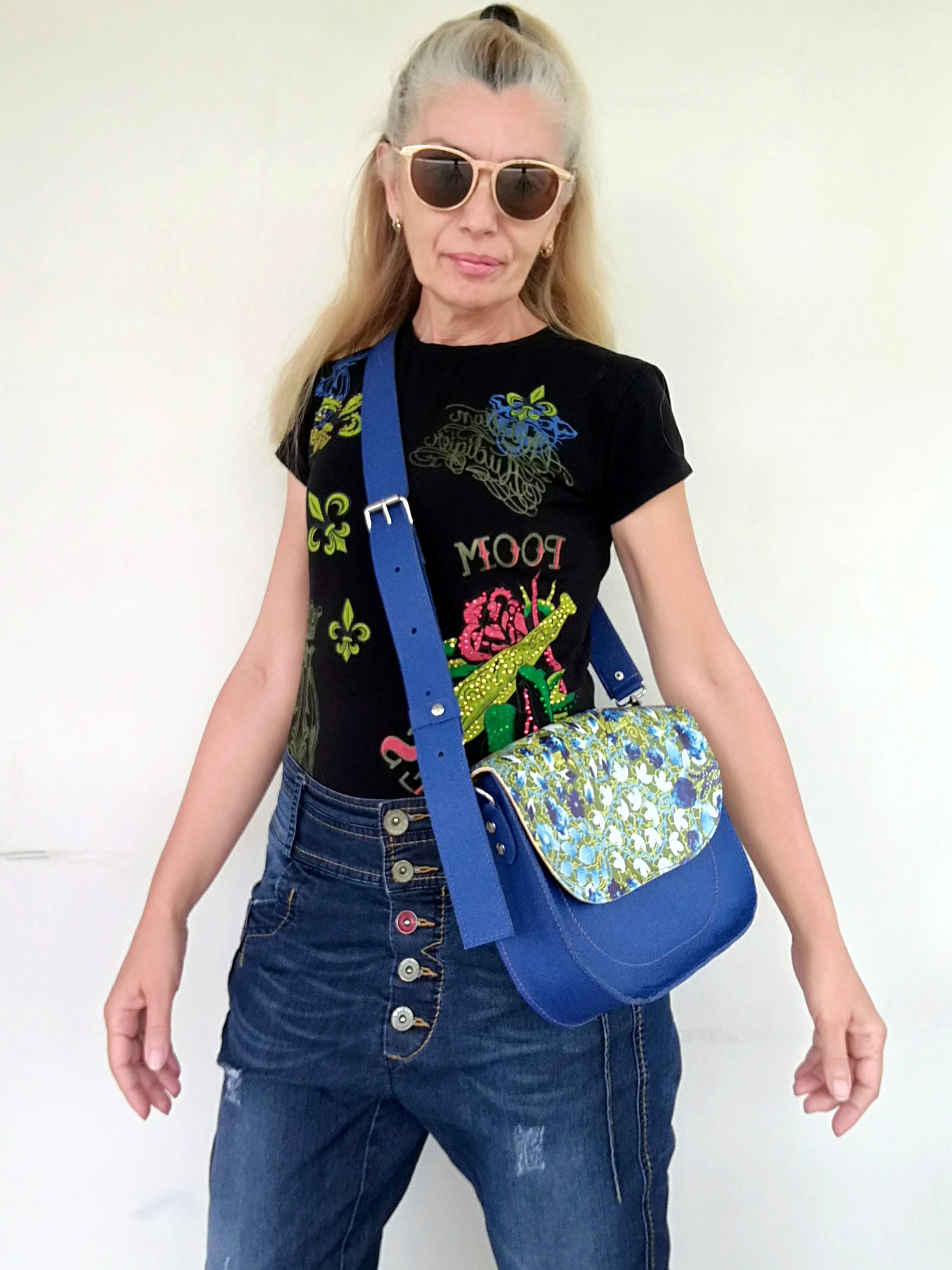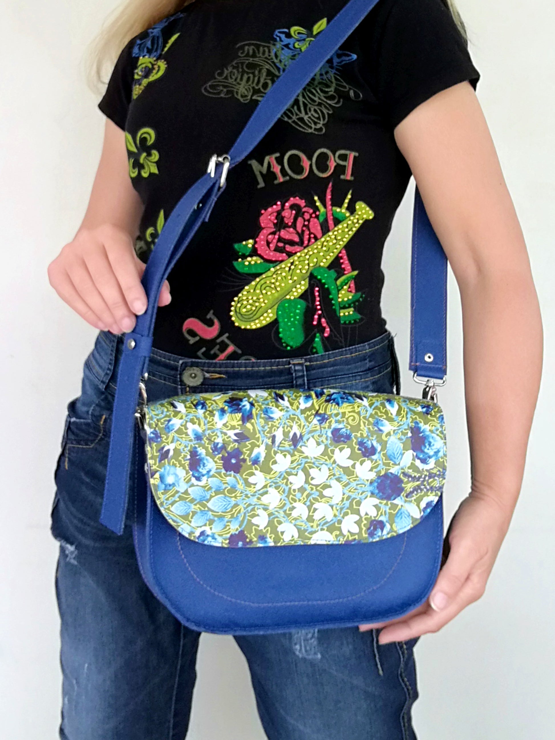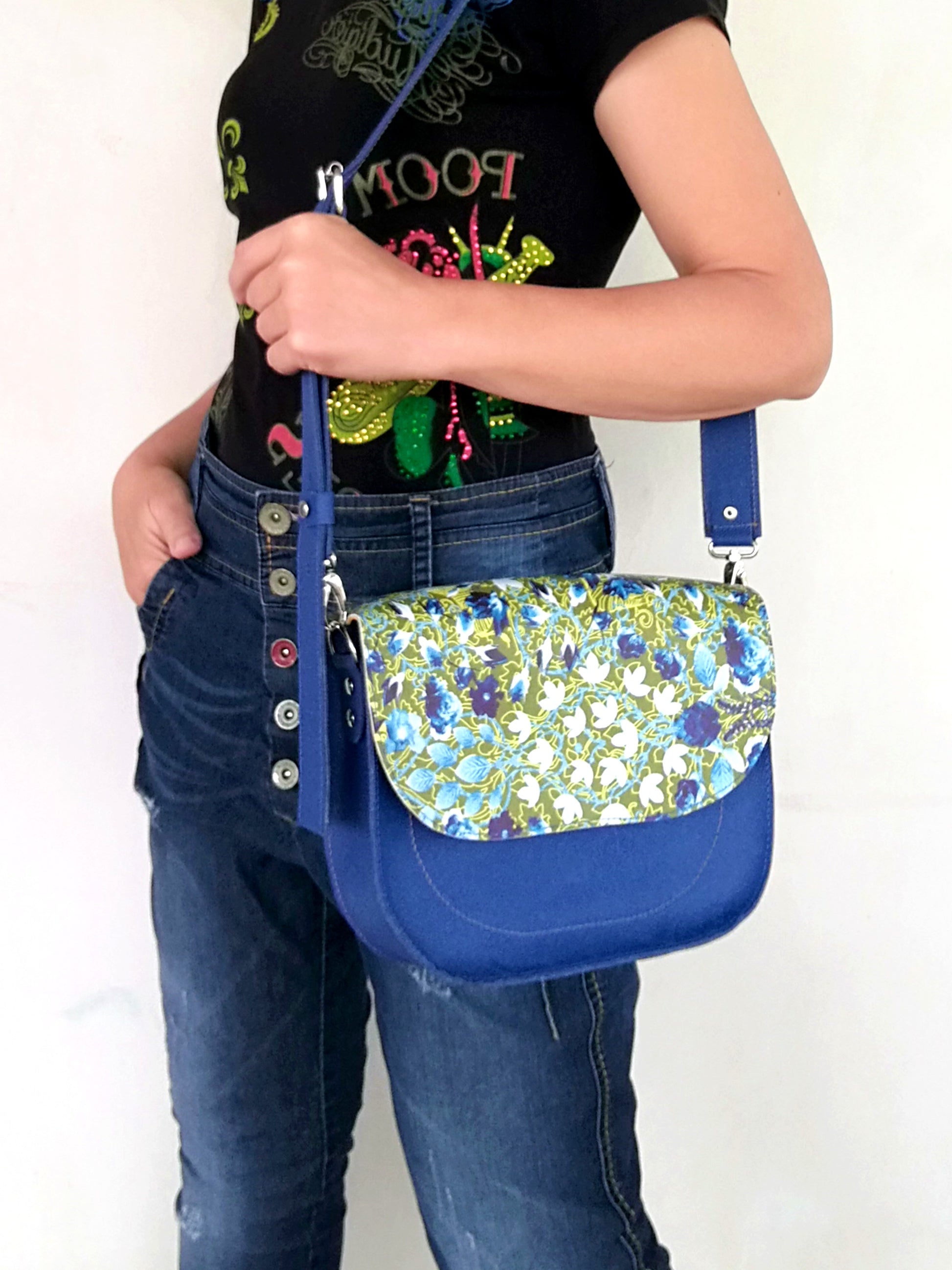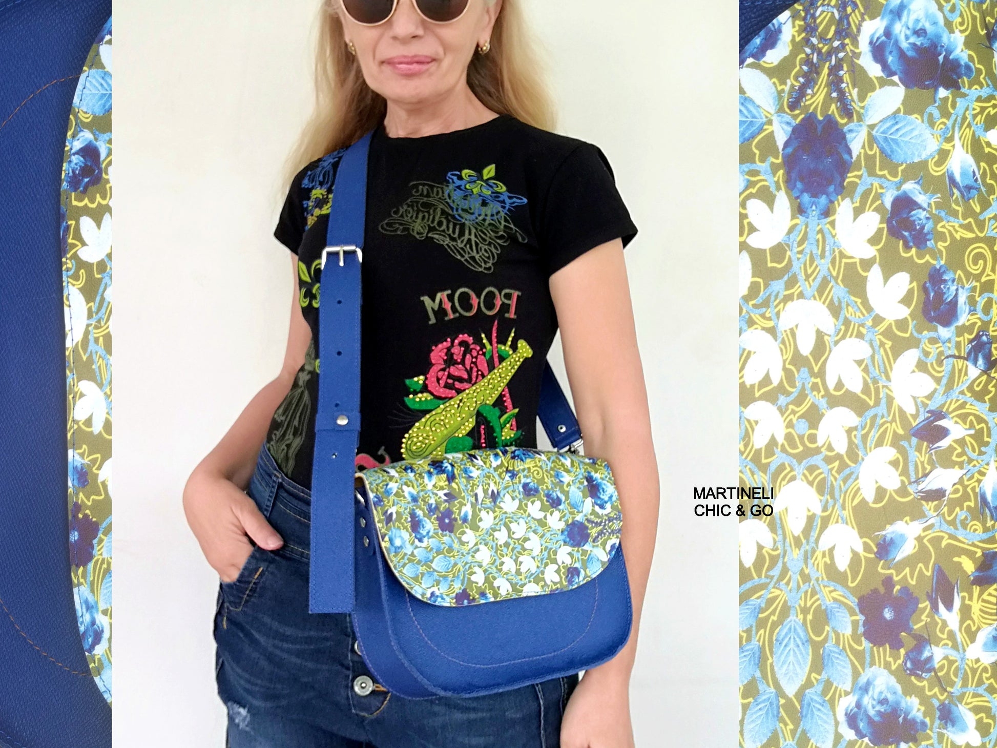 Blue Saffiano Leather Saddle Bag Italian Leather Crossbody Bag