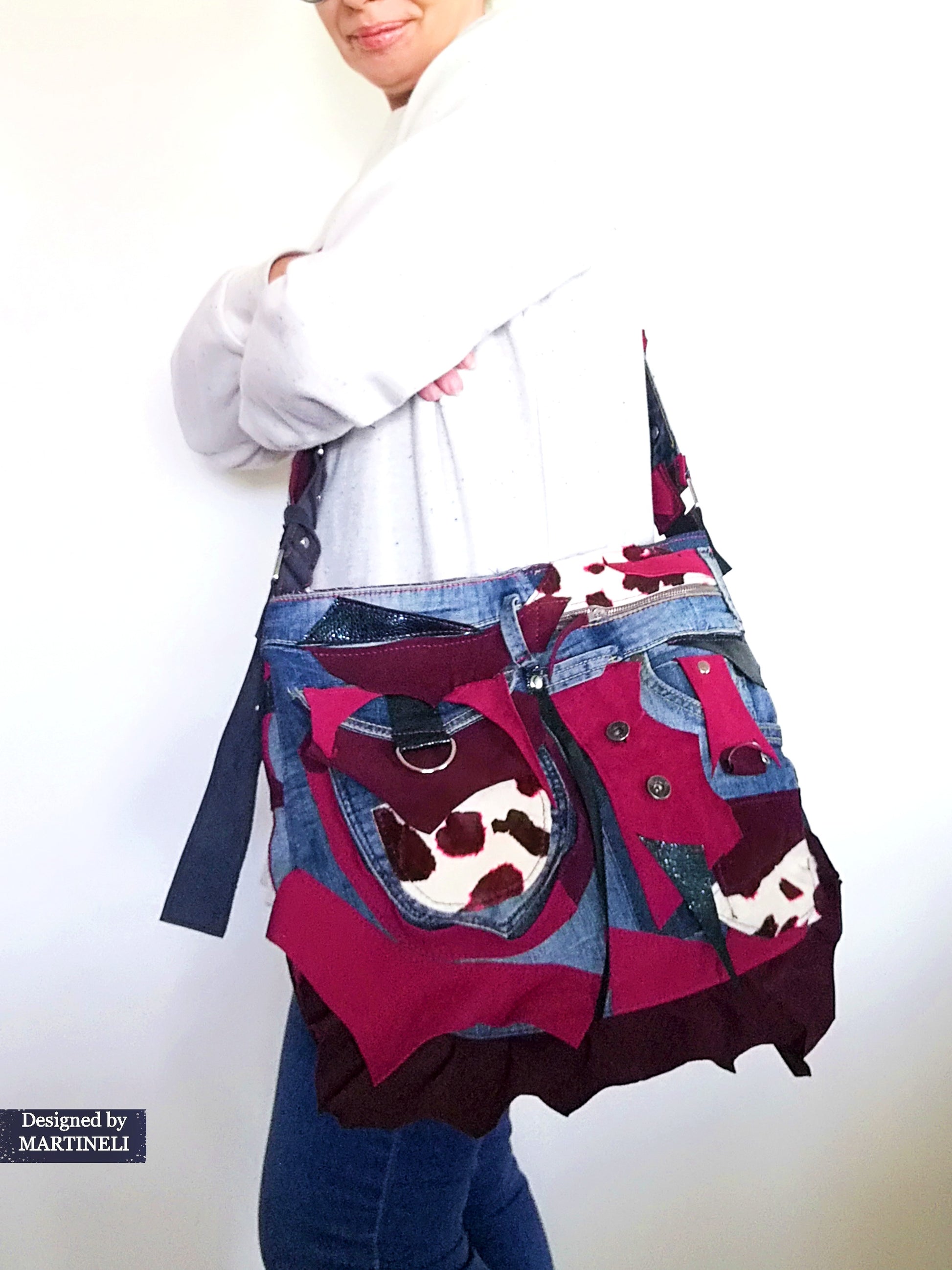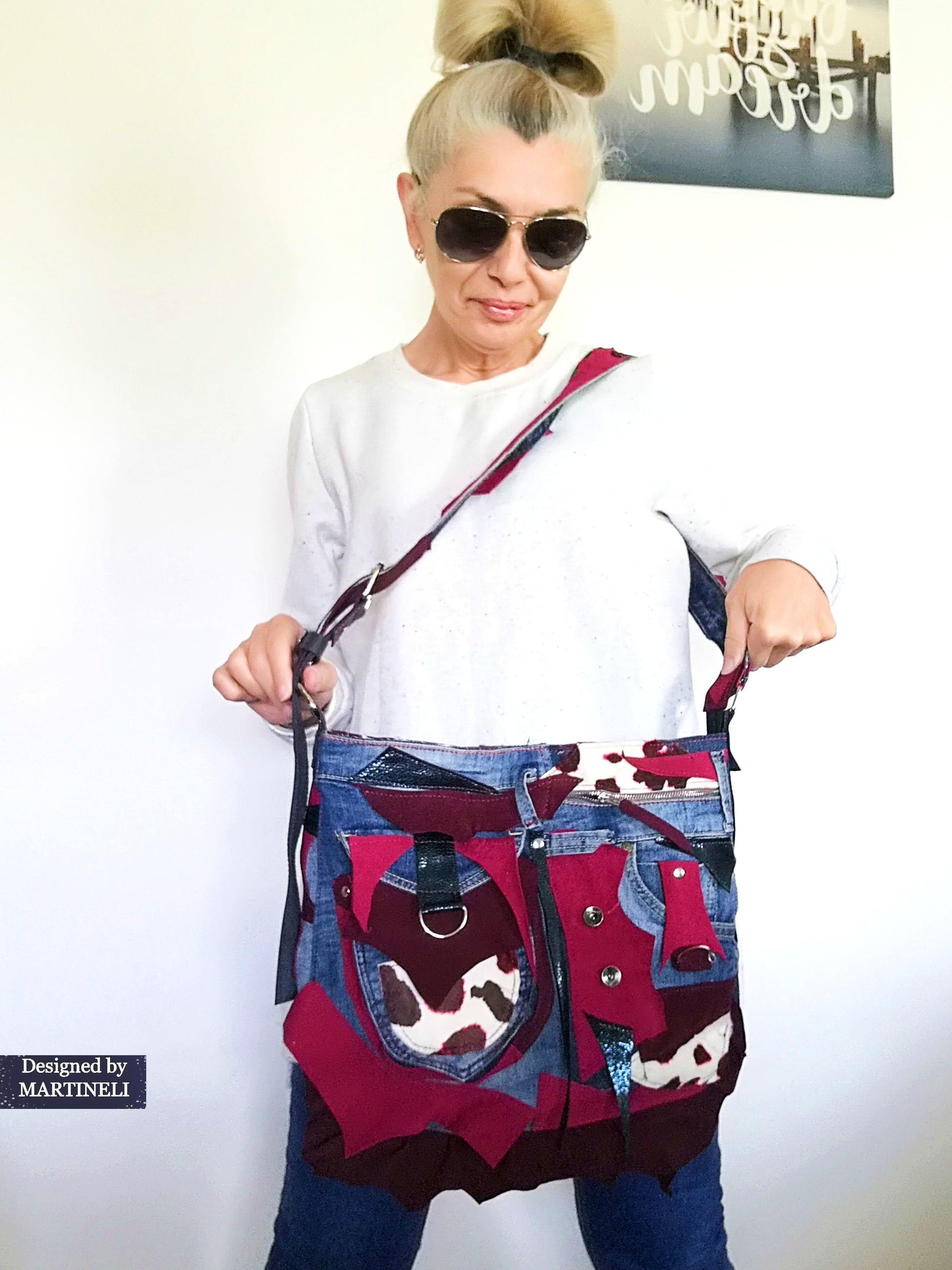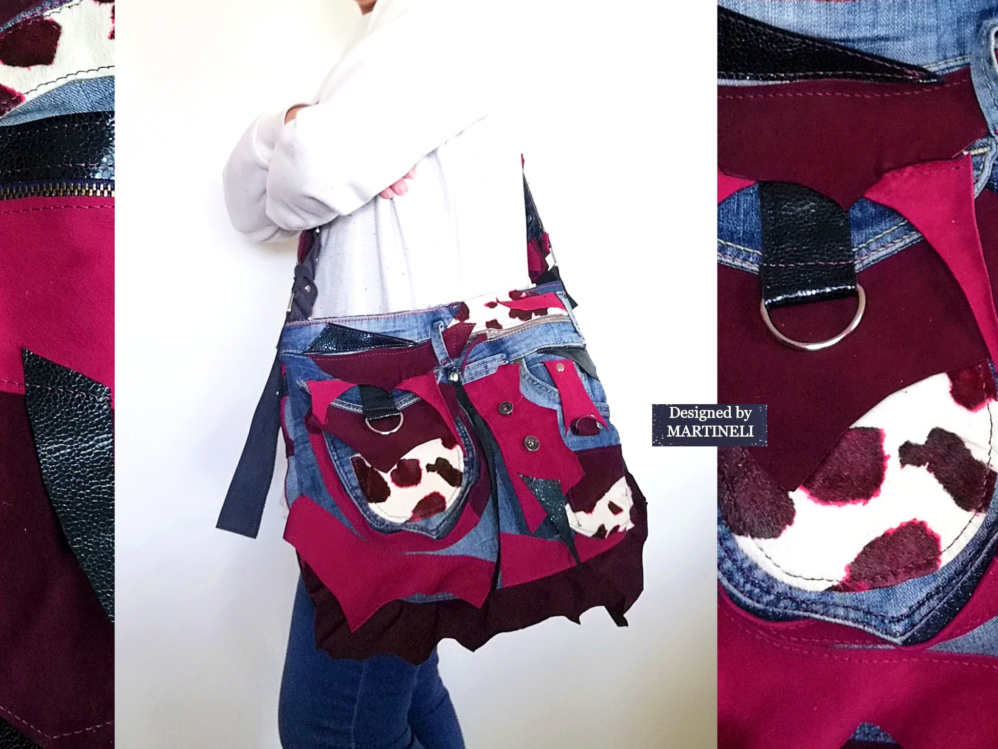 This patchwork denim bag is exclusive,one of a kind,because I don`t make more than one item.I offer special,unique items-only one is available for one special person!