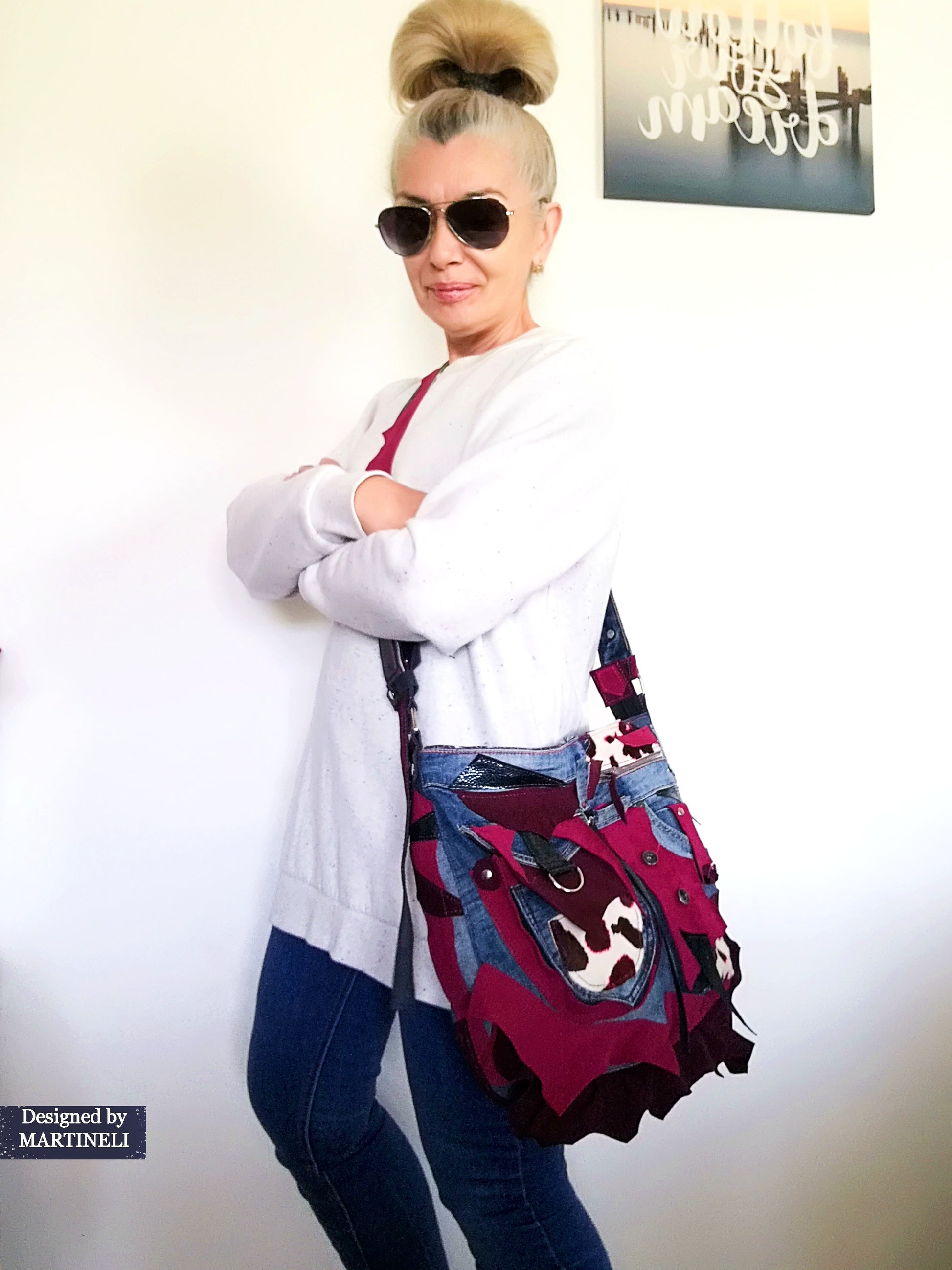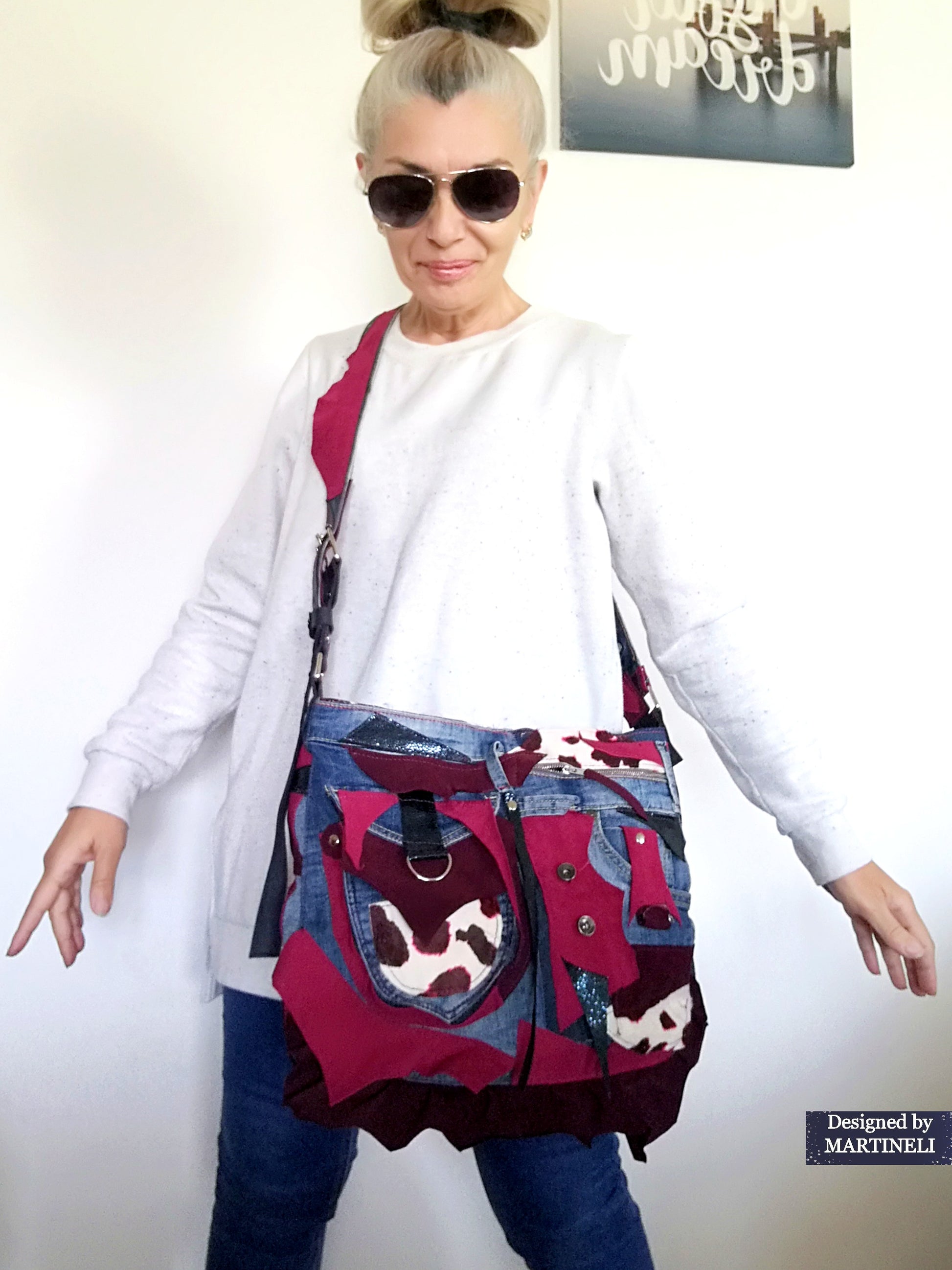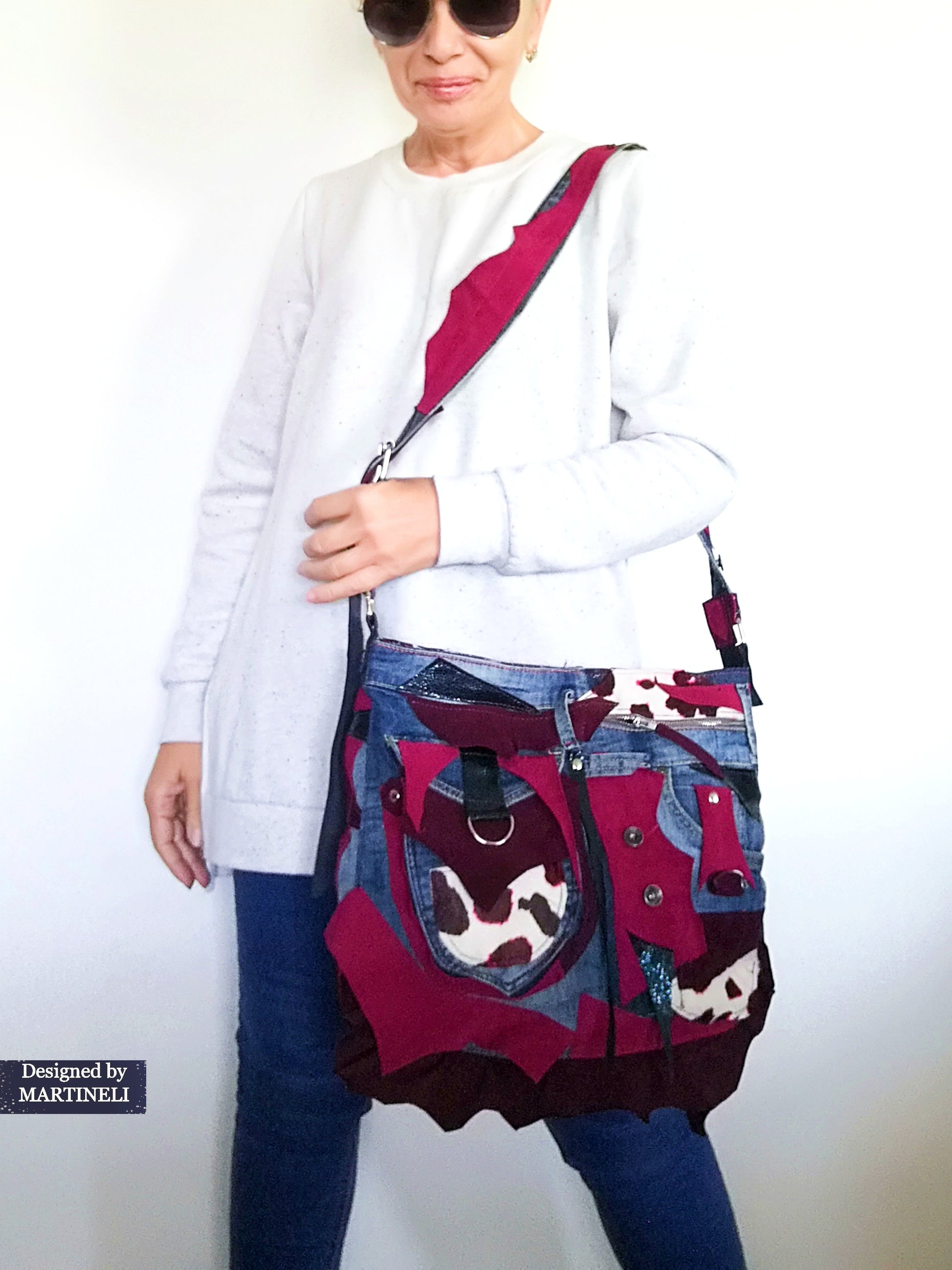 This patchwork denim bag is exclusive,one of a kind,because I don`t make more than one item.I offer special,unique items-only one is available for one special person!