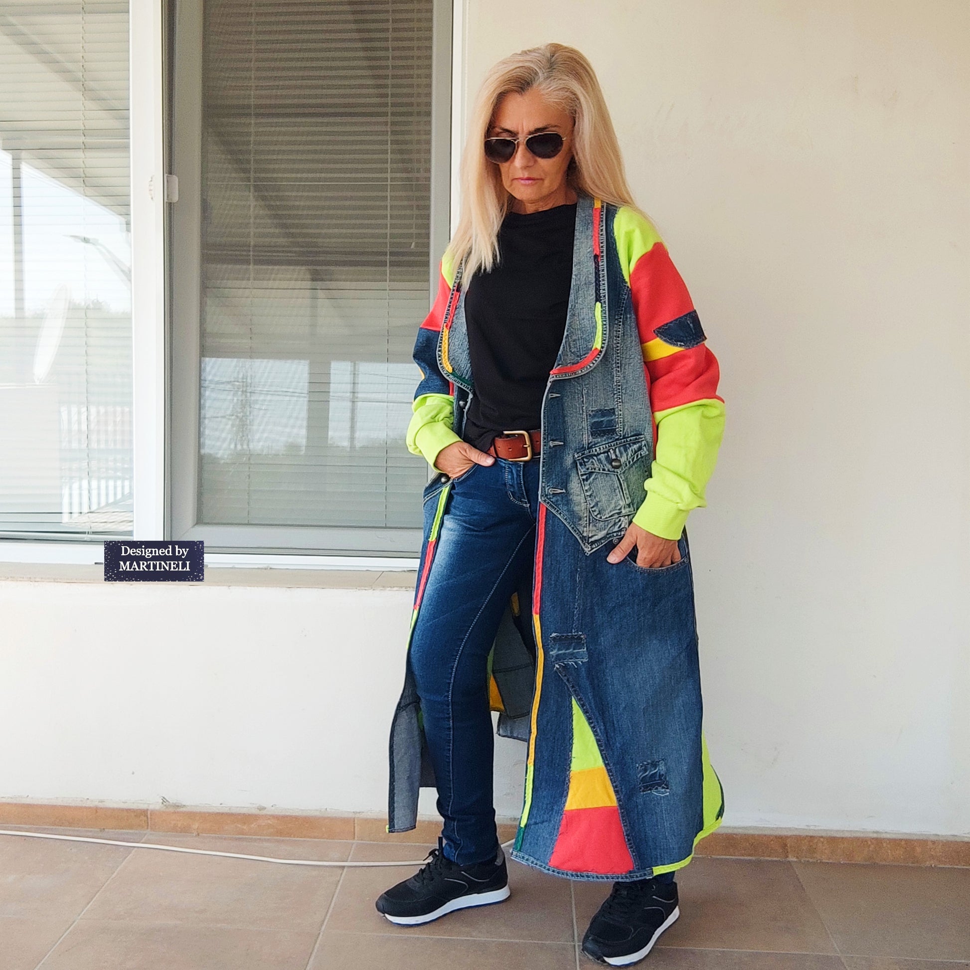 This COLORFUL jean jacket is exclusive,one of a kind,because I don`t make more than one item.I offer special,unique items-only one is available for one special person!