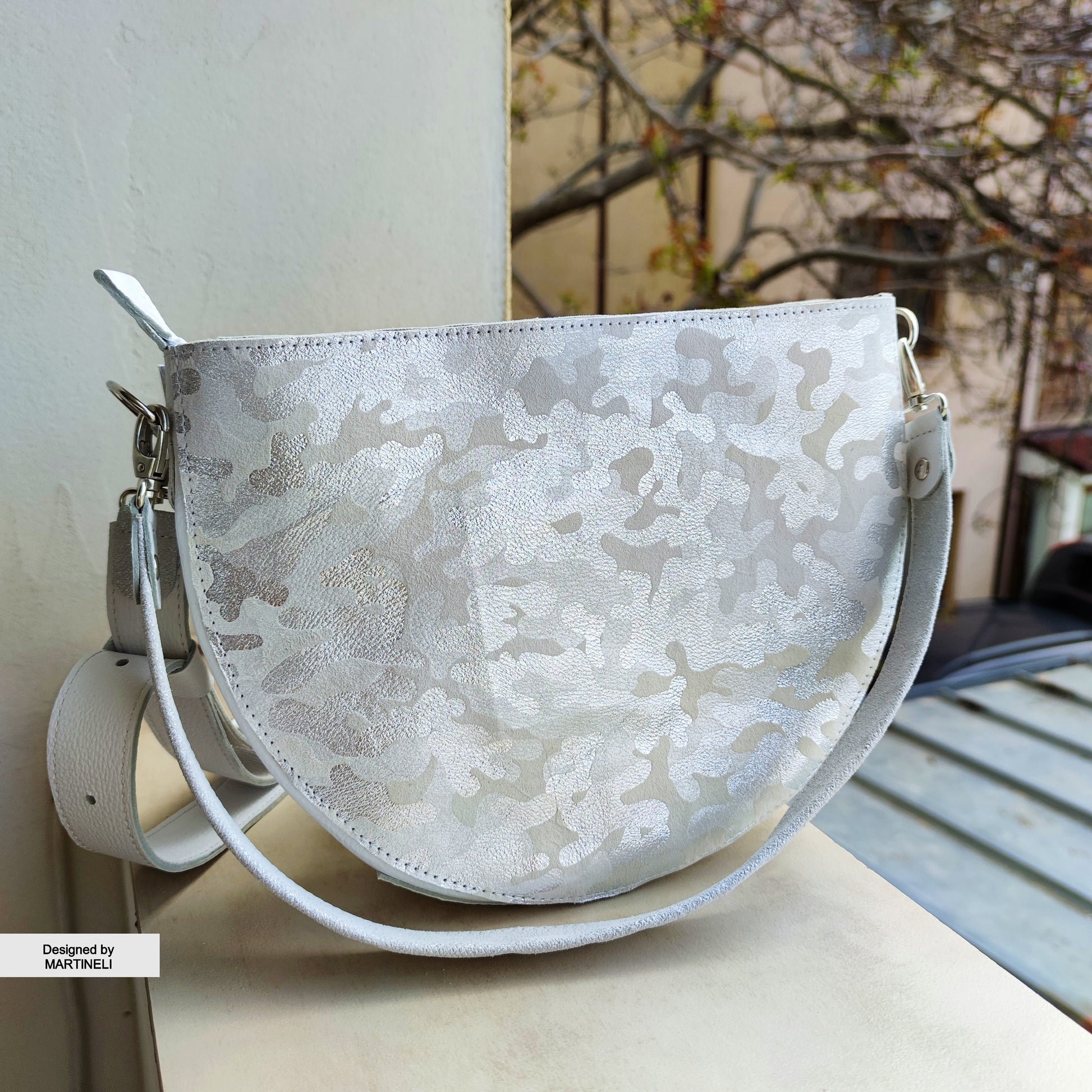 White Luxury Leather Bag Camouflage Shoulder Bag Elegant Camo Bag