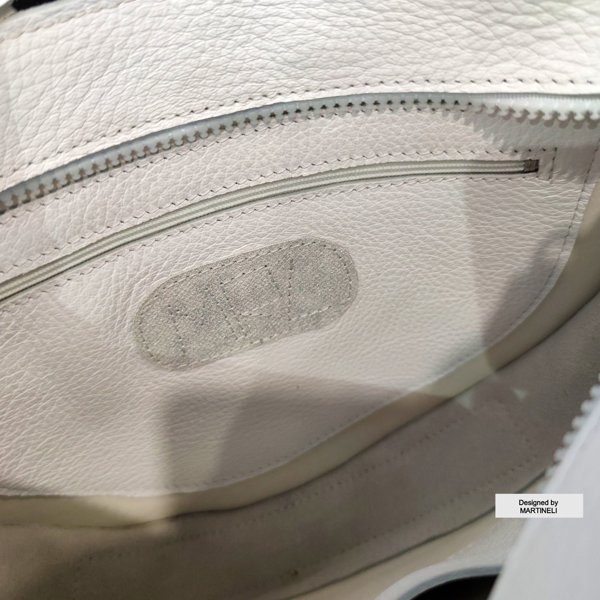 This luxury white leather bag is exclusive,one of a kind,because I don`t make more than one item.I offer special,unique items-only one is available for one special person!
